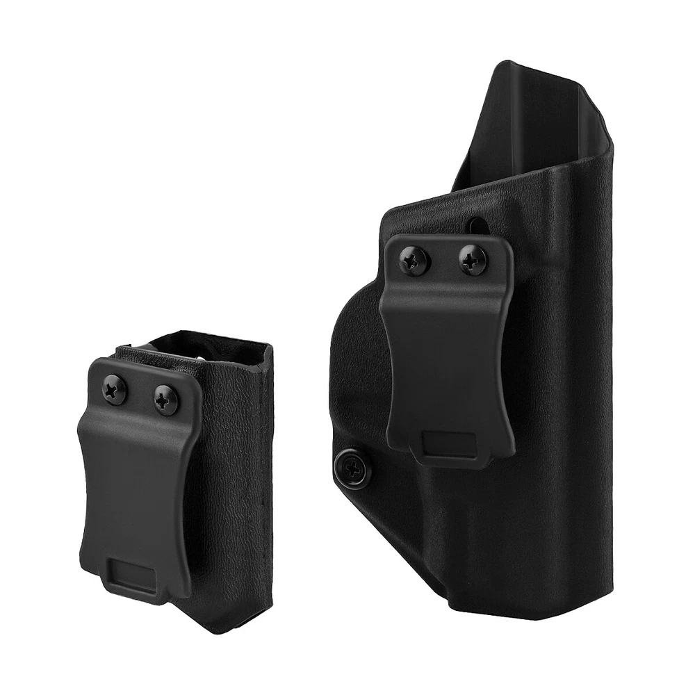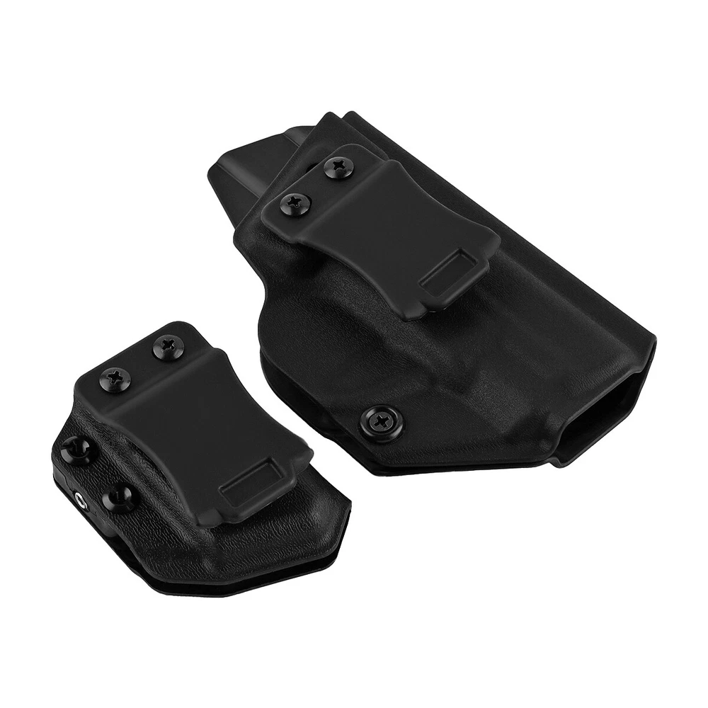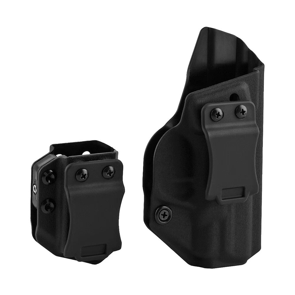 Product Description IWB Holster Right Hand Fits S&W M&P Shield/Shield Plus M2.0 9mm/.40 3.1" Pistol Holster & Universal 9/.40 Double Stack Mag Carrier Features: 1 【Full Cover Trigger, No Scratch, No Jitter】The holsters for Smith & Wesson M&P Shield/Shield Plus M2.0-9mm/.40 3.1" Pistol Holster, full covering all access to the trigger, securely retained with minimal drag, which can avoid all possible accidents. Rounded, Hand Finished Edges, adds to a layer of comfort without digging into the body or thigh, the trigger guard is intentionally undercut to promote a higher grip on the and allow for magazine release while the firearm is fully holstered. 2 【FIT LIKE A GLOVE WITH AN AUDIBLE CLICK】Thanks to the Adjustable Retention Screw, you can dial in perfection with a Phillips Screwdriver. The inherent positive retention “positive click SNAP”sound,ensures the firearm is secure when holstered. 3 【Adjustable Cant & Retention Pressure】The cant settings are easily adjustable from 0 to 30 degrees. Be it appendix, strong-side, kidney carry, it allows for a perfect grip on the for Smith & Wesson M&P Shield/Shield Plus M2.0-9mm/.40 3.1". 4 【1.5'' Belt Fit Perfect】Smith & Wesson M&P Shield/Shield Plus M2.0-9mm/.40 3.1" IWB holster belt clip is suitable for 1.5'' belt, with hook in buttom, it stick firmly in your belt when drawing and holding. 5 IWB/OWB Mag Carrier is compatible fits virtually every 9mm/.357 Sig/.40 Double Stack and Staggered Stack Magazine,Including but not limited to for Glock models 17,19,19x,22,23,25,26,27,28,31,32,33,34,35,37,38,39 and Glock 43x/MOS,Glock 48/MOS,Sig P320/P365/P365 SAS/P365 SAS w/P365X ,S&W M&P Compact, S&W M&P M2.0/PLUS,CZ P07/P10C,H&K VP9/VP40/VP9SK,Springfield armory XD/MOD.2/XDM/HELLCAT,Taurus PT111 G2/G2C/G3C etc. 6 High quality nylon material, durable and reliable for long life. Specifications: Material: Nylon Size: 15.7*8.6*2.9 CM Weight: 67g Pistol holster type: IWB Hand orientation: Right Fit belt size: 1.5" For pistols: Fits S&W M&P Shield/Shield Plus M2.0 9mm/.40 3.1" ( NOT fit attachments like light/laser ) Mag carrier type: IWB/OWB Mag carrier Hand orientation:Right/Left For magazines: 9mm/.357 Sig/.40/ Double Stack and Staggered Stack Size: 8.1*5.6*4.3 CM Weight: 46g Package Included: 1x Gun holster 1x Mag carrier 1x Wrench Payment Shipping Terms Returns Contact Us We accept PayPal only. If buyer want to delay the payment because of financial problem, please contact me by the ebay message within 3 days Payment via PayPal (PayPal accepts all major credits/debit cards and eCheque) ECheque payment will tak e 3-10 days to get clear, thus DELAYing the shipment. Handling time: 1 business day (Orders are not processed on weekends & holidays) Tracking information will be sent once item is shipped. Local pick-up is unavailable at the moment. For international shipping and shipping to Guam, Hawaii and Alaska, Please contact us before placing the order. Item is shipped to ebay address. Leaving correct address can minimize delay. For any issues with Defects, Return, Item Exchange request, please contact us first and send us a message first before opening any type of case or request. We devote ourselves making EVERY CUSTOMER in 100% Satisfactory and resolve any problem. We highly value and appreciate your business. Thank you. No returns will be accepted without an RMA number. Please contact us for the RMA number. Return is acceptable within 30 days of delivery. Return for replacement or money back is optional. Returned items must be in the brand new, unaltered and resalable condition. Seller is not responsible for any labor cost, expense in a dealer store, or damage due to wrong installation. Return is accepted within 14 days after the buyer's receiving the item. (Excluding contrived damagement or misusage).100% money-back Guaranteed! All product will be tested in 100% before delivery.If the item is defected by the processing of postage,Buyer has up to 14 days from date of receipt for exchange of a new one.All shipping charges for returned products are to be paid by the buyer,Please contact us for the return address All messages will be answered within 24 office hours. Please contact us either by clicking "contact seller" in the "purchase history" section or simply click "ask a question" at the bottom of this page. If you are unsatisfied with our item or service, please contact us before leaving any feedback. We are committed to resolve all issues in a friendly and satisfactory manner. We always reply to messages within 2 business days (off-duty at weekend). If you do not get a response from us, then please check your junk or spam mailbox. Payment We accept PayPal only. If buyer want to delay the payment because of financial problem, please contact me by the ebay message within 3 days Payment via PayPal (PayPal accepts all major credits/debit cards and eCheque) ECheque payment will tak e 3-10 days to get clear, thus DELAYing the shipment. Shipping Handling time: 1 business day (Orders are not processed on weekends & holidays) Tracking information will be sent once item is shipped. Local pick-up is unavailable at the moment. For international shipping and shipping to Guam, Hawaii and Alaska, Please contact us before placing the order. Item is shipped to ebay address. Leaving correct address can minimize delay. Terms For any issues with Defects, Return, Item Exchange request, please contact us first and send us a message first before opening any type of case or request. We devote ourselves making EVERY CUSTOMER in 100% Satisfactory and resolve any problem. We highly value and appreciate your business. Thank you. No returns will be accepted without an RMA number. Please contact us for the RMA number. Return is acceptable within 30 days of delivery. Return for replacement or money back is optional. Returned items must be in the brand new, unaltered and resalable condition. Seller is not responsible for any labor cost, expense in a dealer store, or d