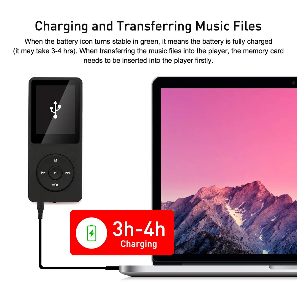 Wanna have some music while you’re jogging? Wanna have some fun while you’re at a long, bored ride? Look here! The Best MP3 Player is coming. Compact, lightweight, portable-easily put in the pocket, sports armband, or backpack. Concise, simple, multi-functional-easy to operate: Music,Picture,E-book,FM Radio,HD Recording. Long Battery Life-built-in rechargeable battery, using up to 10+ hours after once fully-charged. Long Capacity Storage-with 32GB card, stores over 5,000 songs and E-books. Max support 128GB. Lossless Sound Quality-with earphone and speaker, enjoys high-quality music anywhere, anytime. Specifications: Model: MP10 Storage: 128GB(max support 128GB) MP3 Weight: 25g MP3 Size: 3.54 x 1.54 x 0.28 in MP3 Screen: 1.8 Inch TFT LCD Screen Battery: built-in rechargeable battery, can be charged via USB cable(included) Supported Formats: Music: MP3/WMA/OGG/APE/FLAC/WAV/AAC-LC/ACELP Record: recorded and saved in WAV fromat(voice recording range:5-8 meters) Picture: JPG/BMP/GIF Video: AVI FM Radio: 87.5MHz~108MHz, save up to 30 channels(need to connect with the earphone) E-book: support TXT format (Within 10MB) A-B Repeat: supported Support FAT16/FAT32 Support Micro SD/MMC/SDHC card 🎼 【128GB Large Storage】Stores over 5,000 songs and books. You could enjoy all music you loved. Tip: The memory card has been inserted into the player when you receive it, in case of missing. You'd better format the memory card on the computer before using. 🎼 【Lossless Sound Quality】Adopts professional intelligent digital noise reduction technology, ensuring high-quality sound effect. Both earphone and speaker effect is super wonderful. Supported audio formats: MP3, WMA, APE, FLAC, WAV, AAC. 🎼 【Long Battery Life】Suitable for using while you’re jogging, running, doing yoga, or taking a bus or a train, anywhere anytime. 🎼 【Easy to use】Simple button operation, succinct main interface, compact, portable and multi-functional. Upgraded random playing function. 🎼 【Package Lists】1* MP3 Player/1* 128GB TF Card/1* Earphone/1* Charging Cable/1* User Manual. 24/7 after-sales perfect customer services.