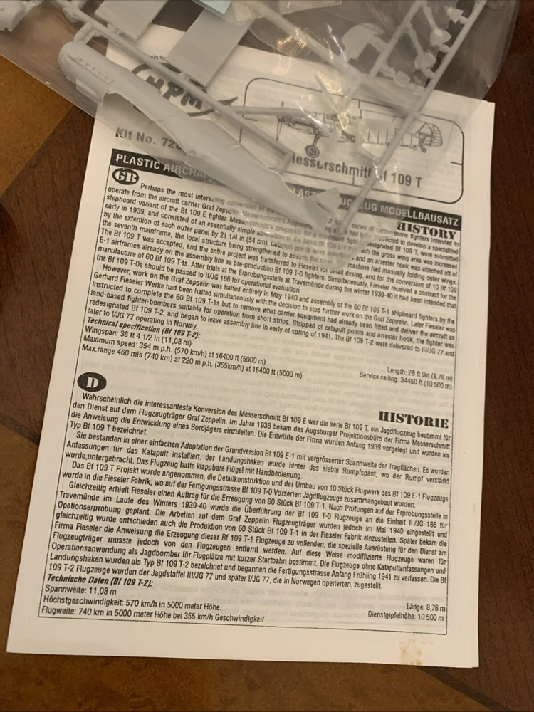 MPM 1/72 - Messerschmitt Bf 109t MODEL KIT OPEN BOX SEALED PARTS