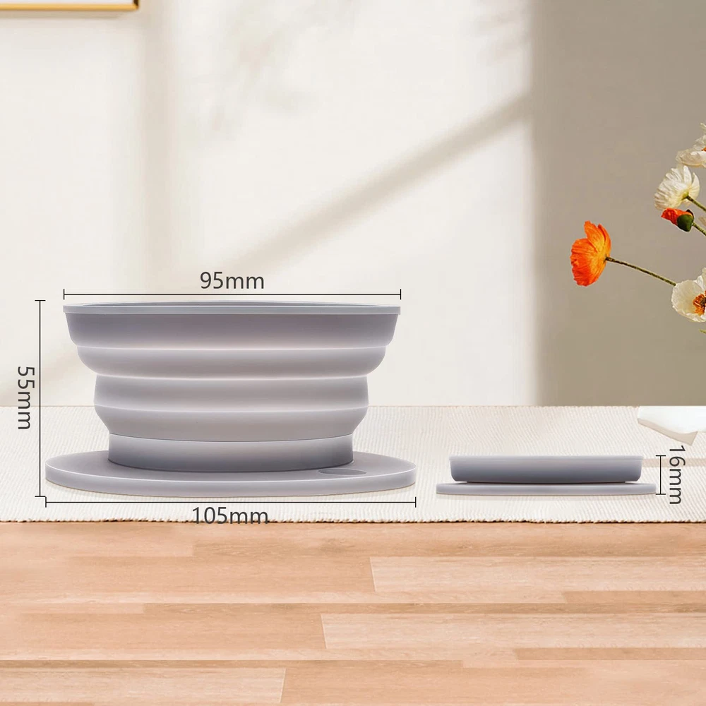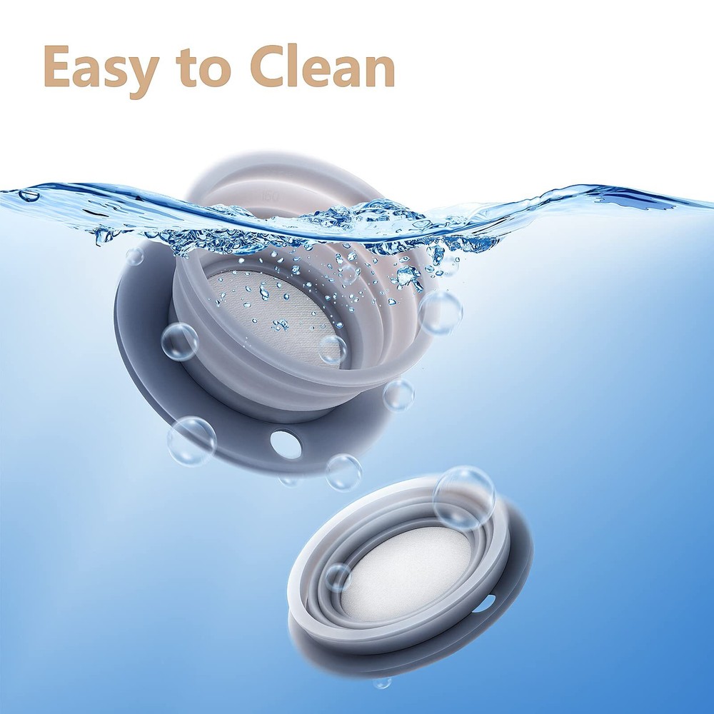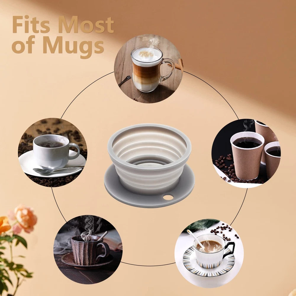 [Reusable and No Need Filter Paper]The drip coffee maker pour over is paperless with fine stainless steel mesh, no need to repurchase coffee filter paper, saving money and environmentally friendly [Collapsible and Portable]The coffee brewer pour over is collapsible, portable, drop-proof and compact, it's a ultra-thin space saver fitting for traveling,camping [Convenient and Practical]Just put about 15g medium or coarse ground coffee into the reusable coffee filter, pour in approximate 250ml 200℉ hot water, a few minutes later, then you get one cup of delicious coffee for single serving. The manual coffee maker is washable, just simply rinse with water to clean it. Reminders: Do not press hard on the metal mesh during rinsing to avoid breakage to the filter. [Broad Applications] With flat bottom design, the portable coffee pour over dripper fits most of mugs and coffee servers with a diameter of 60mm~100mm, it can brew one or two cups of coffee and is suitable for 1 to 2 people to use, works great for traveling, camping, road trip, backpacking, hiking, office, home [Food-grade]The foldable reusable pour over coffee filter is made of food-grade silicone and stainless steel, BPA free, safe and healthy