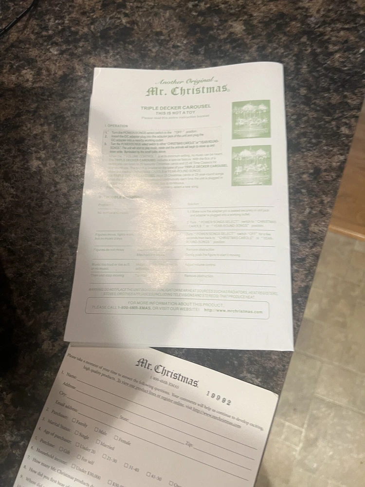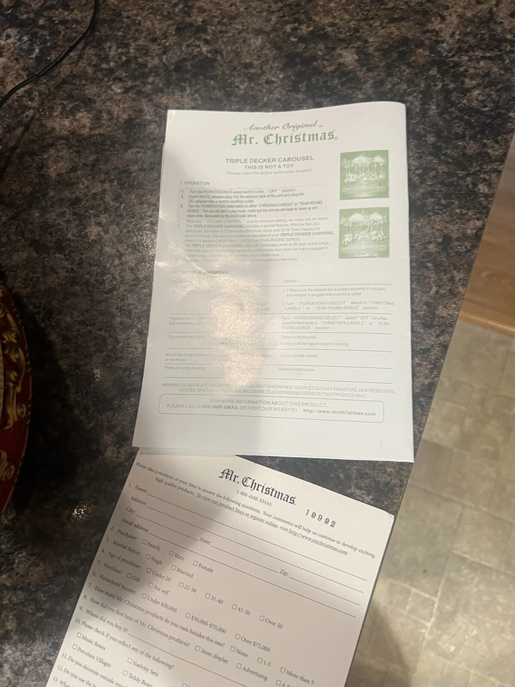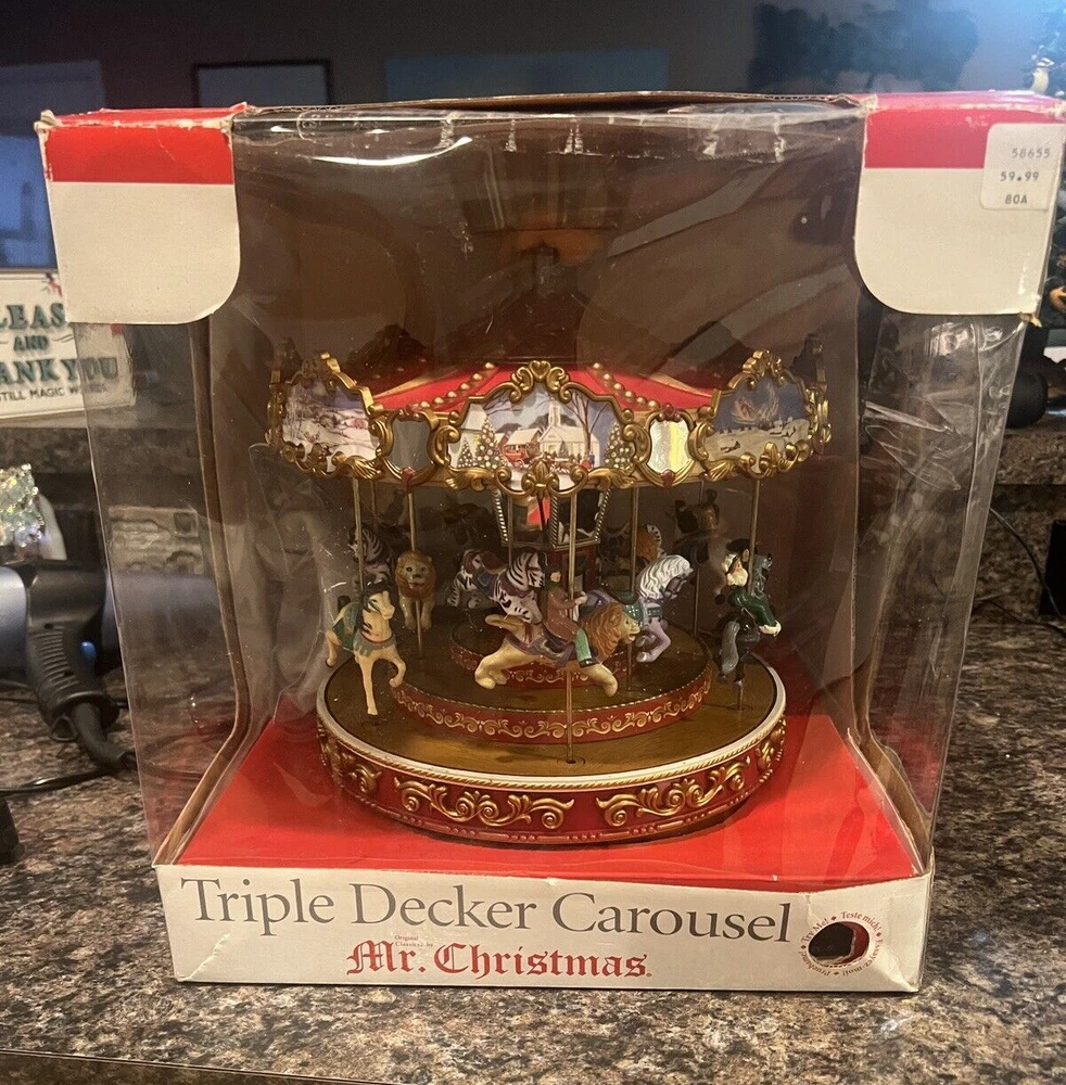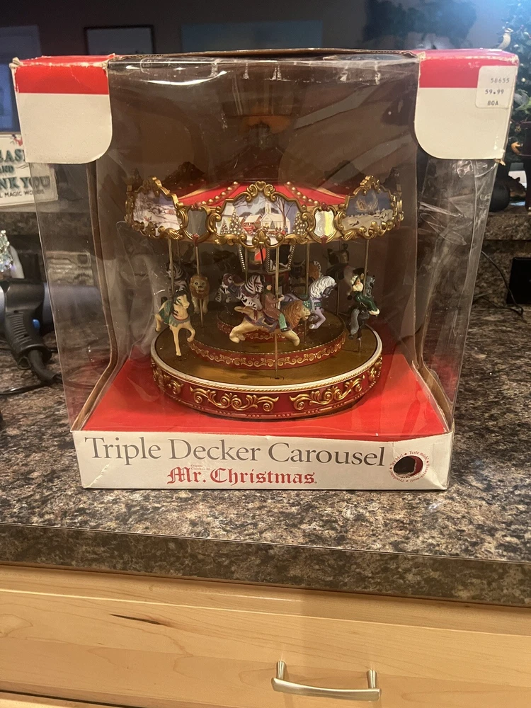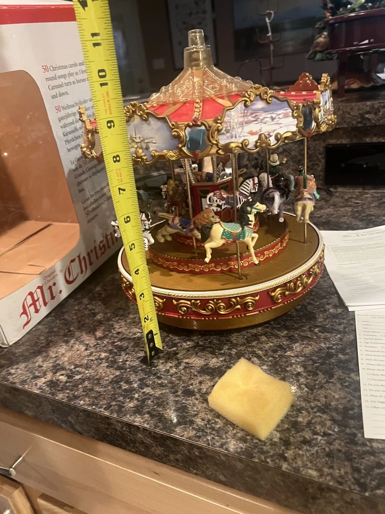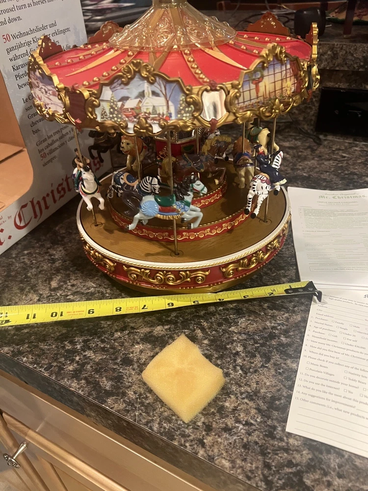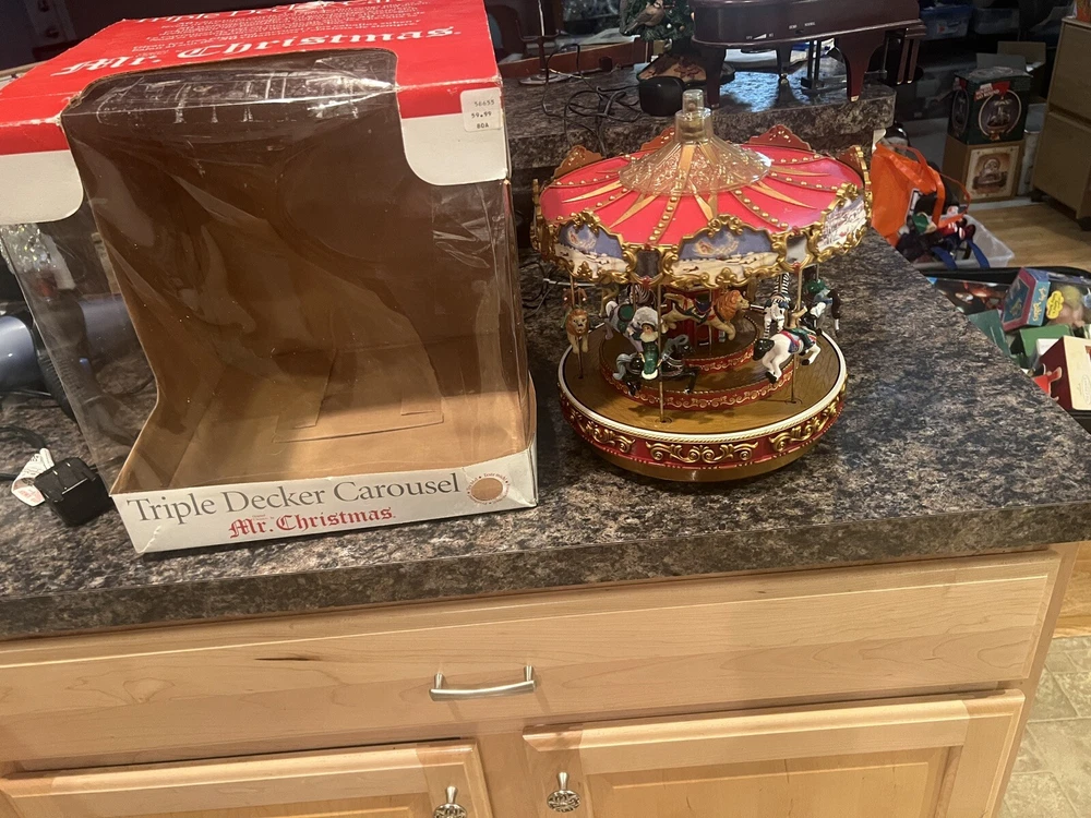 We Strive for nothing less than 5 Star FeedBack and 100% satisfied buyers! If for any reason you are not completely satisfied with your purchase before leaving feedback Please contact us with any questions or concerns. MR. CHRISTMAS 9" TRIPLE DECKER VICTORIAN CAROUSEL Merry Go Round WORKS ! Condition: EXCELLENT WQORKING SEE VIDEO condition see photos original . If there is anything wrong with the item or not as described, please contact me as soon as possible. Item is for sale as it came to us. All items pictured are included in auction. No other accessories are included in auction. please read our descriptions and check our pictures for the best item explanation before purchase. Please read the item description and look at the photos carefully before bidding We will describe the item to the best of our ability. PLEASE ASK QUESTIONS PRIOR TO BIDDING. WE WILL BE MORE THAN HAPPY TO ANSWER QUESTIONS THE BEST WE CAN Buyer assumes responsibility for all shipping and processing charges. THIS AUCTION IS FOR 1 (one) item unless otherwise specified. Bchanes27 reserves the right to end any auction at anytime! All of our items will typically ship within 1 Business day After payment is confirmed. WE ONLY ACCEPT PAYMENT THROUGH PAYPAL AND ONLY SHIP TO U.S. ADDRESSES Except Hawaii, Alaska and Puerto Rico. Be sure to check out our other items and save us as a favorite seller! Keep an eye on our auctions, you never know what we might have! We appreciate you looking at our items, Good luck and Happy Bidding