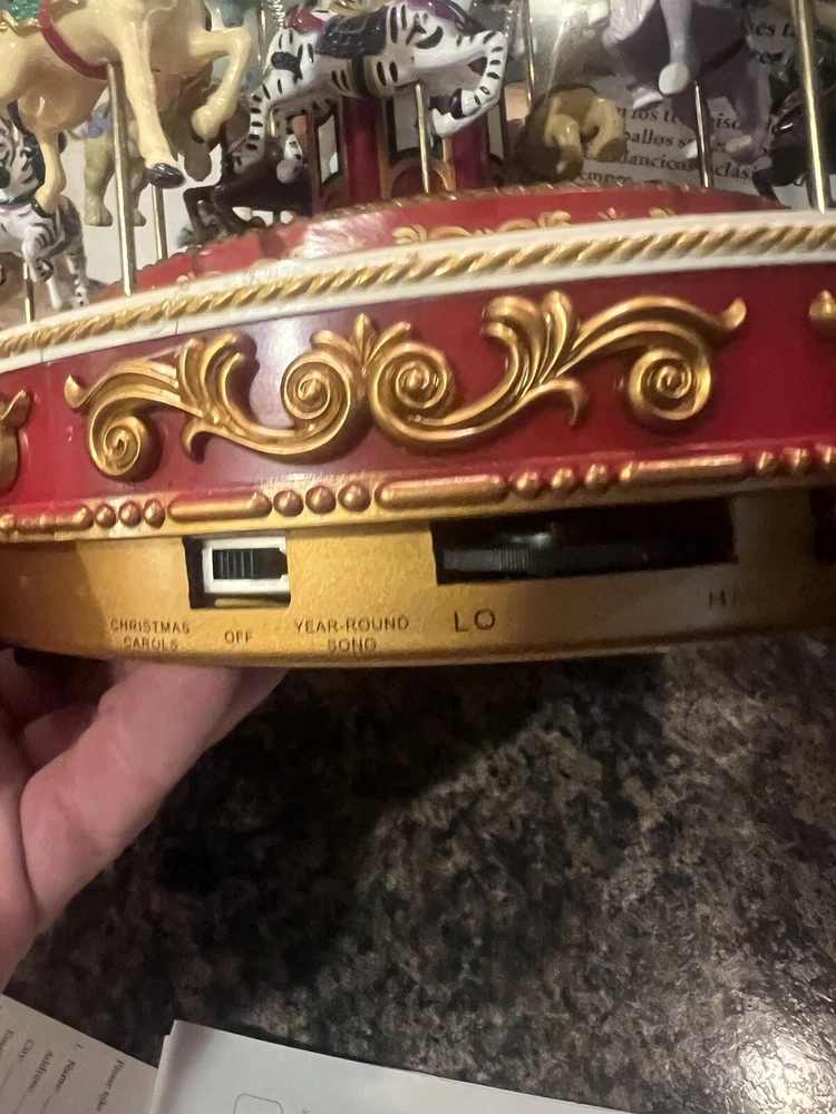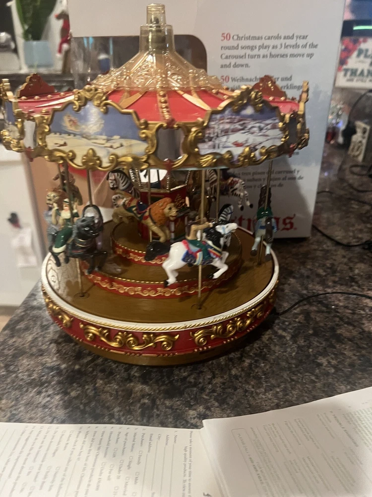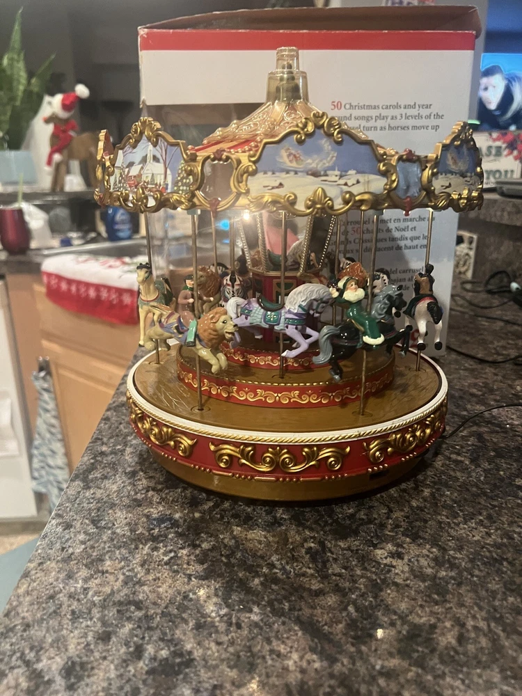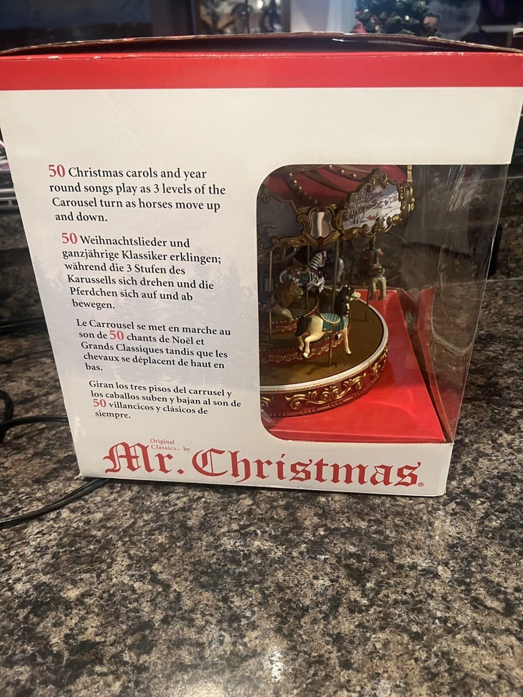 Material: Plastic Year Manufactured: 2009 Brand: Mr. Christmas Featured Refinements: Mr Christmas Carousel Seller Notes: “EXCELLENT WORKING CONDITION SEE VIDEO HAS CHARGER AND MANUALS” Occasion: Christmas Color: Red