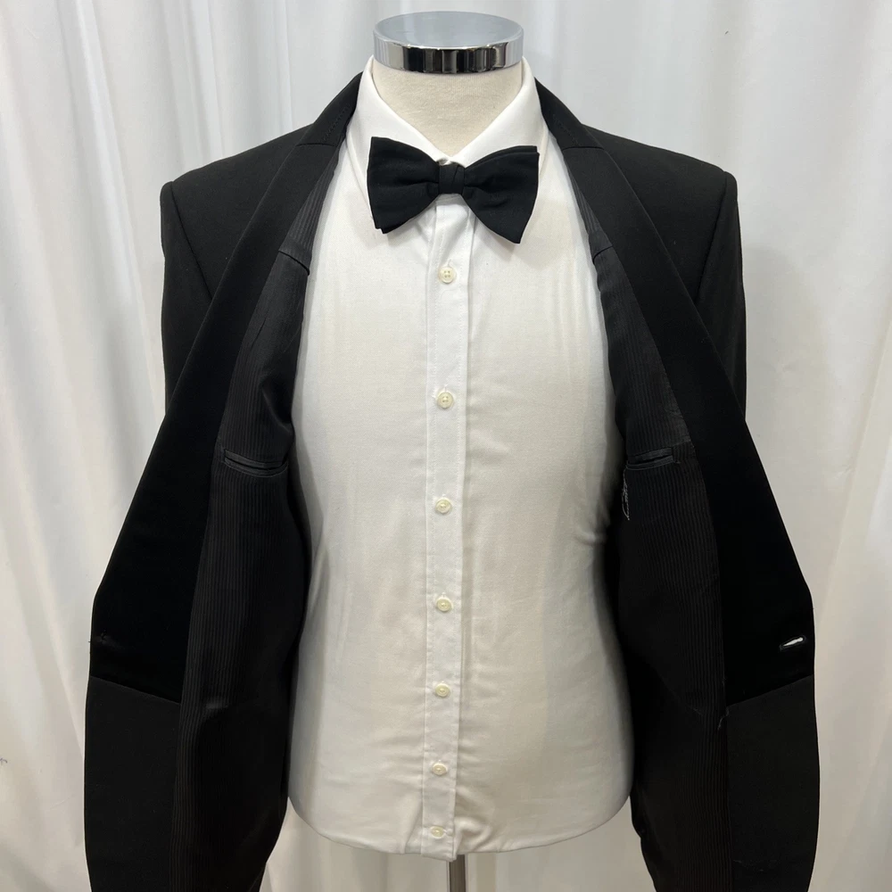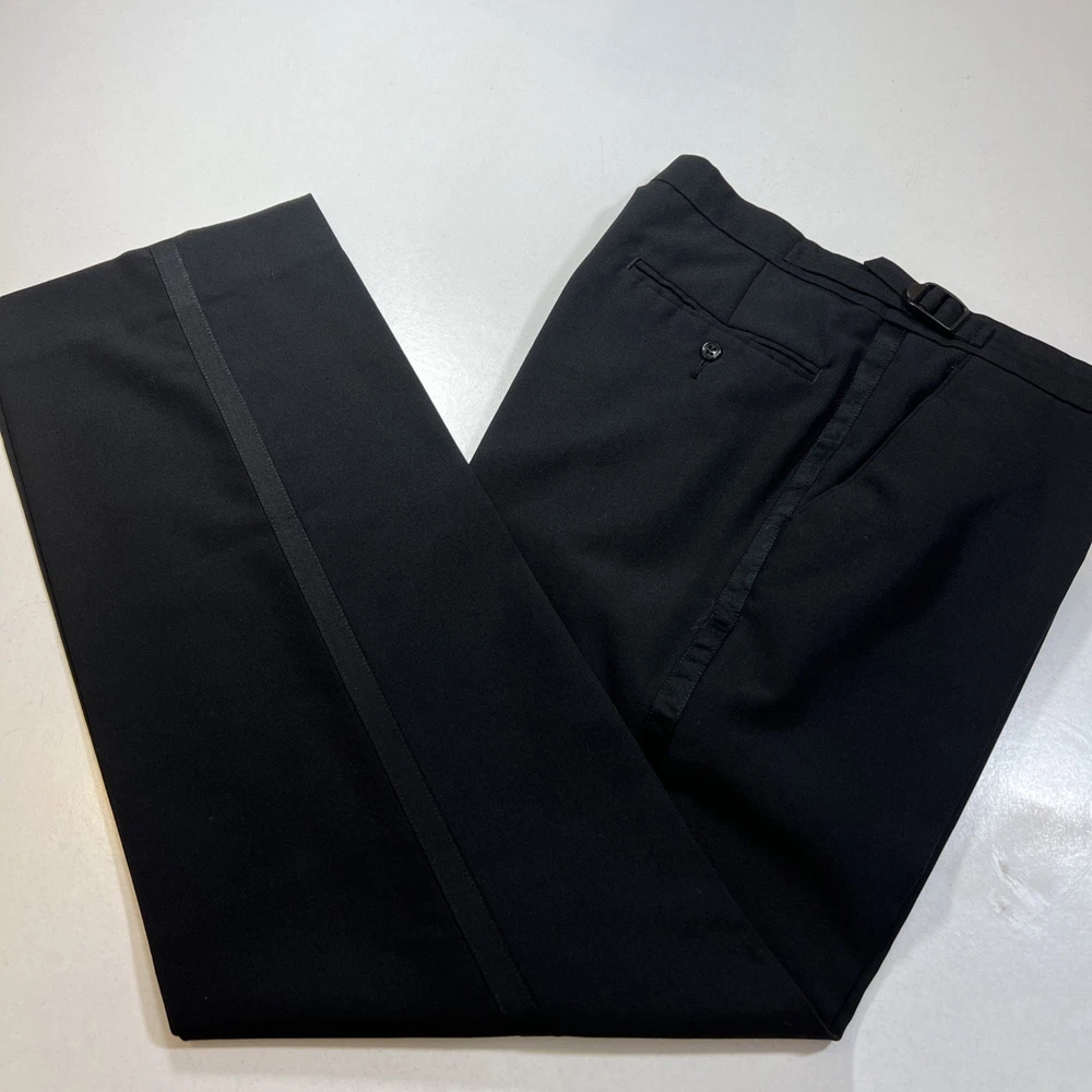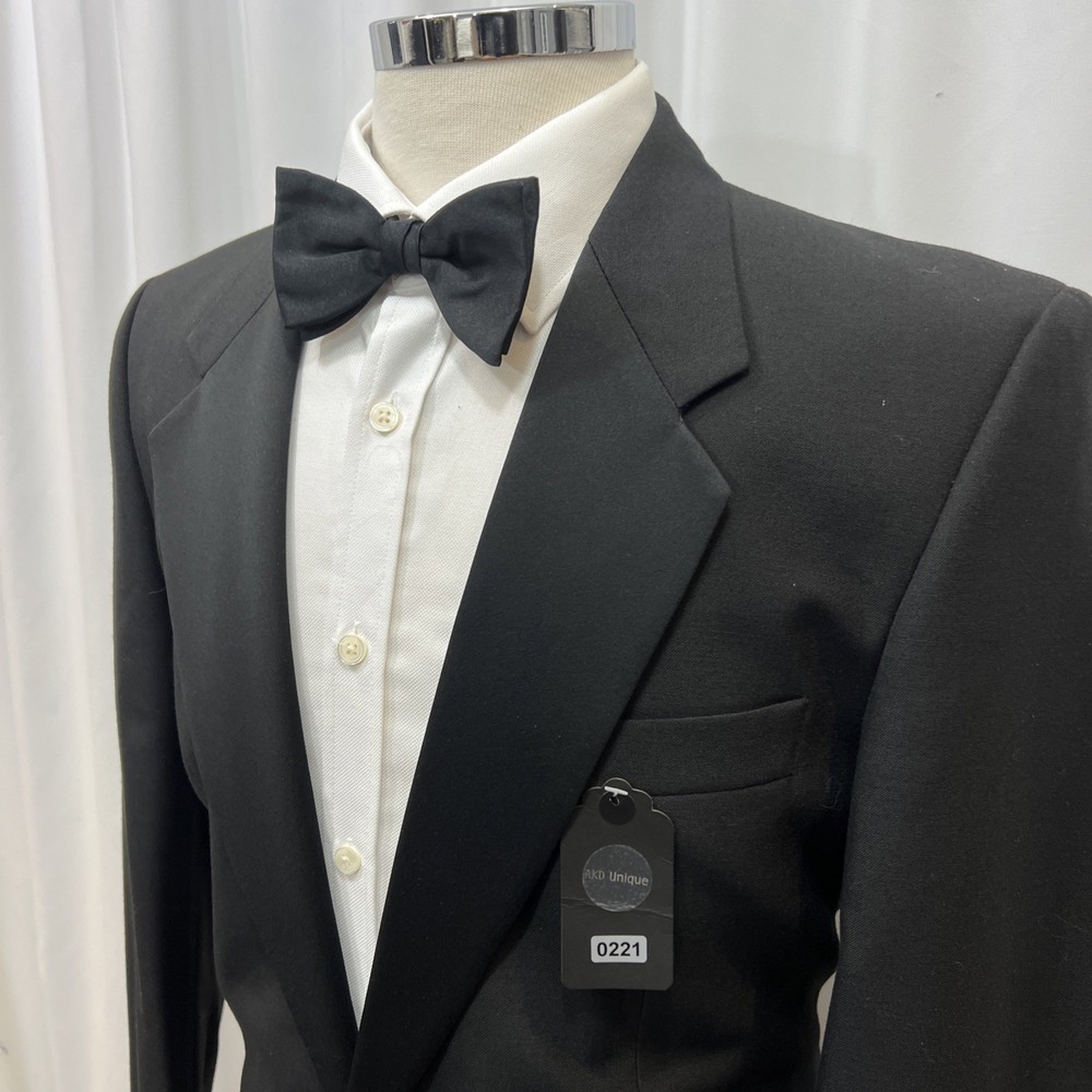 MR HARRY Black Regular Fit Wool Blend 2 Piece Dinner Suit C40R W32 L30 Material 55% polyester 45% wool Jacket Features Chest: 40R" Inside pockets: 2 Front pockets: 2 Breast pocket: 1 Buttons to each cuff: 2 Buttons to front: 1 Back vents: 2 Shoulder to cuff: 26" Armpit to cuff: 18.5" Armpit to armpit when laid flat: 21" Shoulder to shoulder: 18" Collar to hem: 31" Trouser Features Waist: 32" Zip Front pockets: 2 Back pocket: 1 with button 0 button & 2 hook fastenings Inside leg: 30" (can drop 1 1/2") Width of hem at bottom of trousers: 8 1/2" Please note: Colours may slightly vary due to lighting conditions Each item undergoes meticulous hand-measured scrutiny; sizes may not align precisely with the label Review measurements and review the item description/photos before placing your bid Unfortunately, we cannot provide additional photos once items are listed The shirt and tie are not included unless explicitly stated in the listing Questions and concerns: Reach out to us through the ebay messaging system - we aim to respond within a maximum of 12 hours Ironing guidelines: Garments may arrive with minor creases Refer to the care label and use continuous steam when ironing We recommend dry cleaning for best results and peace of mind Your feedback matters: Please leave us a 5-star rating if satisfied For issues or concerns, please contact us before leaving feedback Returns: We offer a generous 30-day return period, via the eBay returns centre Please return items in their original packaging with all tags attached Buyers cover return shipping costs unless items are faulty or inaccurately listed
