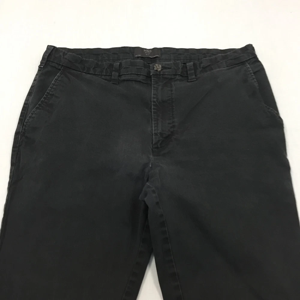 M&S Chino Trousers Mens W34 L30 Straight Fit Black