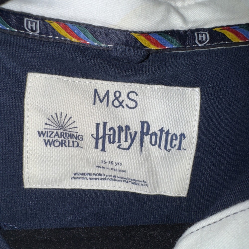 The M&S Harry Potter Rugby Polo Long Sleeve Shirt is a stylish and comfortable option for boys aged 15-16 who are fans of Gryffindor. Made by the brand M & M, this shirt features a classic collared neckline, long sleeves, and a regular fit. The shirt is in a striking blue color, perfect for representing Team Gryffindor with its rugby-inspired design. Ideal for casual wear or sporting activities, this polo shirt is a must-have for any young fan of the Harry Potter series.