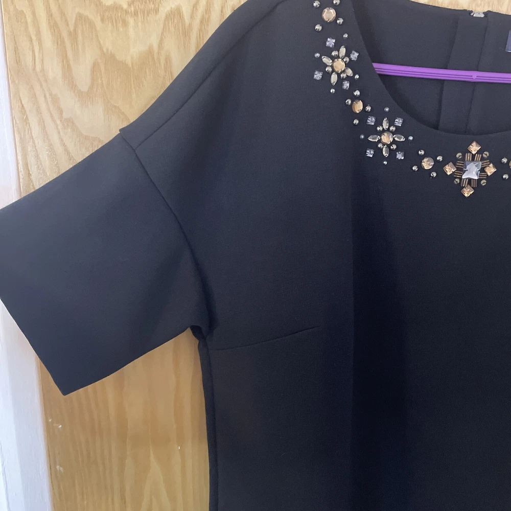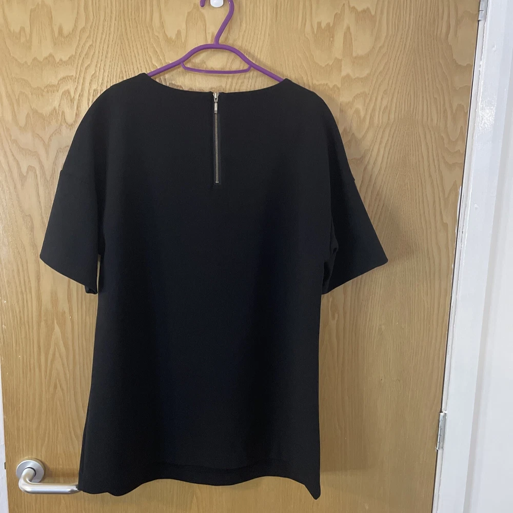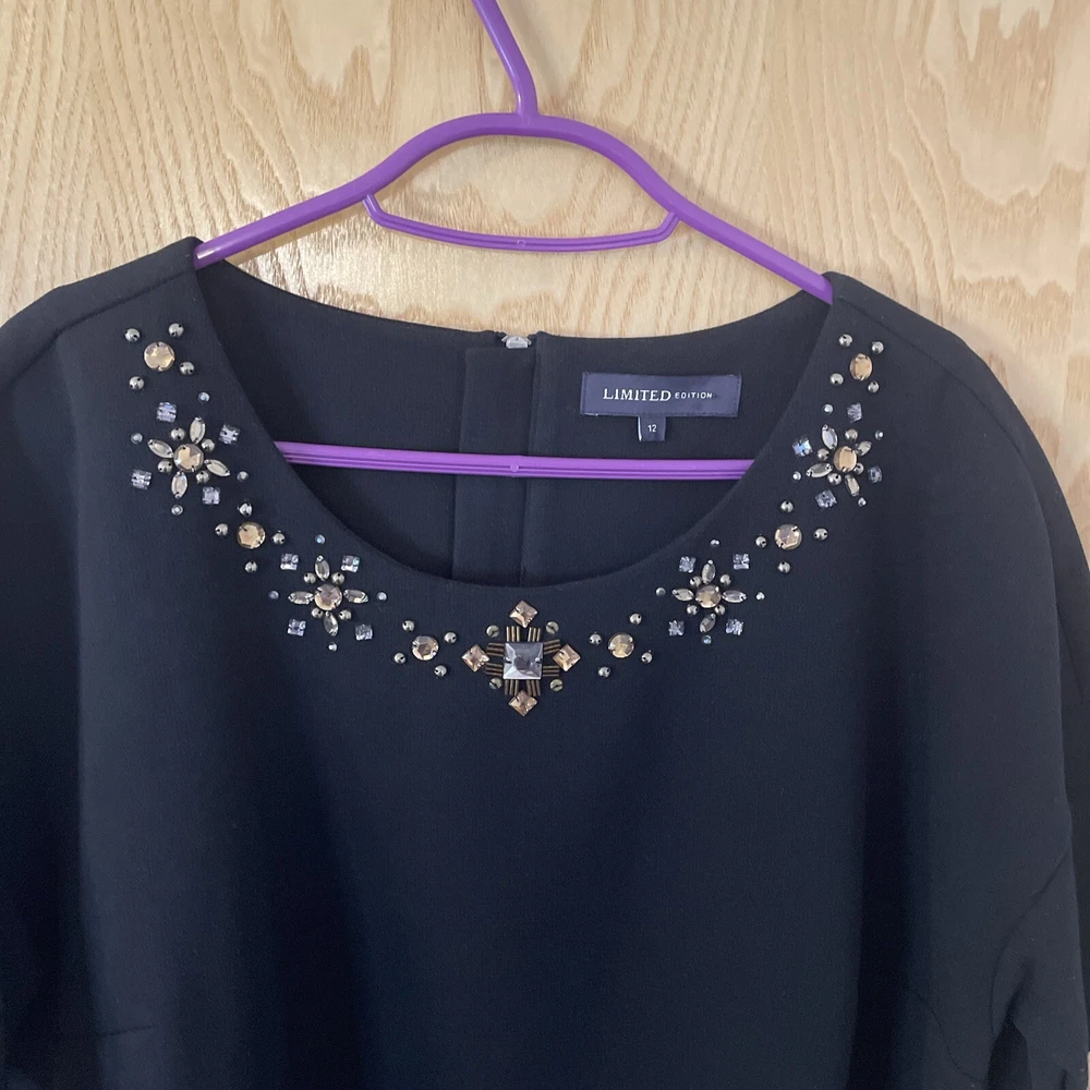 Tight stretch. Thick fabric so the blouse has some weight to it. The item is in good use condition. Approx measurements- 29” full length/ 19” armpit to armpit/ 6” sleeve. Please see all of the photos provided and check measurements.