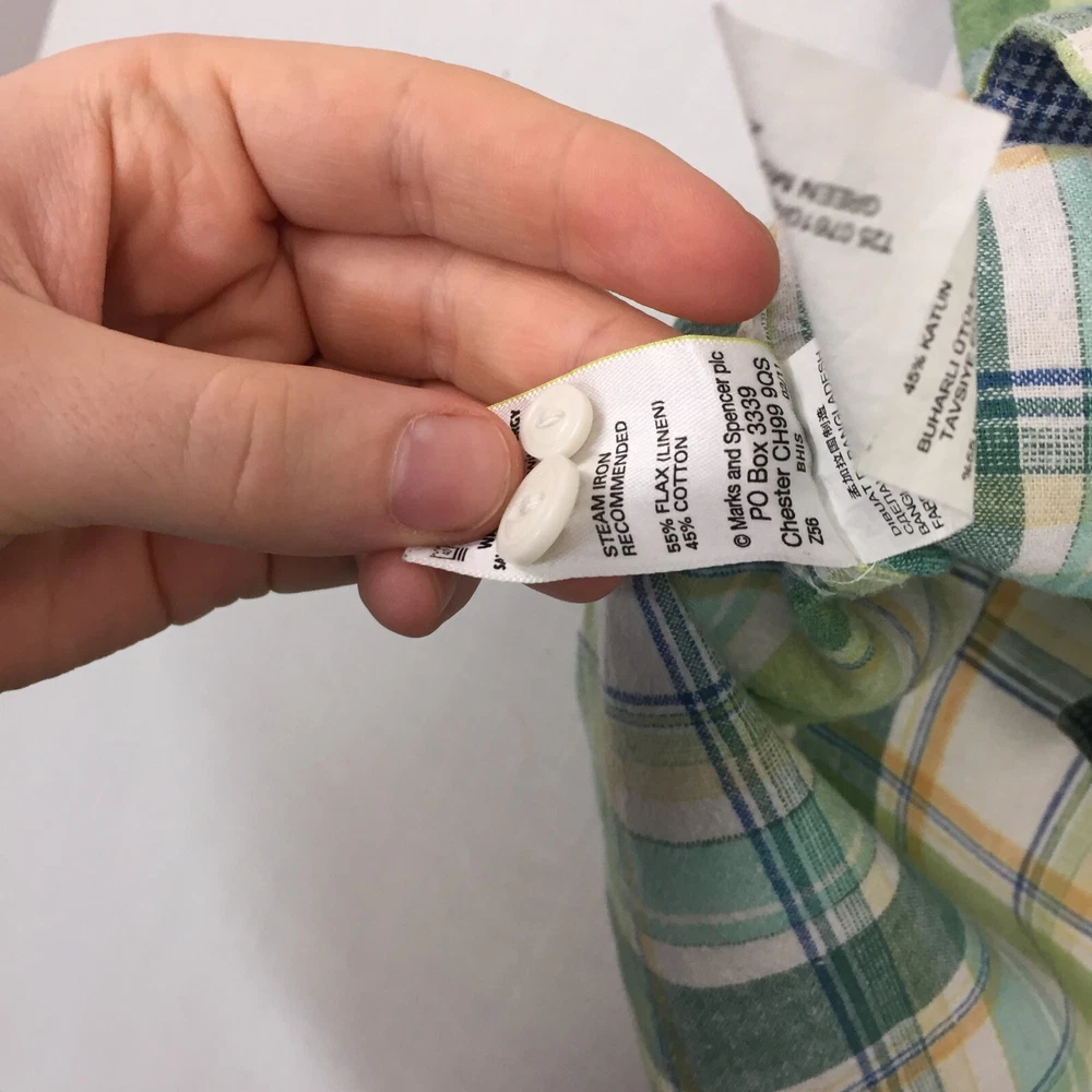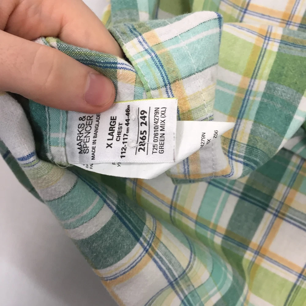 Personalise: No Department: Men Seller Notes: “Good used condition, check below for full description & photos.” Size: XL Brand: Marks and Spencer Features: All Seasons Sleeve Length: Short Sleeve Handmade: No Vintage: No Country/Region of Manufacture: Unknown Size Type: Regular Occasion: Business, Casual, Formal Theme: Classic Type: Button-Up Colour: Green Collar Style: Button-Down Accents: Button Neckline: Collared Closure: Button Garment Care: Machine Washable Pattern: Plaid Fabric Type: Canvas Season: Autumn, Spring, Summer, Winter Fit: Regular Material: Linen
