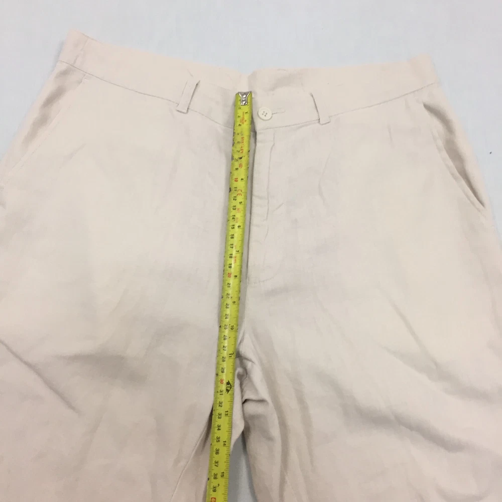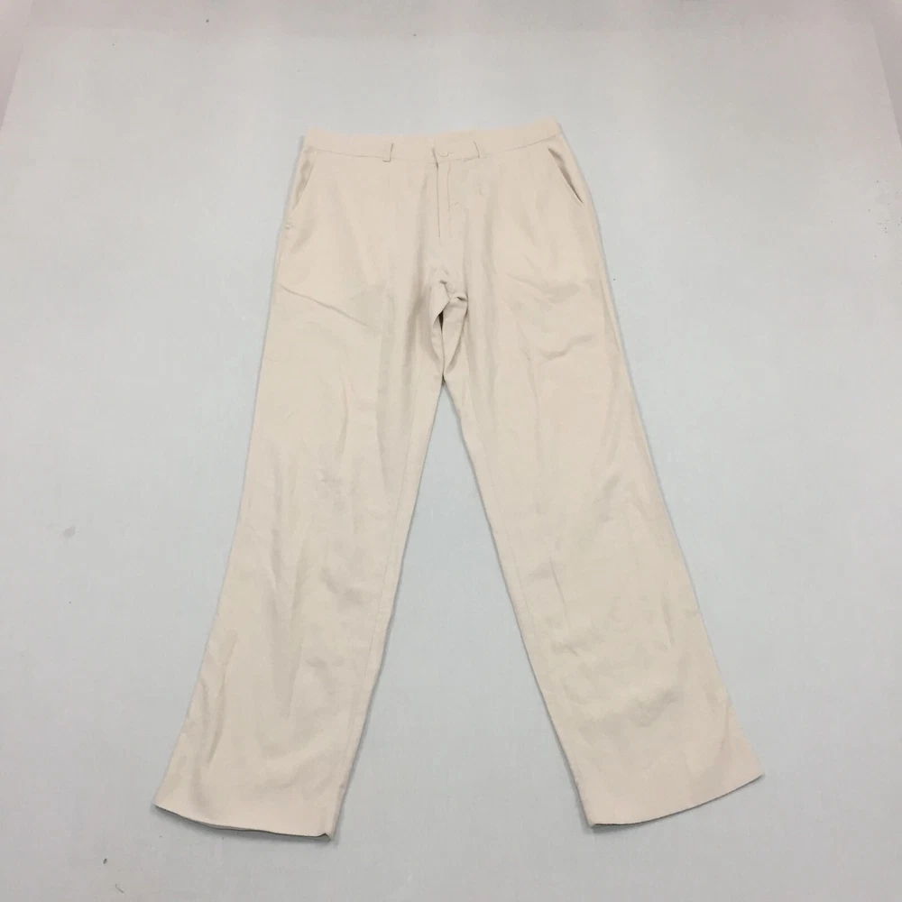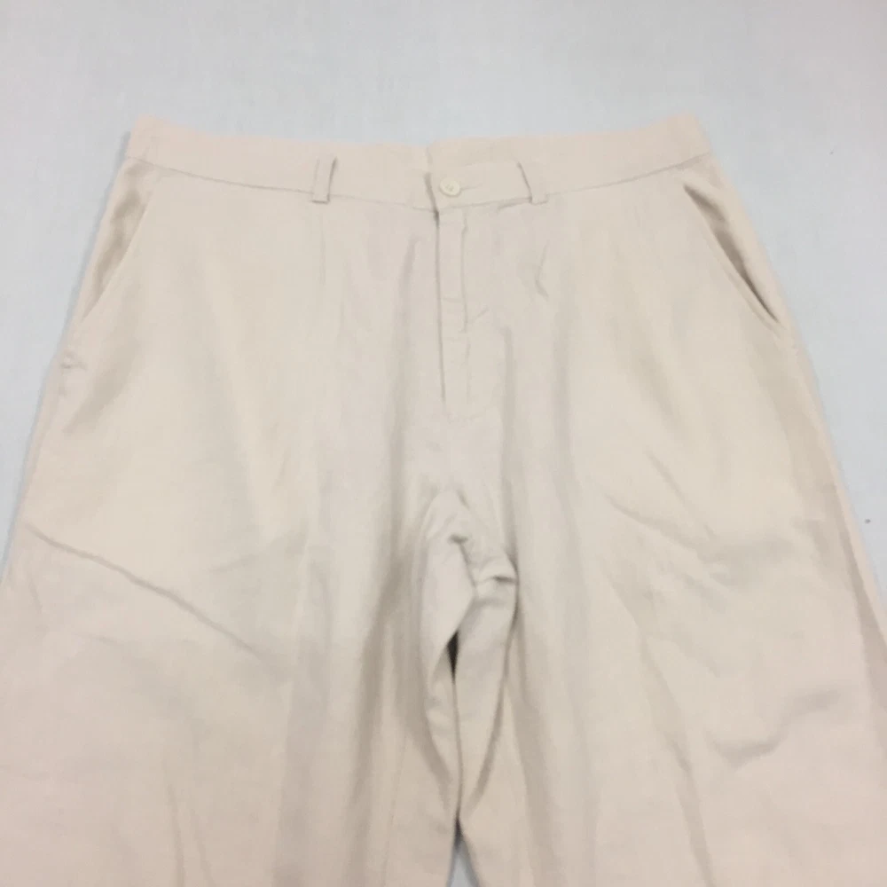M&S Linen Mix Trousers Mens W34 L33 Straight Fit Chino Beige