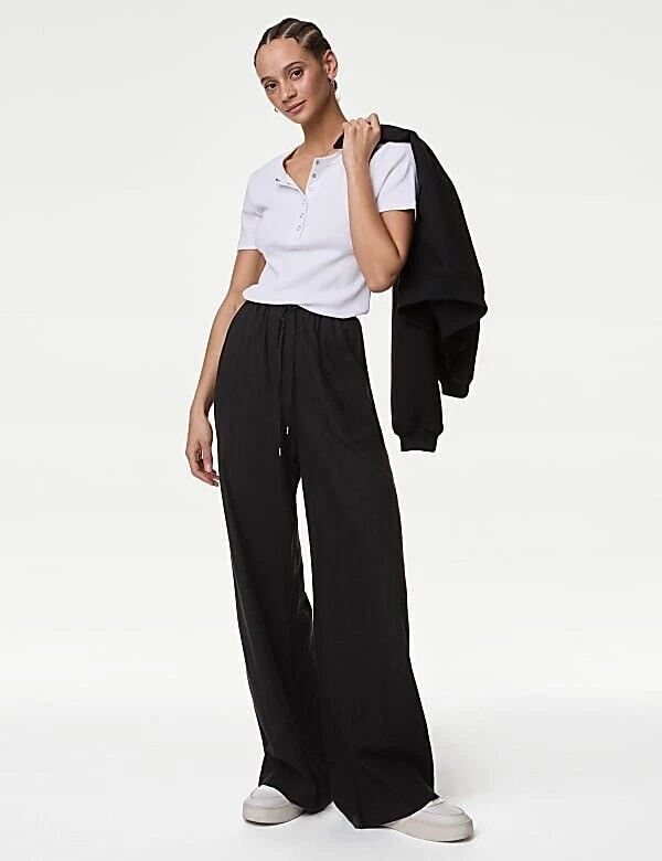 gtin13: N/a Type: Trousers Size: 8 Colour: Black Leg Style: Wide-Leg Season: Spring, Summer Style: Ankle Features: Adjustable Waist Size Type: Regular EAN: N/a Department: Women Brand: Marks and Spencer Material: Linen