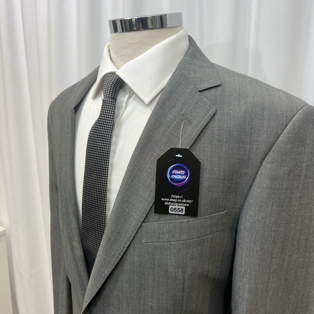 M&S MAN SUPERLITE Grey Wool Blend Regular Fit 2 Piece Suit Material 55% polyester 45% wool Jacket Features Chest: 42M" Inside pockets: 3 Front pockets: 2 Breast pocket: 1 Buttons to each cuff: 4 Buttons to front: 2 Back vents: 2 Shoulder to cuff: 25" Armpit to cuff: 17" Armpit to armpit when laid flat: 22" Shoulder to shoulder: 18" Collar to hem: 31" Trouser Features Waist: 38" Zip Front pockets Back pocket: 1 with button 0 button & 2 hook fastenings Inside leg: 31" (cannot drop) Width of hem at bottom of trousers: 8 3/4" AKD0015-558 Please note: Colours may slightly vary due to lighting conditions Each item undergoes meticulous hand-measured scrutiny; sizes may not align precisely with the label Review measurements and review the item description/photos before placing your bid Unfortunately, we cannot provide additional photos once items are listed The shirt and tie are not included unless explicitly stated in the listing Questions and concerns: Reach out to us through the ebay messaging system - we aim to respond within a maximum of 12 hours Ironing guidelines: Garments may arrive with minor creases Refer to the care label and use continuous steam when ironing We recommend dry cleaning for best results and peace of mind Your feedback matters: Please leave us a 5-star rating if satisfied For issues or concerns, please contact us before leaving feedback Returns: We offer a generous 30-day return period, via the eBay returns centre Please return items in their original packaging with all tags attached Buyers cover return shipping costs unless items are faulty or inaccurately listed