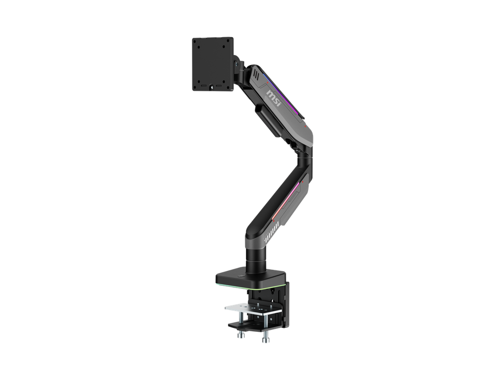 MSI MPG MT201R - Premium RGB Single Monitor Stand Arm, Supports 17-49" Screens MSI MPG MT201R - Premium RGB Single Monitor Stand Arm, Supports 17-49" Screens and 44 lbs, VESA Compatible, Adjustable Heavy Duty Gas Spring Mount, Clamp & Grommet, Quick Release Plate - Gray Features Heavy Duty Design: Experience durability and reliability with the MSI MPG MT201R Premium Single Monitor Stand Arm, supporting screen sizes from 17 to 35 inches and a weight capacity of 2 to 20 kg (4.4 to 44 lbs) per screen. Vibrant RGB Lighting: Add a dynamic touch to your workspace with RGB lighting, enhancing both aesthetics and functionality. Versatile Base Options: Choose between clamp and grommet base options for easy installation on desktops with thicknesses ranging from 10 to 85 mm (clamp) or 10 to 48 mm (grommet), ensuring compatibility with various setups Compatibility: Designed with VESA compatibility (75x75, 100x100 mm) to accommodate a wide range of monitors, ensuring a perfect fit for your setup. Versatile Base Options: Choose between clamp and grommet base options for easy installation on desktops with thicknesses ranging from 10 to 85 mm (clamp) or 10 to 48 mm (grommet), ensuring compatibility with various setups. Fast and Free Shipping You're already purchasing the item. Why pay additional for shipping, especially slow shipping? We get your order shipped out within 1-business day and delivered to your doorstep as quickly as possible. Competitive Pricing With our dynamic pricing model, our prices are always competitive. Our prices are some of the lowest that you will find on the internet. Rest assured that you're getting a good deal when purchasing with us. 30-day Money Back Guarantee We are committed to making sure that you leave this transaction satisfied. If you're unhappy with the product for any reason, you may return it back for your money-back or a replacement within 30 days. No questions asked!