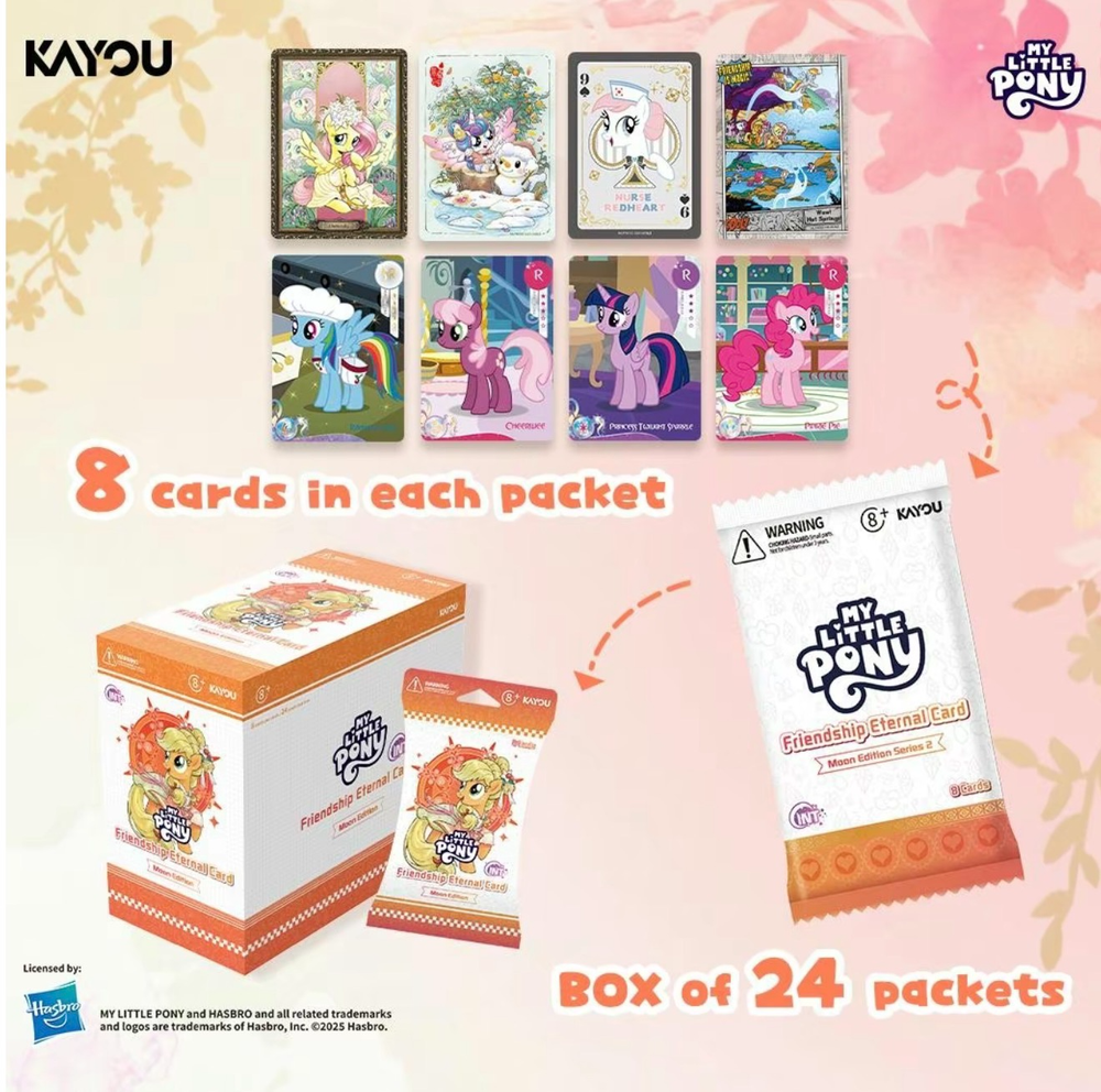 π My Little Pony - Friendship Eternal Cards - Moon Edition π One Sealed Box (24 Packs): This product includes one sealed box containing 24 packs of My Little Pony - Friendship Eternal Cards. Perfect for collectors and fans of the series. π¦ Moon Edition: The Moon Edition adds a special touch to your collection. Each pack contains unique cards inspired by the Moon theme. π Ideal for Collectors: This sealed box is ideal for collectors who want to add a complete set of 24 packs to their collection. Don't miss out on this exciting offer! π Product Details: The product is a sealed box of 24 packs. It features the Moon Edition of My Little Pony - Friendship Eternal Cards. Perfect for enthusiasts. π