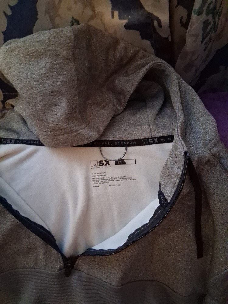 The MSX Michael Strahan Big And Tall Hoodie in 2XL Grey is a stylish and comfortable pullover hoodie with a 1/2 zip closure. Made from polyester, this machine-washable hoodie features long sleeves, a hood, and is designed for men in sizes big and tall. With the iconic character of Michael Strahan and a classic grey color, this hoodie is perfect for summer, fall, or spring seasons. The hoodie also comes with a 1/4 zip feature for added versatility and style. Made in Vietnam, this hoodie is a must-have addition to any man's activewear collection.