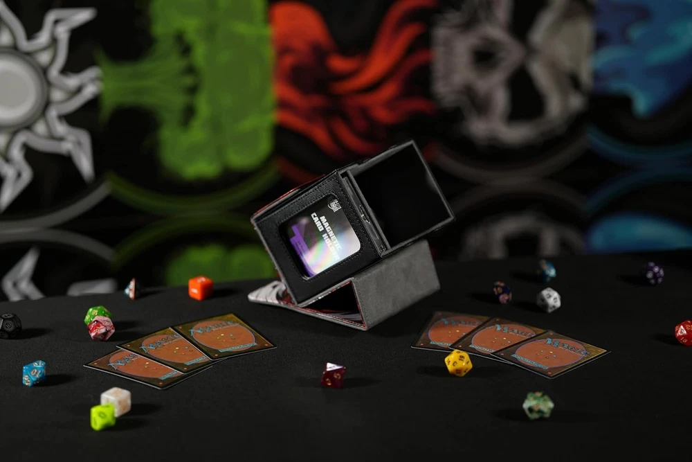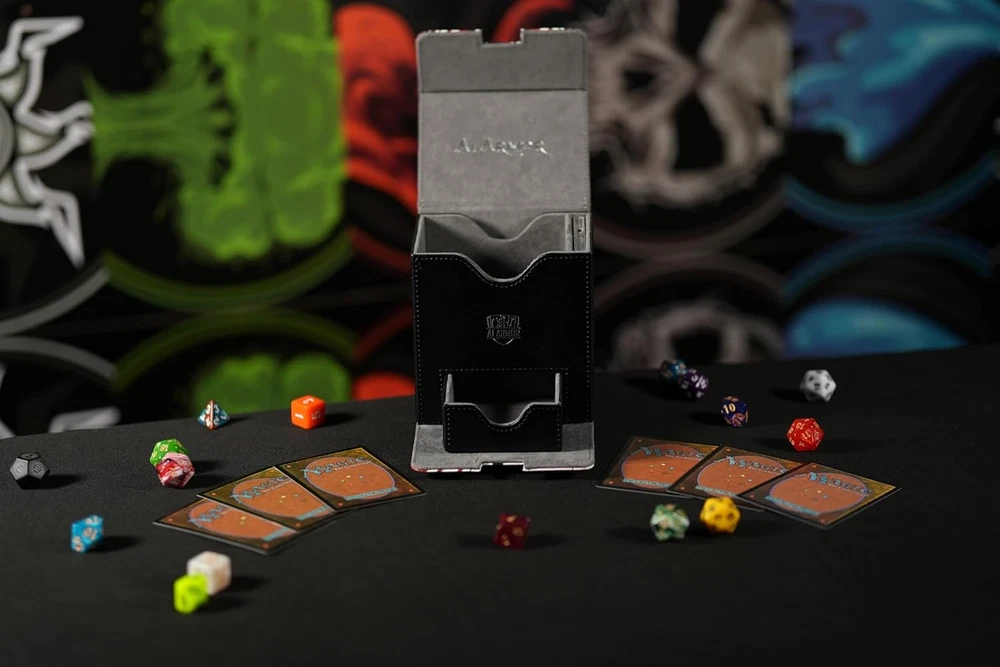 ✅ Fits 120 Sleeved, 110 Double Sleeved ✅ Magnetic Card Holder For Commander (Fit's Sleeved Card) ✅ Storage Tray For Dice & Counters ✅ Hand Made ✅ High Quality Faux Leather ✅ Premium Stithcing, Tough & Durable ✅ Soft Microfiber Inside ✅ Impact & Water Resistant ✅ Compatible with Magic The Gathering and Pokemon & Lorcana Cards. These boxes are not created by Magic The Gathering, Pokemon or Disney. Product Description Ai Armor Deck Boxes The video showcases the product in use. The video guides you through product setup. The video compares multiple products. The video shows the product being unpacked. Ai Armor Exclusive Mana/Guild Deck Boxes Brand New 2024/25 Launch Features: Our deck boxes feature premium soft leather, with a slight texture so they grip well, intricate durable stitching that matches the color. Water & Impact resistant with a soft microfiber inside. Every box comes with a magnetic card holder that will fit a sleeved card to prevent scratches! Large Capacity Fits 120 Sleeved & 110 Double Sleeved Magnetic Holder Fits Sleeved Card An Ai Armor exclusive! Other magnetic holders will NOT fit a sleeved card. Premium Quality Materials Slighty Textured Leather for Ultimate Grip Durable Color Matched Stithcing Matching Mana Sleeves! Matching Mana Sleeves! Matching Sleeves! Matte Back Acid & PVC Free Matching Sleeves! Matte Back Acid & PVC Free Matching Sleeves! Matte Back Acid & PVC Free Matching Sleeves! Matte Back Acid & PVC Free Blue Black White Black White White Red Green Green Black