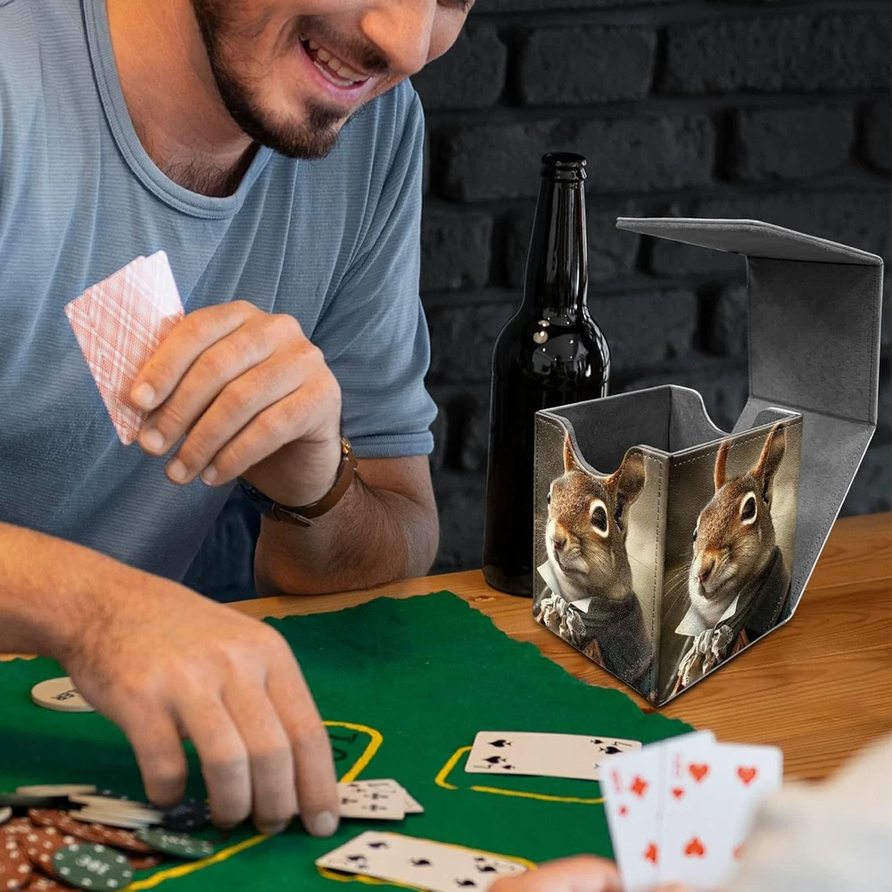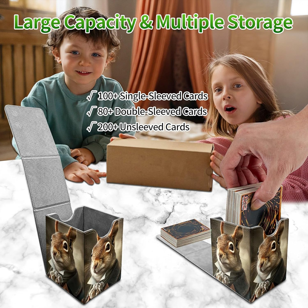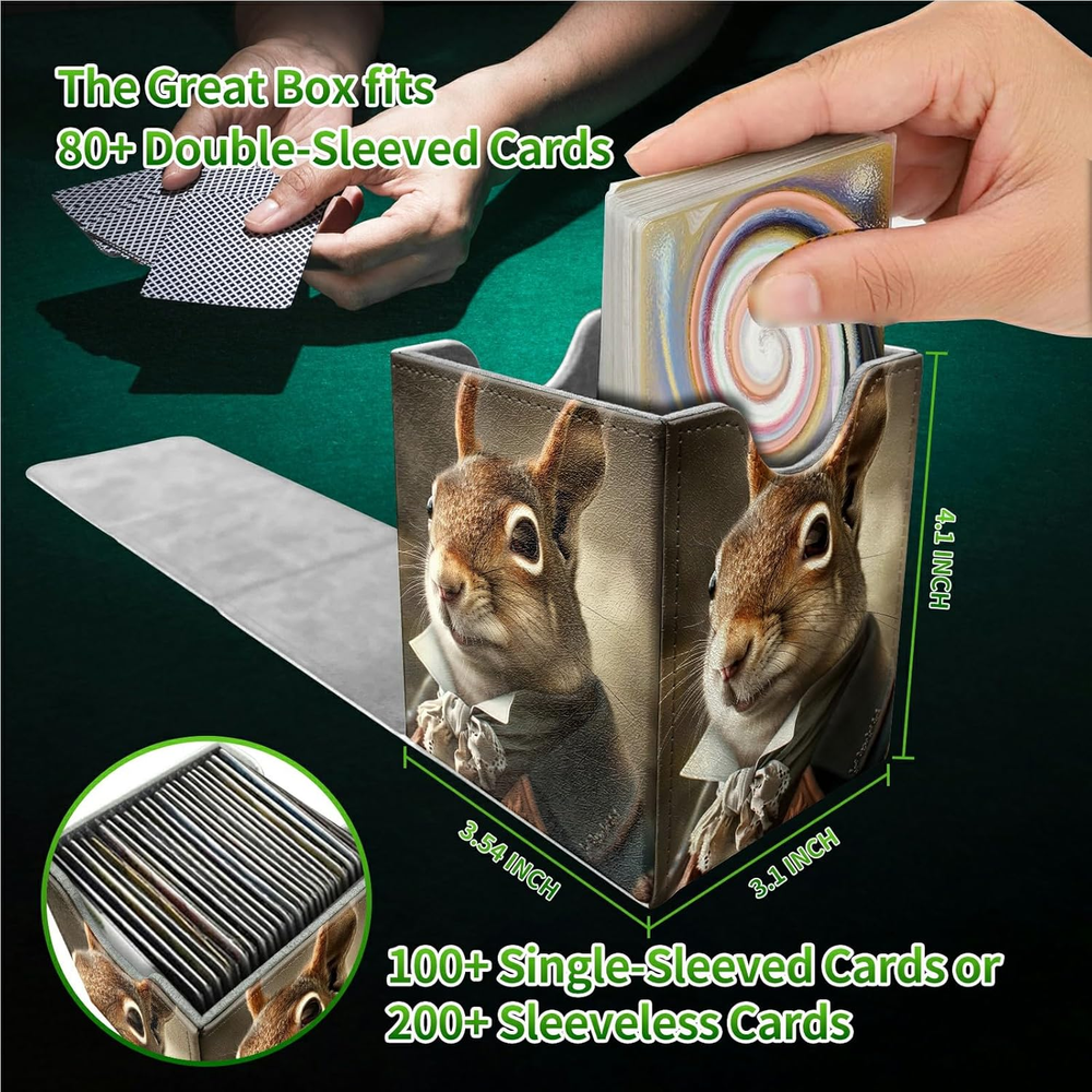 ❥ Deck box tcg made from water resistant, sturdy, durable PU leather material on the outside and high protection soft microfiber lining inside. Keep your valuable cards safe and secure. ❥ The commander deck box size - 3.54 * 3.1 * 4.1 inches, holds up to 100 standard-sized cards. Perfect for organizing and protecting your favorite TCGs, CCGs, LCGs, and collectible cards. ❥ MTG card storage powerful magnets keep the card holder secure during transportation. no more worrying about your cards falling out or getting damaged. ❥ U-shaped thumbholes provide easy access to your cards. The stylish and eye-catching design makes it a must-have accessory for any card game enthusiast. ❥ MTG box Suitable for a variety of popular trading card games including Magic The Gathering, Dragon Shield, Star Wars X-Wing, Game of Thrones, WoW, Force of Will, Legend of the Five Rings, Cardfight! Vanguard, Duel Masters, Panini football, and Baseball Cards. RWUTYTIUL MTG Commander Deck Box - the ultimate storage solution for your beloved trading card game (TCG) and collectible card game (CCG) decks. Why did you choose us? 💖Made from water-resistant, sturdy, and durable PU leather material on the outside, this deck box ensures that your cards are protected from moisture and other external elements. 💖The high-protection soft microfiber lining inside provides an added layer of security, keeping your cards in pristine condition. 💖Measuring at 3.54 * 3.1 * 4.1 inches, this deck box can hold up to 100 standard-sized cards. 💖It is specifically designed to fit single-sleeved cards, making it the perfect choice for Magic Commander, TCG, and CCG players. 💖The powerful magnets integrated into the box keep your cards securely in place during transportation, preventing any accidental spills or damage. 💖Not just limited to Magic The Gathering, this deck box is suitable for a variety of TCGs, CCGs, LCGs, and other collectible card games. Whether you play Dragon Shield, Star Wars X-Wing, Game of Thrones, WoW, Force of Will, Legend of the Five Rings, Cardfight!! 💖Vanguard, Duel Masters, Panini football, or Baseball Cards, this deck box is designed to accommodate your favorite cards. 💖The deck box features U-shaped thumbholes, allowing for easy access to your cards. No more struggling to retrieve or store your cards - simply slide them in and out effortlessly. 💖The sleek and stylish design of this deck box is also eye-catching, making it a standout accessory for any gaming session or tournament. Note: It is better to wipe off the gray layer of the wall before use, will be more easy use in smooth surfaces.