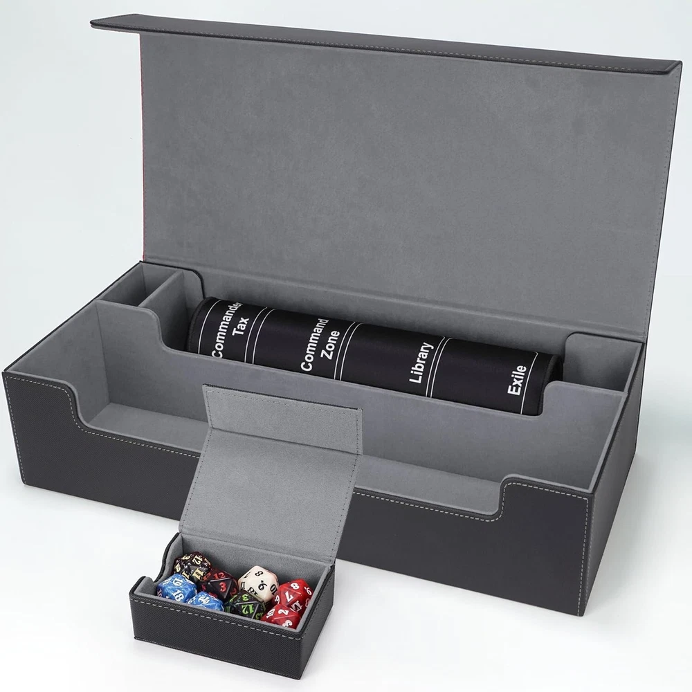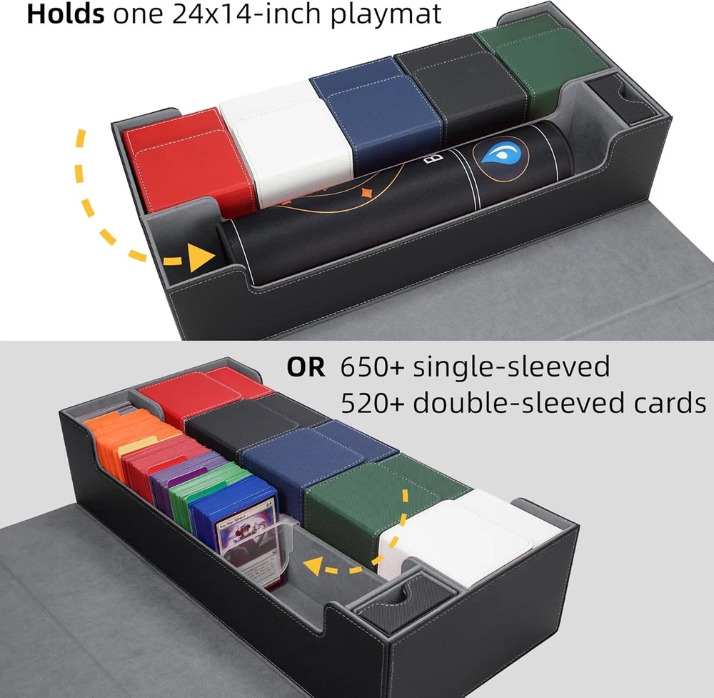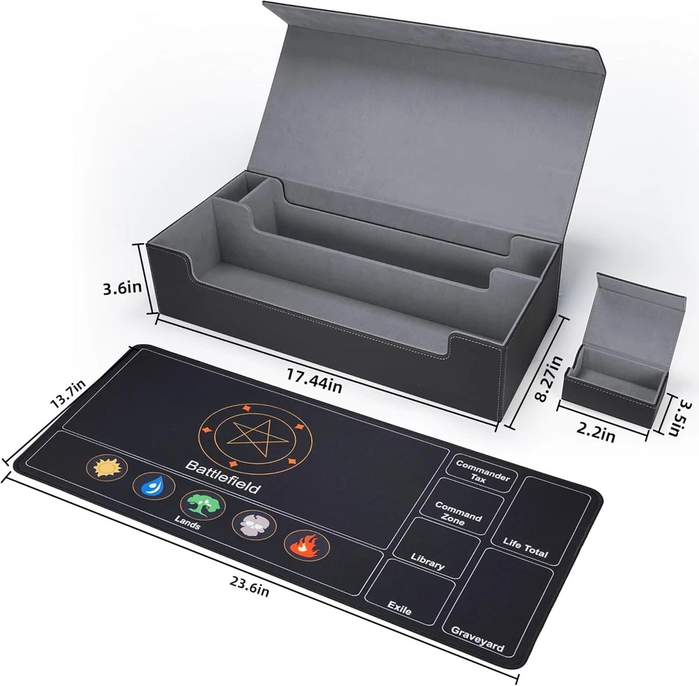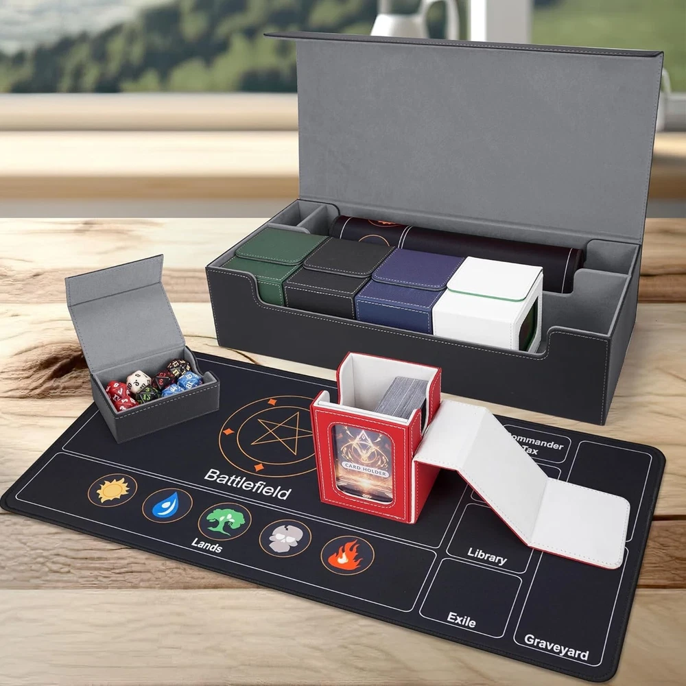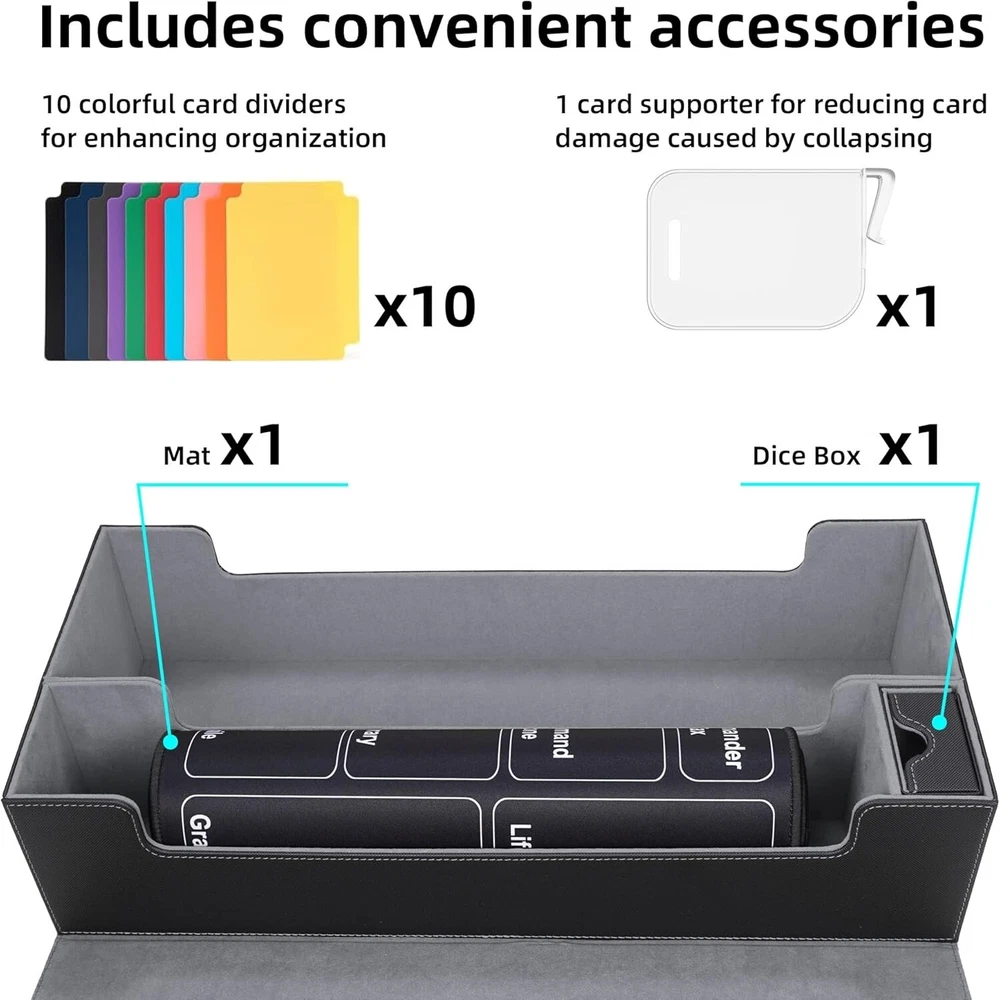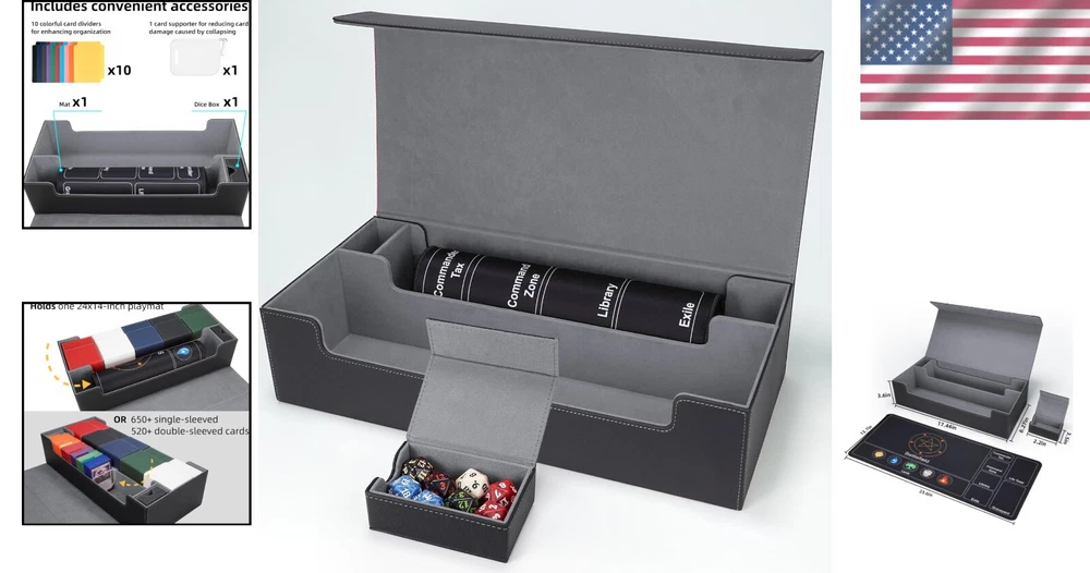 MTG Deck Box: Store 5 Decks, Dice & Playmat - Portable Card Storage Solution ‹ › ‹ › ‹ › ‹ › ‹ › ‹ › ‹ › ‹ › ‹ › MTG Deck Box: Your Ultimate Portable Card Storage Solution Are you ready to take your card game to the next level? This innovative MTG Deck Box is designed for serious gamers, conveniently holding up to 5 decks, accessories, and even a playmat, ensuring that everything you need is organized and easily accessible. Features: Holds 5 Display Card Deck Boxes (not included, sold separately). Upgraded dice case with lid to store dice, damage counters, poison/burn markers, and extra tokens. Playmat storage accommodates up to 650 single-sleeved or 520 double-sleeved cards. Included game play mat for MTG TCG measures 24 x 14 inches. Innovative card supporter prevents your valuable cards from bending or collapsing. 10 colorful dividers for easy organization of cards and accessories. Compatible with a variety of game cards including Magic: The Gathering, One Piece, Pokémon, YuGiOh!, Duel Masters, and sports cards. Sturdy PU leather shell for shock protection with a soft microfiber interior to prevent scratches. Secure closure with multiple magnets to ensure safe transportation. Custom-fitted design specifically for Commander EDH players, with a dedicated slot for showcasing your Commander card. Benefits: Effortlessly carry multiple decks and accessories in one portable solution. Preserve the condition and collectible value of your cards with innovative support features. Organize easily with colorful dividers for swift retrieval and enhanced efficiency. Versatile design perfect for a wide range of card games and collectible items. An excellent choice for TCG players or as a thoughtful gift for fellow card enthusiasts. Why Choose Our MTG Deck Box? Elevate your gaming experience with a deck box that combines elegance with functionality. Our MTG Deck Box not only protects your valuable cards and accessories with a sturdy and stylish design, but it also allows for easy organization and effortless transport—perfect for tournaments, casual games, or simply storing your treasured collection at home. Plus, the innovative window design showcases your favorite Commander card with pride. Seize the opportunity to streamline your gameplay—order your MTG Deck Box today and enjoy the ultimate in card storage solutions! Shipping Free & Fast Shipping - We offer free shipping to most of the USA with a normal delivery time of 3-7 days. However, due to the current situation, additional delivery time (up to 3 weeks) may be required for some items. Alternative Carriers - We may use alternative carriers (e.g. USPS, FedEx, UPS, etc.) to ensure your package arrives safely and on time. Due to the use of multiple carriers, we are unable to provide a tracking number automatically. Handling Time - Orders are processed and shipped within 1-2 business days of receiving cleared payment. Shipping Restrictions - Shipping to Alaska, Hawaii, Puerto Rico, Guam, and other US territories may incur shipping charges or delivery restrictions. Please contact us before ordering, or your order can be refunded/cancelled. State Restrictions - There may be restrictions based on your state of purchase. For example, certain items may not be shipped to California due to state regulations. Contact for Tracking Updates - If you require tracking updates or have any concerns about the delivery of your order, please feel free to contact us, and we will be happy to assist you. Return Please see our eBay Return Policy. Thank you. Payment We accept all major credit cards, PayPal, and Apple Pay for your convenience. Your payment information is secure and encrypted to ensure a safe and seamless transaction. Please complete your payment within 3 days of purchase to avoid any delays in shipping. Feedback Your feedback is extremely important to us. We strive to provide the best products and customer service possible. If you are satisfied with your purchase, please take a moment to leave us a positive review. If you have any concerns or issues with your order, please contact us before leaving negative feedback. We are committed to resolving any problems and ensuring your satisfaction. Contact Us If you have any questions or concerns, please feel free to reach out to our customer support team. You can contact us through the eBay messaging system. We are available Monday to Friday, 9:00 am to 5:00 pm EST, and we will do our best to respond to your inquiry within 24 hours. Thank you for supporting our small family business! UPC: Not Set Number of Cards: Not Set Autograph Format: Not Set Game: Magic: The Gathering,One Piece,Pokémon,YuGiOh!,Duel Masters,football cards,basketball cards,baseball cards,Dominion cards Set: Not Set Card Type: Storage Box Attribute/MTG:Color: Not Set Manufacturer: Not Set Character: Box Card Size: Standard Card Name: Not Set Features: Portable,Customizable,Includes Playmat,Includes Dividers Finish: Not Set Material: PU Leather,Microfiber Illustrator: Not Set Archetype: Not Set Language: English Year Manufactured: Not Set Age Level: 13+ Card Condition: New Country/Region of Manufacture: Not Set Signed By: Not Set Card Number: Not Set Autographed: Not Set Vintage: Not Set