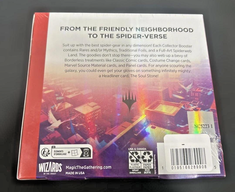 * Description All my products are 100% Authentic. Please feel free to contact us if you have any question. ✨✨ MAGIC: THE GATHERING MARVEL SPIDER-MAN COLLECTOR BOOSTER BOX (ENGLISH) ✨✨ ✨ Features ✨ 🕷 Magic: The Gathering × Marvel Official Collaboration Your friendly neighborhood Spider-Man joins the Magic world in this highly anticipated crossover set 📦 Collector Booster BOX Specifications (12 Packs) 15 cards per pack Experience the unique satisfaction and sense of collection only a BOX opening provides ✨ Luxury Collector-Oriented Contents ・ 11-13 Foil Cards ・ 5 cards of Rare or higher rarity ・Numerous borderless cards and special-format cards appear 🎨 Visuals evoking the Spider-Verse Borderless cards and background-enhancing card designs that seem to leap off the page 💎 Chance to get a Headliner Card Less than 1% chance to get a special Mythic Rare Headliner Card 🎴 Extensive Card Pool Drafted from SPM / SPE / MAR sets Exceptionally high standards for both collectability and opening experience 🛡 Brand New & Unopened (Factory Sealed) Official Wizards of the Coast product Collect and store with confidence ✨✨ A premium box for MTG collectors that will spark your Spider-Sense ✨✨ * Shipping We ship using FedEx, DHL and Japan Post. * Payment We usually ship within 5~10 business days of receiving cleared payment. * International Buyers - Please Note: Import duties, taxes and charges are not included in the item price or shipping charges.These charges are the buyers responsibility.Please check with your countrys customs office to determine what these additional costs will be prior to bidding/buying. These charges are normally collected by the delivering freight (shipping) company or when you pick the item up do not confuse them for additional shipping charges. I do not mark merchandise values below value or mark items as "gifts" - US and International government regulations prohibit such behavior.