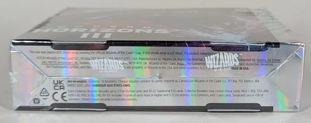 Item : The box pictured is the box you will receive. It is Factory Sealed. Product Description: Modern Horizons 3 brings a heaping helping of exciting new cards to Modern, one of Magic's most celebrated formats. Whether your players haven't picked up a set in a while or are card-slinging veterans, there's something for everyone to love. Collector Boosters bring the heat your players have been waiting for! Known as the shortcut to the coolest cards in the set, each Collector Booster is packed with foils and special treatments that are sure to add flair to any player's favorite deck. A full display of Collector Boosters helps players strategize in style. Contents: 12 Modern Horizons 3 Collector Boosters 15 Magic: The Gathering cards Up to 2 Foil-Etched cards 10-12 Traditional Foil cards 5 cards rarity Rare or higher 3-5 Uncommon cards 4-6 Common cards 1 Land card Serialized card in <1% of boosters