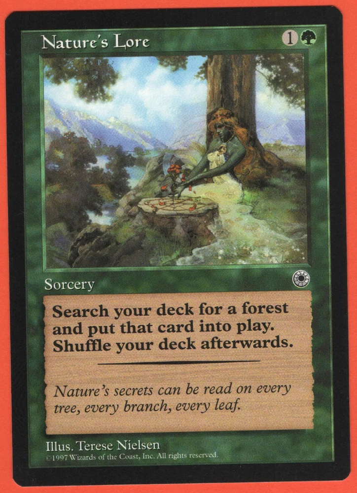 ONE NATURE'S LORE FROM THE MAGIC: THE GATHERING EXPANSION SET PORTAL . THIS CARD IS IN NM/M CONDITION. EXCELLENT SHAPE - SEE SCANS TO JUDGE THE CONDITION FOR YOURSELF. SCANS ARE OF ACTUAL CARD LISTED - NO STOCK PHOTOS . FREE SHIPPING VIA USPS ANY QUESTIONS, JUST ASK PLEASE SEE MY OTHER LISTINGS
