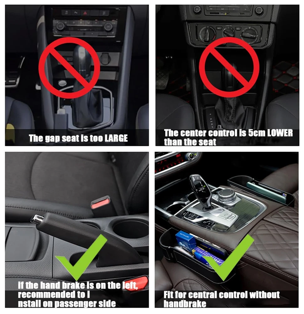 MTGOCHA Car Seat Gap Filler Organizer Adjustable Leather Cup Holder Gap Bag, Car Seat Gap Storage Box, Car Organizer Between Seats for Phone,Glasses,Keys,Cards(Driver Side,Black) Product Details Color: Black,Driver Side Size: 1 Pack Brand: MTGOCHA MPN: SeatGap-Filler-AD UPC: Does not apply EAN: Does not apply Specific Uses For Product: Automobiles Material: Faux Leather, Acrylonitrile Butadiene Styrene Special Feature: Adjustable Color: Black,Driver Side Brand: MTGOCHA Finish Type: 着色 Product Dimensions: 10.04"D x 2.95"W x 6.5"H Number of Compartments: 1 Number of Items: 1 Manufacturer: MTGOCHA Specific Uses For Product: ‎Automobiles Material: ‎Faux Leather, Acrylonitrile Butadiene Styrene Special Feature: ‎Adjustable Color: ‎Black,Driver Side Brand: ‎MTGOCHA Finish Type: ‎着色 Product Dimensions: ‎10.04"D x 2.95"W x 6.5"H Number of Compartments: ‎1 Number of Items: ‎1 Manufacturer: ‎MTGOCHA Model: ‎SeatGap-Filler-AD Country of Origin: ‎China Item model number: ‎SeatGap-Filler-AD Manufacturer Part Number: ‎SeatGap-Filler-AD Special Features: ‎Adjustable Date First Available: September 20, 2024 Adjustable Cup Holder The cup holder of the car seat pocket features an adjustable design, making it suitable for cups with a diameter of 2.3-3.9 inches (6-10cm). The frame of the front seat car storage organizer is made of ABS plastic and wrapped in PU leather, making it stable, sturdy, and stylish. It will not wear down the leather of your seat thanks to its velvet material pads that can prevent items from sliding and rattling. Stop Dropping & Driving Safety The car seat side gap filler can effectively prevent small items from falling into the gaps between the seats, eliminating the trouble of searching for things under the seat and ensuring driving safety. Say Goodbye to Mess Keep your car organized and clutter-free with this auto seat gap filler and never worry about lost or misplaced items again! Keep your phone, keys, coins, cards, wallets, driver's license, and other small items organized and readily available. Size & Notes This car seat storage box is not suitable for car seat gaps wider than 0.8 inches (2cm) and for central consoles lower than the seat. The size of the car insert for between seats is 10.03 x 6.49 x 2.95 inches (25.5 x 16.5 x 7.5 cm), making it suitable for most vehicles. Please measure the distance between your seat and the console carefully before you purchase. Move with The Seat This car pocket for between seats gap filler can follow the power seat as it moves back and forth and will not fall deep into the gap due to seat movement. It does not affect the normal use of the seat and seat belt either. Buy with Confidence & Must-Have Car AccessoriesWe offer a 1-year warranty. Please feel free to purchase. If you are not satisfied with your purchase, please email us directly. We'll respond promptly!