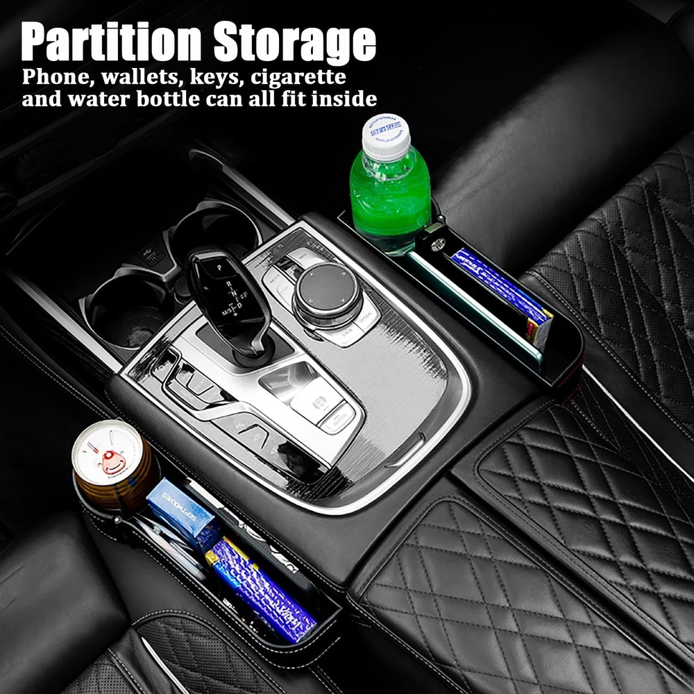 MTGOCHA Adjustable Leather Car Seat Gap Organizer with Cup Holder Storage
