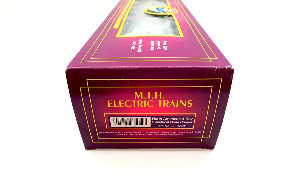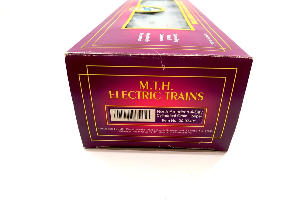 MTH 20-97401 NORTH AMERICAN 4 Bay Cylindrical Grain Hopper O Scale 3 Rail w/ Box This eBay listing is for a MTH Electric Trains model 20-97401 NORTH AMERICAN 4 Bay Cylindrical Grain Hopper Train Car that comes as you see pictured in the listing and noted above. The auction house called this train car new per the cosigners estate and I found this train car still inside plastic so I do believe that this one is new in the box. NOTE: I tore the end flap on the box by accident when I was opening up the box to take the pictures of the train car inside. Please see the picture in the listing where I'm showing this in more detail. Seller Location Reference - Toy Rows BID IN CONFIDENCE – CHECK MY FEEDBACK! My goal is your satisfaction. I leave positive feedback right after the payment is received for all orders!! If you plan to leave anything less than positive feedback and 5 stars - please let me know so that I can work out any problems that you may have. I aim to please!! SHIPPING & HANDLING FOR US BIDDERS We ship ASAP upon payment as noted above within 1 business day 99% of the time!! We normally pack up your new treasures 2 - 3 times a day and ship using USPS and Fedex Ground so that you get your items in a timely fashion. As always - there is no charge for local pickup on any of my items!! SHIPPING AND HANDLING FOR INTERNATIONAL BIDDERS Import duties, taxes and charges are not included in the item price or shipping charges. These charges are the buyer’s responsibility. Please check with your country’s customs office to determine what these additional costs will be prior to bidding/buying.” THANK YOU AND HAVE A WONDERFUL DAY!! Powered by SixBit's eCommerce Solution