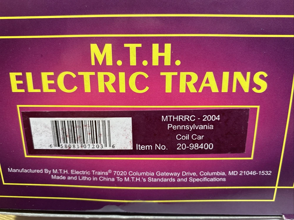 MTH PREMIER MTHRRC 2004 #387004 PENNSYLVANIA RR COIL CAR O GAUGE 3 RAIL 20-98400 NEW! IN ORIGINAL BOX.. SHIPPING BOX INCLUDED. CLUB CAR!! WILL BE PACKED TO ENSURE SAFE DELIVERY WITH DOUBLE BOXING! Winning US bidder receives FREE SHIPPING USPS Priority UPS FedEx!! Canada Priority shipping is available . All other countries please email for a mailing quote. Thanks for looking! I ship everyday!!!