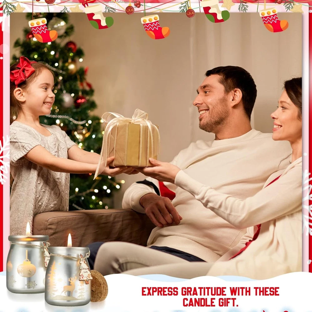 MTLEE 8 Pcs Christmas Scented Candles Gift Set frosted yellow, clear Product Details Product Dimensions : 2.68 x 2.68 x 3.46 inches; 5.03 Pounds Item model number : MTLEE-fri-240823a Manufacturer : MTLEE Brand: MTLEE Color: frosted yellow, frosted clear Product Dimensions: 2.68"W x 3.46"H Number of Items: 8 Scent: lavender, rose, sea salt, grapefruit, bergamot, hyacinth, freesia, wild bluebell Indoor/Outdoor Usage: Indoor Specific Uses For Product: Home Fragrance Shape: Cylindrical Material: soy wax and cotton candle wicks Container Material: Glass Enough Quantity: you will receive 8 Christmas scented candles in 2 different styles, ideal for everyday use, weddings, events, aromatherapy, mood lighting, atmosphere lighting, and Christmas holiday decorations; Each candle is 3.5 ounces and burns for about 35 hours Quality Material: crafted from soy wax and featuring cotton candle wicks, our Christmas scented candles ensure a clean and even burn; This combination not only enhances the candle's longevity but also minimizes soot, making it a healthier choice for your home Reusable Packaging: the Christmas soy candles come in reusable glass bottles after they have burned down, you can repurpose the stylish containers for storage or as decorative pieces, making them a practical choice; You can add them to your home decorations, or use them to store small items Attractive Design: encased in frosted yellow and frosted clear bottles, these Xmas aromatherapy candles feature charming patterns of Christmas trees snowflakes, and elk; Their aesthetic appeal makes them a lovely addition to your holiday decoration, enhancing the festive spirit of the room Ideal Gift Set: the package is an ideal gift set for friends and family; Whether for holiday celebrations or as a token of appreciation, this collection is sure to bring joy and warmth to your loved ones during the festive season Features: Each Christmas candle offers a delightful blend of scents, including lavender, rose, sea salt, grapefruit, bergamot, hyacinth, freesia, and wild bluebell. These fragrances create a warm, inviting ambiance that complements your Christmas celebrations, filling your space with holiday cheer. Each Holiday candle weighs 3.5 ounces and burns for approximately 35 hours, providing long lasting enjoyment throughout the holiday season. This ample burn time allows you to savor the scents during family gatherings or festive parties. Specifications: Material: soy wax and cotton candle wicksBottle color: frosted yellow, frosted clearBottom diameter: about 2.68 inches/ 6.8 cmHeight without cork: about 3.46 inches/ 8.8 cmScents: lavender, rose, sea salt, grapefruit, bergamot, hyacinth, freesia, wild bluebellPackage includes: 8 x Christmas scented candlesNotes: Manual measurement, please allow slight errors on size. The color may exist a slight difference due to different screen displays. Burning may produce a pungent smell. Open flame may pose a risk of burns, please keep away from children.