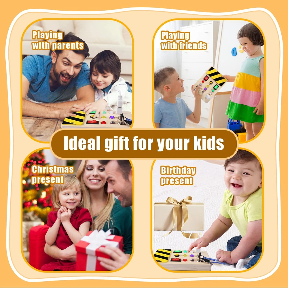 MTTIERY Montessori Busy Board for Toddlers with LED Light Up Switch, Boys Girls Birthday Sensory Toys for 3-13Year Olds 【Educational Learning Toys 】 This wooden busy board improves your child's dexterity, eye and hand coordination for fine motor skills and pure fun. It's a great Montessori toy for toddlers and a great learning and educational toy to replace screen time. 【 Toddler Montessori Busy Board 】This busy board is designed for toddlers who love switches and LED lights. This busy board is set with 10 different switches, each corresponding to a different color or style of LED light. The brightness of each LED is adjusted to be suitable for your baby, not too bright, too harsh or too dark to see.The board also comes with a mirror to keep your child occupied throughout the journey! 【High Quality Sensory Toys】 Our toddler fidget toys are made of eco-wood, the product has smooth edges and all the various buttons, switches and shifters are securely installed. The busy board is high quality and very sturdy. You don't have to worry about your baby breaking it, it is very safe for your child. The light is soft and won't hurt children's eyes 【Fit Size】This product measures 7*6*1 inches. This busy board for 3 year olds is suitable for different scenarios, such as at home, on the airplane, in the car, during travel. It's a perfect travel toy to keep your baby quiet and do their own thing. 【Ideal Perfect Gift】This Montessori busy board is the perfect birthday Christmas gift for your child. Toddlers can use this toddler busy board to identify different colors and sizes. Designed to turn the boring learning process into a creative and fun one. Please bring your own 2 x 7 batteries before use 【Educational Learning Toys 】 This wooden busy board improves your child's dexterity, eye and hand coordination for fine motor skills and pure fun. It's a great Montessori toy for toddlers and a great learning and educational toy to replace screen time. 【 Toddler Montessori Busy Board 】This busy board is designed for toddlers who love switches and LED lights. This busy board is set with 10 different switches, each corresponding to a different color or style of LED light. The brightness of each LED is adjusted to be suitable for your baby, not too bright, too harsh or too dark to see.The board also comes with a mirror to keep your child occupied throughout the journey! 【High Quality Sensory Toys】 Our toddler fidget toys are made of eco-wood, the product has smooth edges and all the various buttons, switches and shifters are securely installed. The busy board is high quality and very sturdy. You don't have to worry about your baby breaking it, it is very safe for your child. The light is soft and won't hurt children's eyes 【Fit Size】This product measures 7*6*1 inches. This busy board for 3 year olds is suitable for different scenarios, such as at home, on the airplane, in the car, during travel. It's a perfect travel toy to keep your baby quiet and do their own thing. 【Ideal Perfect Gift】This Montessori busy board is the perfect birthday Christmas gift for your child. Toddlers can use this toddler busy board to identify different colors and sizes. Designed to turn the boring learning process into a creative and fun one. Please bring your own 2 x 7 batteries before use Shipping from the USA All of our products are shipped from the USA, ensuring quick delivery to your destination. Payment We offer the following payment methods: PayPal, credit card, bank transfer, and eBay's secure payment system. Free Shipping & Free Returns Shipping within the USA is FREE. Additionally, any return is absolutely free for you. Risk-Free Purchase You have the option to return an item within 30 days without any justification. We cover the return shipping costs! Fast Shipping We ship immediately upon receipt of payment. Generally, the package is delivered within 2-3 days in the USA. If it takes longer, we will contact you. Quality and Costs Made in Europe, USA, China No customs fees or additional charges Total satisfaction guarantee Invoice with declared VAT available upon request in .pdf format Feedback Your feedback is very important to us. After you pay for your purchase, you will automatically receive positive feedback from us.