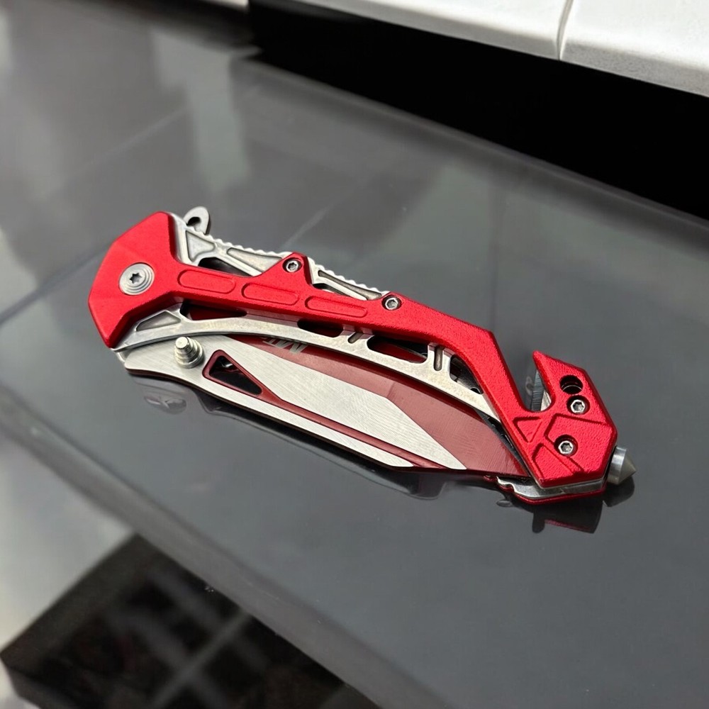 Turn heads while staying prepared with this striking MTech USA folding knife . Built for performance and designed with flair, this bold red and silver blade is the perfect mix of tactical function and standout style. πͺ Blade Style: Two-tone tanto blade β designed for piercing and precise slicing with a rugged look π§· Deployment: Smooth one-handed open with thumb stud and flipper tab π οΈ Built-in Features: Glass breaker tip for emergencies Seatbelt cutter for rescue applications ποΈ Handle: Lightweight skeletal frame with red anodized aluminum overlays β strong, grippy, and futuristic π Pocket Clip: Convenient deep-carry clip for easy transport Whether you're a first responder, outdoor adventurer, or knife collector, this MTech tactical folder is built to perform and built to impress. π¦ Ships brand new and securely packaged π A great gift for EDC enthusiasts, tactical gear fans, or anyone who appreciates a bold knife design Note: Buyer must be 18 years or older. Always follow local knife laws when purchasing.