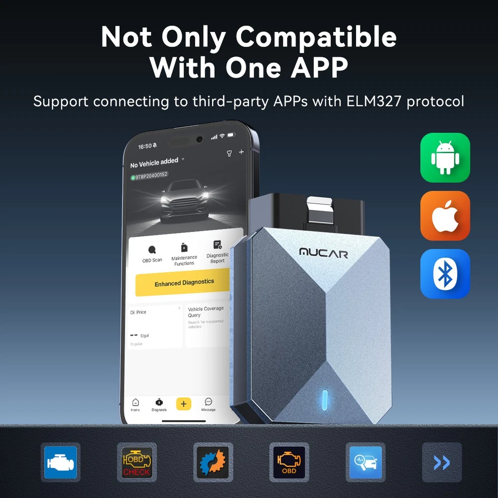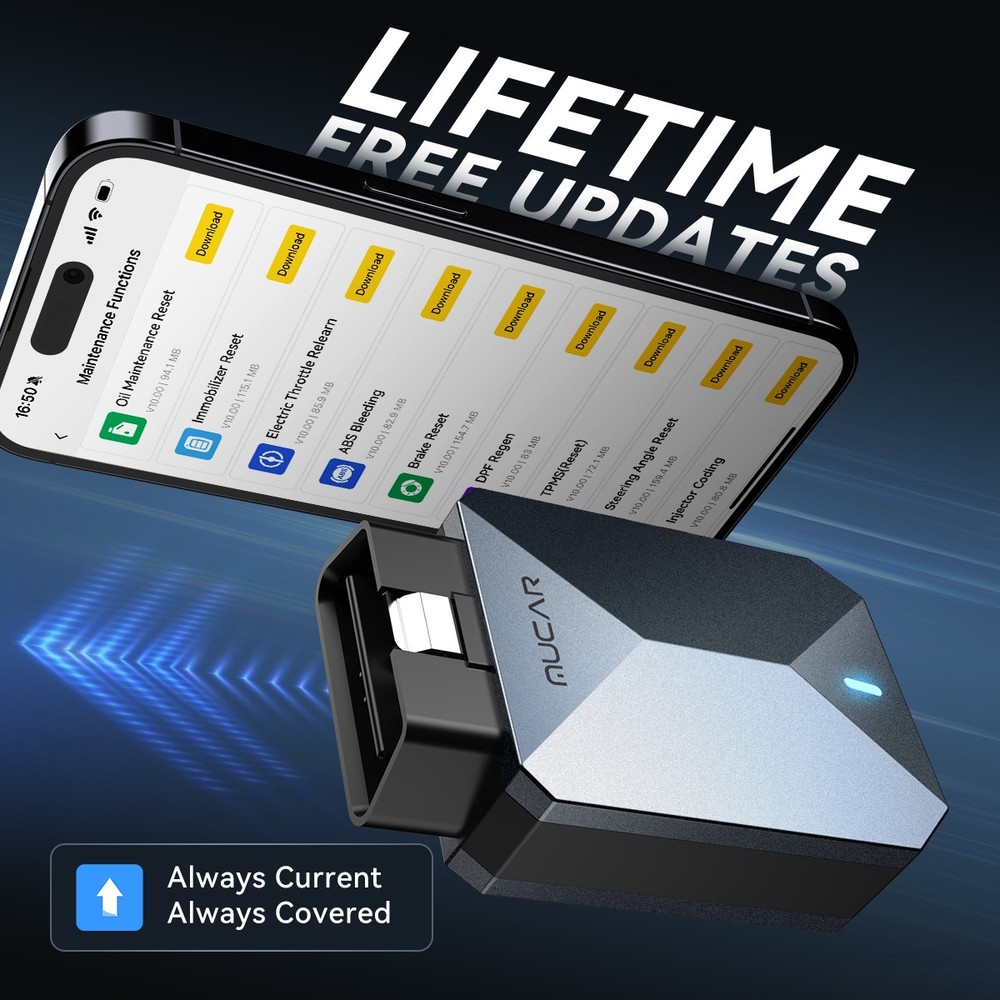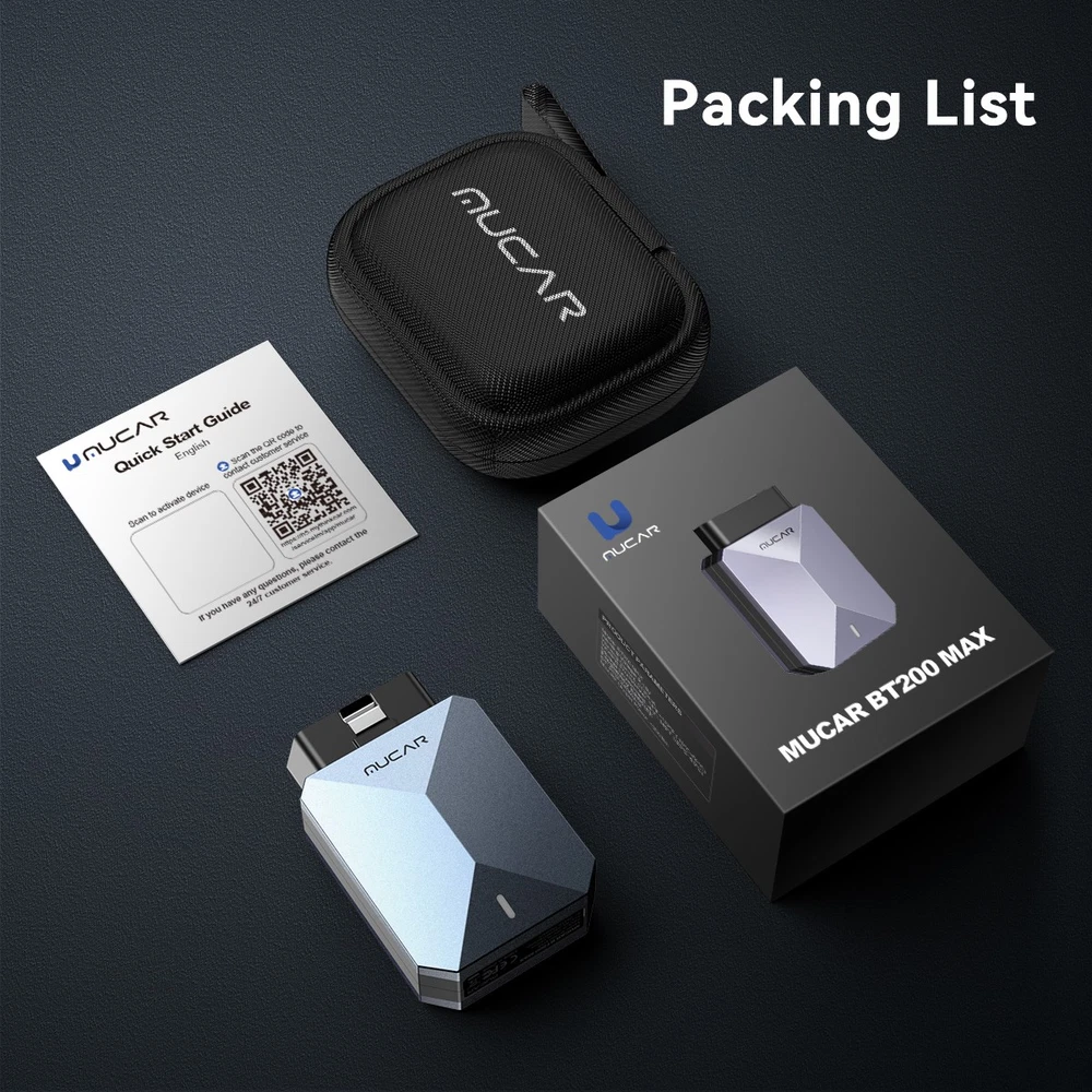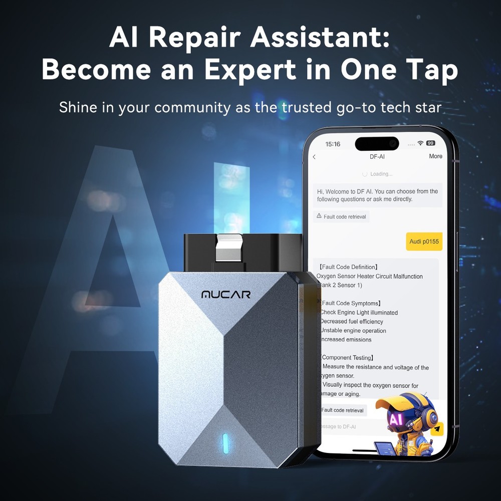 What are the advantages of the MUCAR BT200 MAX OBD2 diagnostic tool? 【MUCAR BT200 MAX Code Scanner 2025, latest version – more new features】 Wireless Bluetooth OBD2 scanner diagnostic tool, suitable for most US, European, and Asian vehicles manufactured between 1996 and 2025 that comply with the OBDII standard. 🏆 Lifetime free updates. Version updates are free, so customers can save even more. 🏆 User-friendly Android 5.0+, iOS 13.0+ 🏆 Bluetooth 5.2 version for fast wireless BT diagnostics 🏆 Active Test/Bi-directional 🏆 Fault code repair guide for quick problem solving 🏆 Convenient access, TSB technical bulletins support 15 maintenance functions. This auto code reader is more efficient, smarter, and more professional, offering more value for your money. 🏆 AI-powered diagnostics: ①Automated analysis and generation of diagnostic reports. ② Complete diagnosis and analysis of vehicle faults. ③ Supported by cognitive intelligence. 👍 Supports all system diagnostics and full OBD2 functions for all cars: The MUCAR BT200 MAX OBD2 scanner supports reading the fault code, clear code, data stream, and freeze frame of all vehicle systems (including ENG, ABS, SRS, ABS, AFS, EBD, TCS, chassis, body, and electrical and electronic equipment systems, etc.). It can also execute all commands a mechanic needs to determine the product problem, regardless of whether it is caused by electrical wiring or car components. 👍 Fast Bluetooth pairing in seconds: MUCAR BT200 MAX uses an improved 5.2 Bluetooth system for faster connection, eliminating the hassle of cables. With the scanner tool, you can turn your iOS/Android device into an auto diagnostic scanner and start your DIY diagnostic journey. The Bluetooth pairing process must be completed in the application (APP: Dollarfix-App ). 👍 MUCAR BT200 MAX Auto Code Reader supports 15 reset functions : Oil reset service, EPB service, BAT battery service, DPF service, SAS service, TPMS service, IMMO key reset, ABS bleeding, sunroof reset, suspension reset, transmission reset, AFS headlight reset, injector coding, throttle adjustment, gear learning. AI-powered diagnosis Based on the cutting-edge DeepSeek LLM, DF-AI is more than just a general AI assistant. As an intelligent technology platform with deep integration of domain-specific expertise, it provides multidimensional, highly accurate, industry-level technical support—enabling you to go from novice to repair expert with just one click. ①Automated analysis and generation of diagnostic reports: Intelligent analysis and extraction of core data from user-generated diagnostic reports. Delivers structured, technically sound, and comprehensive diagnostic analysis reports that significantly improve information processing efficiency and decision-making. ② Comprehensive automotive fault diagnosis and analysis: Provides root cause analysis, multidimensional repair guides, circuit diagnosis modules, component testing modules, deep data fusion analysis, and decision support for parts replacement. ③ Cognitive intelligence support: Utilizes the generalization capabilities of LLM to provide efficient, accurate cognitive support and information refinement in various user scenarios, including workflow collaboration, knowledge inquiry, and learning/research. Serves as an intelligent cognitive assistant around the clock. All cars Lifetime free All 10 OBDII/EOBD mode functions: Supported models: Compatible with all models that support the OBD II protocol after 1996 Supporting agreement: ISO 14230-4 (KWP2000)/IOS 15765-4 (CAN)/ISO 9141-2 (IOS)/ISO14229 (UDS)/SAEJ 1850 (VPW&PWM)" Mode 1: Read live data stream Mode 2: Read freeze frame data Mode 3: Read DTCs (diagnostic trouble codes) Mode 4: Clear DTCs Mode 5: Oxygen sensor monitoring Mode 6: System monitoring Mode 7: Read pending DTCs Mode 8: Control operation of the on-board system Mode 9: Read vehicle information Mode 10: Request emission-related diagnostic trouble codes with permanent status after emission-related diagnostic information has been cleared/reset. Complete system diagnostics for all cars: Engine control system: This diagnostic tool reads error codes, finds the cause of the check engine light, and indicates the problems. This car scanner can show you the live data stream in a graph. Diagnose ABS system: Checks all ABS to retrieve DTCs, displays live data, and provides you with specific information about pending codes. Read SRS system: Detects existing problems to arrange for timely replacement or repair to ensure driving safety. Transmission system: This Bluetooth car diagnostic tool reads diagnostic codes from the transmission system and detects whether the speed and load of the car match the power output of its transmission. Tire pressure monitoring system: Identifies whether the ID information stored in the electronic control unit matches the ID of the tire pressure sensor to achieve communication and ensure vehicle safety. Supports active test/bidirectional control functions Bidirectional control enables active tests for accessing vehicle-specific subsystems and component tests. The tester issues commands to the control unit to activate the actuators and thus check the integrity of the system or components by reading out the control unit data or monitoring the actuator operation. Bidirectional monitoring of actuator operation allows you to check that the execution components are functioning properly. Supports 15 Maintenance Reset Services: 1. Oil Reset Service: This allows you to perform a reset to recalculate the engine oil life after an oil change. 2. EPB Service: This is essential for maintaining the safety and efficiency of the electronic braking system. 3. BAT Battery Service: This allows the diagnostic tool to assess the battery's state of charge, monitor quiescent current, register battery replacements, and activate the vehicle's sleep mode. 4. DPF Service: This is particularly useful for diesel particulate filter