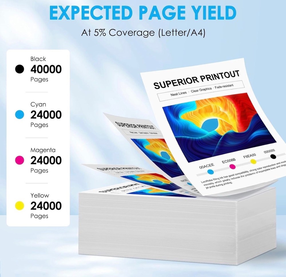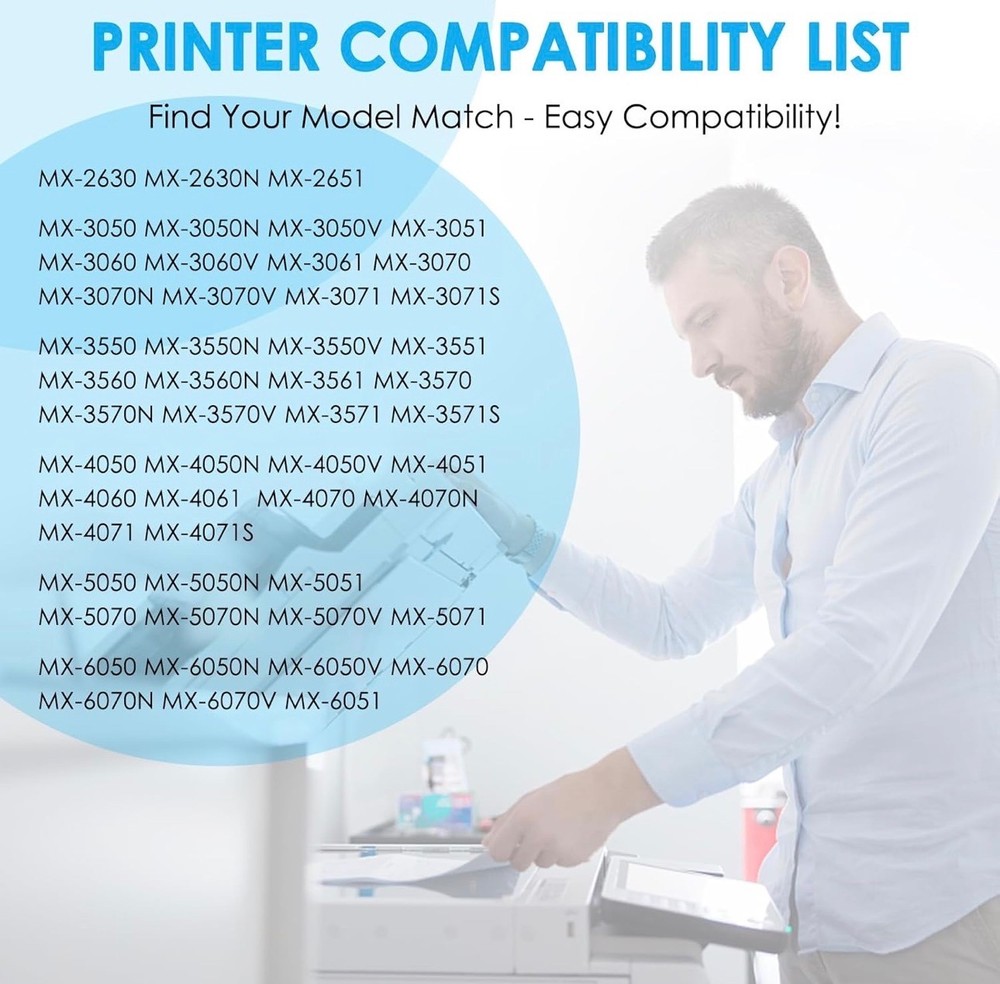 #3421 LeciRoba MX-61NT MX61NT Compatible Toner Cartridge for Sharp MX-61NT-BA MX-61NT-CA MX-61NT-MA MX-61NT-YA for Sharp MX3071 MX3070N MX3051 MX3050 MX2651 MX3570N MX2630 MX3550N MX3050 Printer (4-Pack) Brand LeciRoba Color MX61NTBA MX61NTCA MX61NTMA MX61NTYA Compatible Devices MX-2630 MX-2630N MX-2651 MX-3050 MX-3050N MX-3050V MX-3051 MX-3060 MX-3060V MX-3061 MX-3070 MX-3070N MX-3070V MX-3071 MX-3071S, MX-3550 MX-3550N MX-3550V MX-3551 MX-3560 MX-3560V MX-3561 MX-3570 MX-3570N MX-3570V MX-3571 MX-3571S MX-4050 MX-4050N MX-4050V MX-4051 MX-4060 MX-4061, MX-4070 MX-4070N MX-4071 MX-4071S MX-5050 MX-5050N MX-5051 MX-5070 MX-5070N MX-5070V MX-5071 MX-6050 MX-6050N MX-6050V MX-6070 MX-6070N MX-6070V MX-6051 Compatibility Options Compatible Special Feature Fade Resistant Page Yield 40000 Model Name: Replacement for Sharp MX-61NT MX61NT Toner Cartridge Set (MX-61NTBA MX-61NTCA MX-61NTMA MX-61NTYA, Black Cyan Magenta Yellow) Compatible Printers: Works seamlessly with Sharp MX-2630/2630N/2651/3050/3050N/3050V/3051/3060/3060V/3061/3070/3070N/3070V/3071/3071S/3550/3550N/3550V/3551/3560/3560V/3561/3570/3570N/3570V/3571/3571S, MX-4050/4050N/4050V/4051/4060/4061/4070/4070N/4071/4071S, MX-5050/5050N/5051/5070/5070N/5070V/5071, MX-6050/6050N/6050V/6070/6070N/6070V/6051 printers Commercial-Grade Build & High Yield: Built with durable, office-grade components for stable performance in busy environments. Each cartridge supports up to 40,000 pages per Black, 24,000 pages per Cyan Magenta Yellow (at 5% A4 coverage), ideal for high-volume printing. Package Contents: 1 x Black MX61NTBA, 1 x Cyan MX61NTCA, 1 x Magenta MX61NTMA, 1 x Yellow MX61NTYA, 4 packs in total Purchase with Confidence: Every LeciRoba cartridge is rigorously tested to ensure crisp, consistent prints and full compatibility with your printer. We stand firmly behind our product. If you receive a defective cartridge, contact us for a free return or replacement under our warranty.