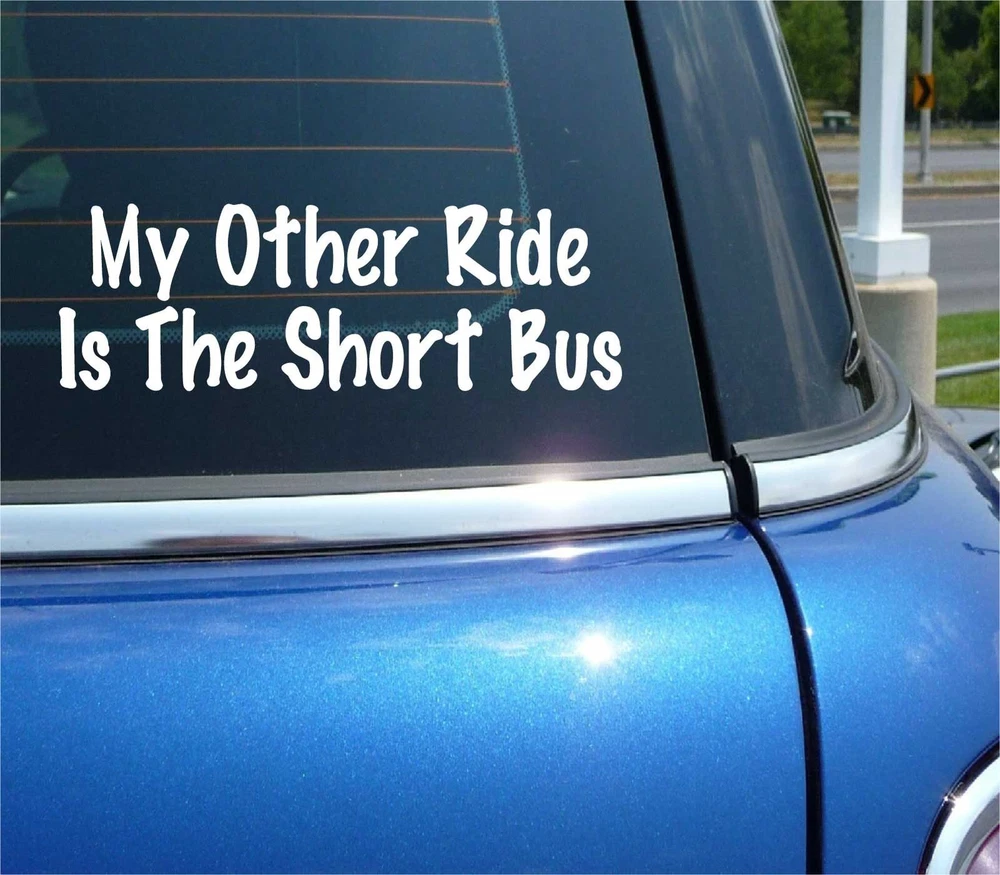 MY OTHER RIDE IS THE SHORT BUS DECAL STICKER FUNNY PRANK JOKE SCHOOL GAG CAR