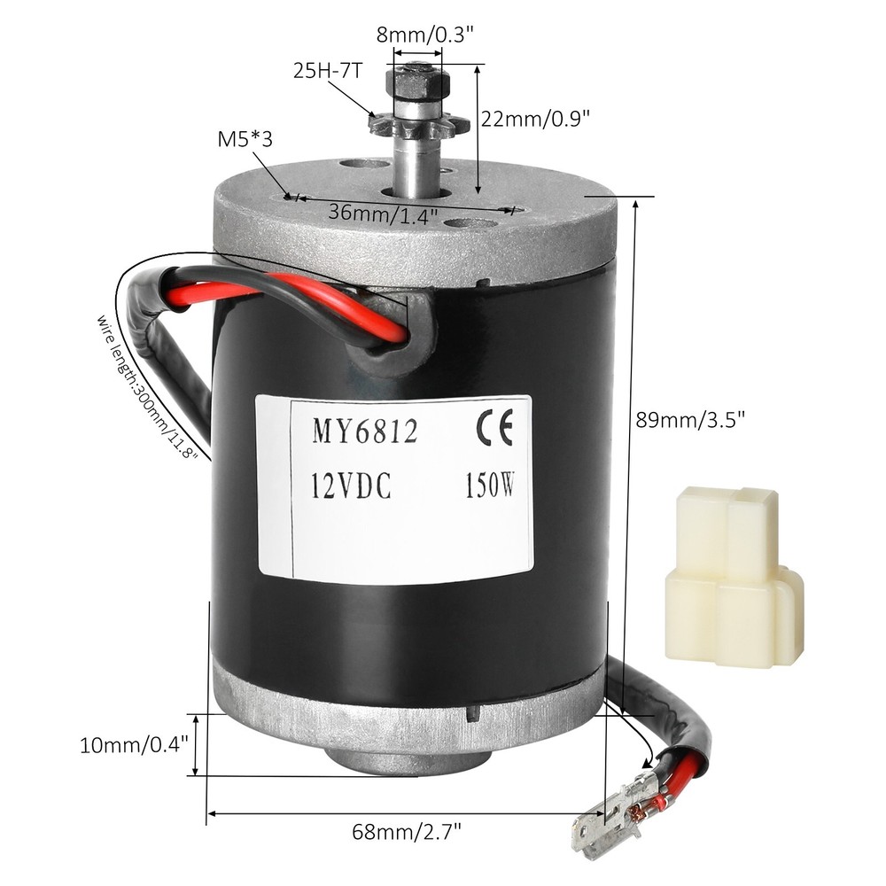 Fitment: Universal Fit F or Electric Scooter ,DIY Electric Bike , Electric Tricycle , Electric Motorcycle , Power Machinery , Etc. Product Specification: Product Type:Brush Motor Condition:100% Brand New & High Quality Main Color:Black Material:Aluminum Alloy Model:MY6812 Voltage:12V Output:150W Motor Sprocket: 25H 7 T Unload Current : ≤1.2/0.6 Unloaded Speed : 3350 RPM Rated Torque : 0.45 N.m Rated Current : ≤14.3/7.15 Efficiency:≥78 Features: v Heat Resistant and Low Noise:Electric brush DC motor with all copper coil,heat resistant,air cooling,low noise and longer life. v Basic Parameters:High speed electric gear motor kit's rated voltage:12V.Rated power:150W with metal pulley,sturdy and . v Aluminum Alloy:The electric scooter brushed motor kit is made of high grade aluminum alloy,high strength,resistant,stable and . v Universal:Electric scooter DC motor kit is suitable for DIY electric bike,electric tricycle,electric motorcycle,power machinery,etc. Packing List: 1 * MY6812 12 V 1 5 0W Brush Motor Note: ü Please check picture s and the size specifications for compatibility before purchasing .Also,please be aware that if an item doesn't fit due to a failure in pre-purchase checking, we are not be able to take responsibility for the return shipping cost. Model is just for reference , not definitely correct. Any question,welcome to contact us . ü If you have any problems with the received items, we kindly request that you reach out to us directly before considering leaving a neutral or negative feedback. We will strive to provide you with the best service. Thank you for your understanding and cooperation.Sincerely.