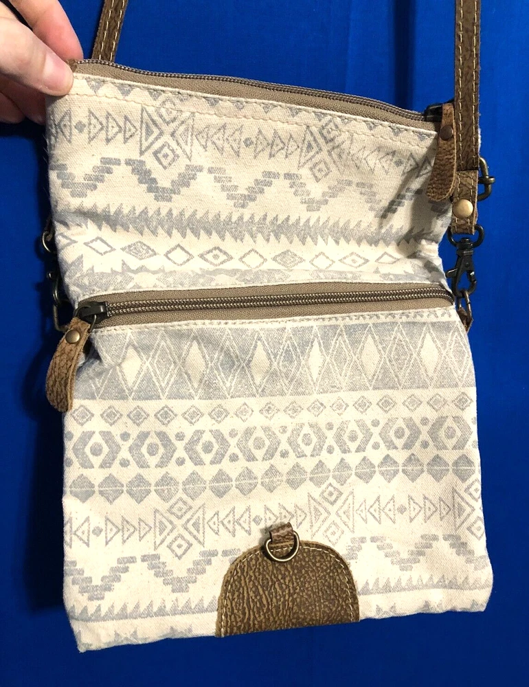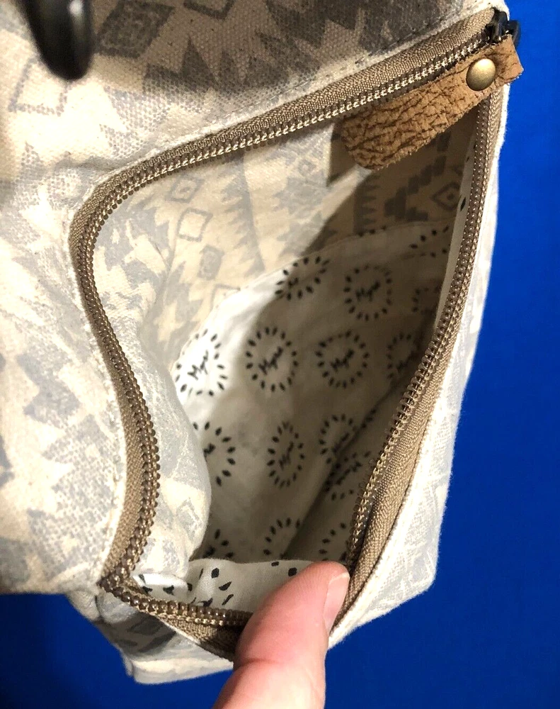 Measurements: 7.5" x 9". Drop length 30". Style S-1516 Outershell-100% cotton canvas. 100% leather. Innershell-100% cotton. Only used it once for vacation. In excellent condition.
