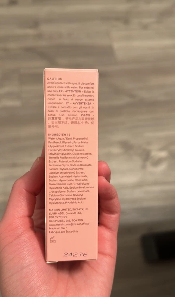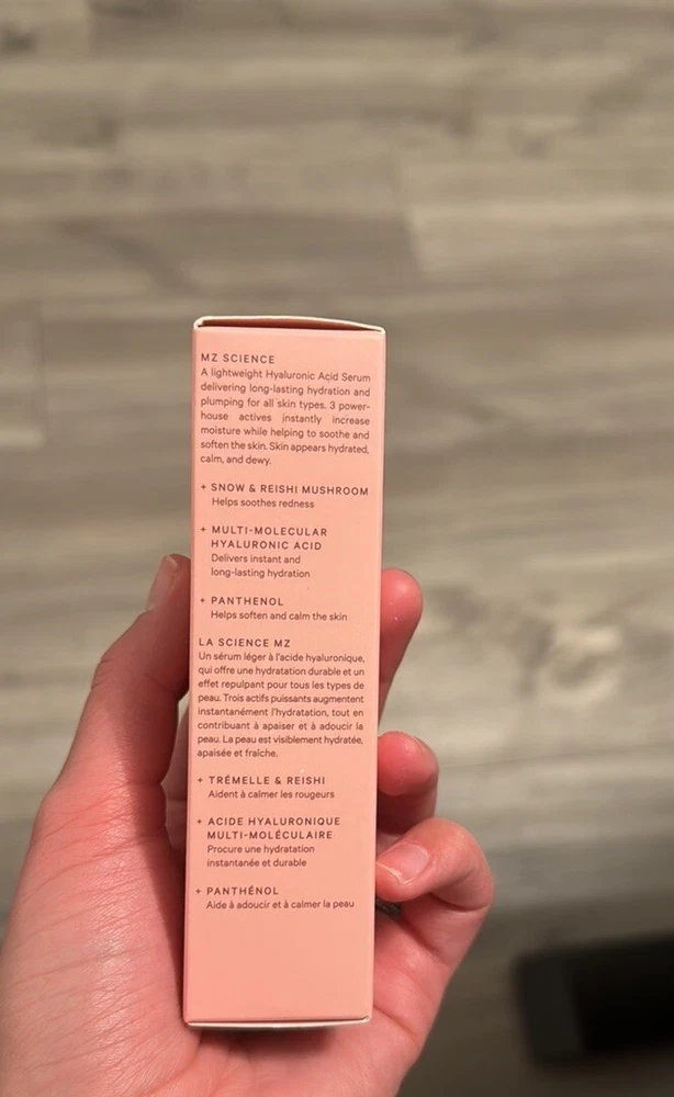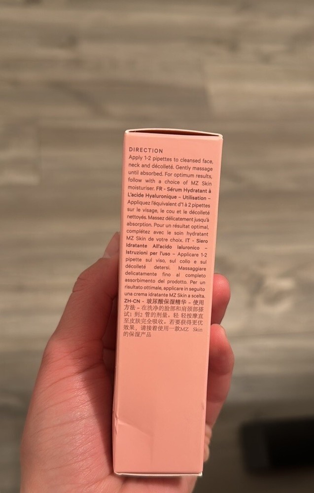 MZ SKIN Hyaluronic Acid Hydrating Serum 30 mI MSRP $175 NIB. What it Does This ultra-luxe, supercharged serum is a hydration hero, featuring five types of hyaluronic acid to quench thirsty skin. With snow and reishi mushrooms for anti-inflammatory benefits, it helps soothe redness and irritation while helping to reinforce your skin’s moisture barrier. How to Use it Gently massage one to two pipettes into your cleansed and damp face, neck, and décolleté.
