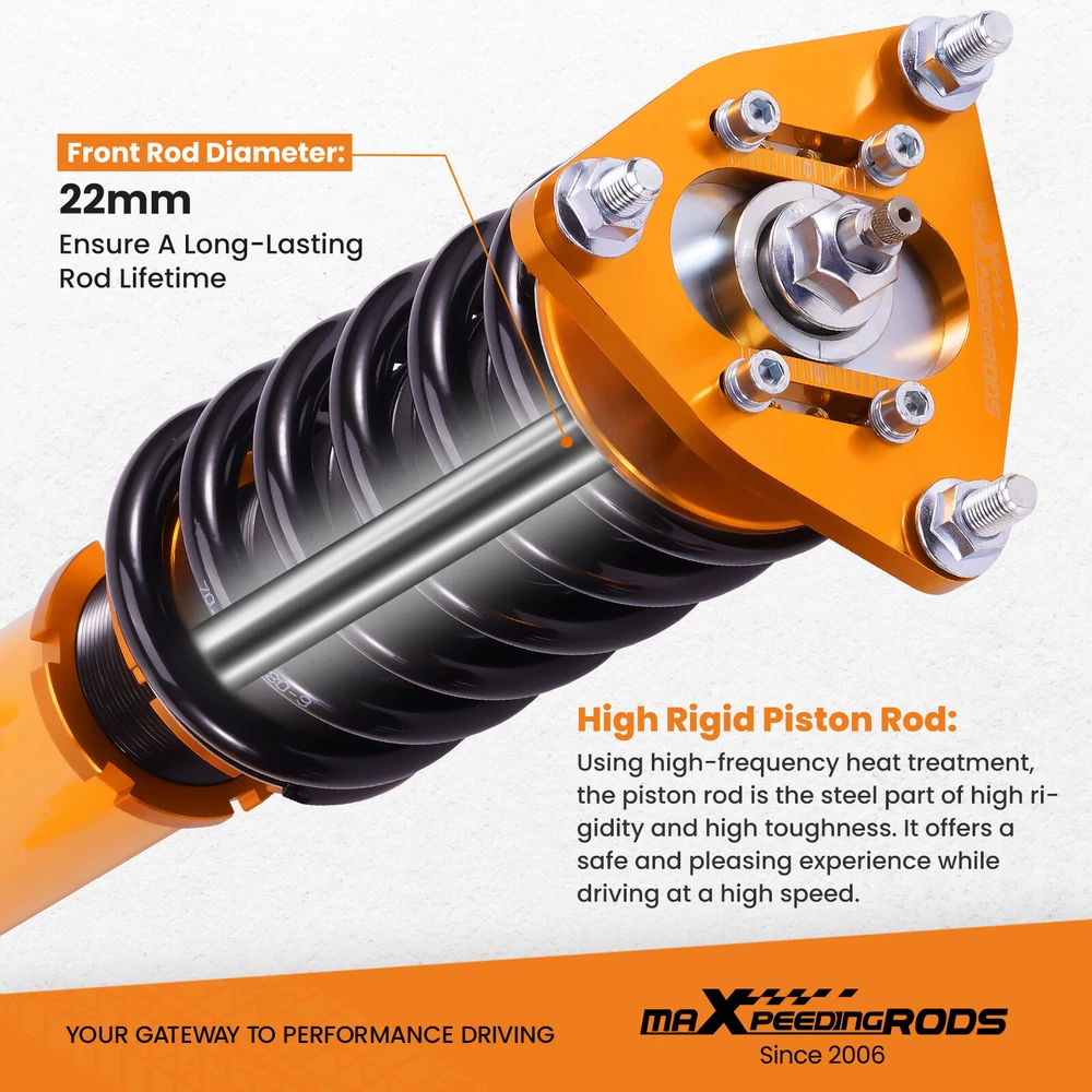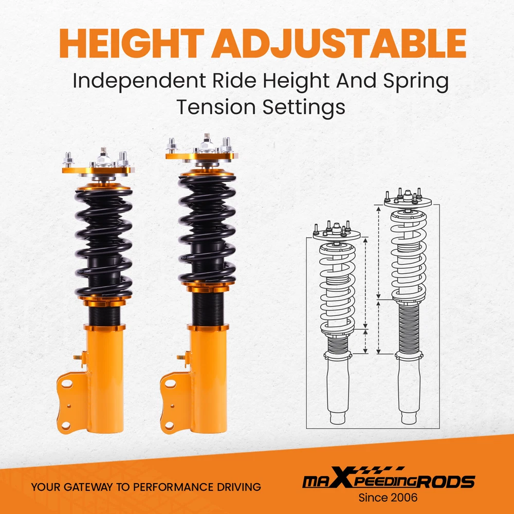 zjpss LOGO Home Contact us Promotion WHY CHOSE US Manufacturer We know our products Easy Return Quick, Simple Guaranteed Fitment Always the correct part PRODUCT DISPLAY MaXpeedingrods 24 Click Coilovers Suspension Shocks for Mitsubishi Lancer 08-16 Fast Shipping International Shipping 30 Days Return Policy Secure Shopping DESCRIPTION Maxpeedingrods' street coilovers are designed and developed for all motoring enthusiasts that want excellent handling without sacrificing comfort. This suspension system is ideal for daily driving and occasional, light track use. High quality components are adopted to ensure product durability and stability. Each application is fully test fitted and completely road tested to guarantee all our customers perfect performance and comfort expectations. Features 24 Clicks of Rebound Adjustments – With 24 clicks of rebound damping, you can now optimize your vehicle’s performance! With a wide setting capability, adapt from the roads, to off road, street or highways. Independent ride height adjustable – Easily adjust the height of your ride! This coilover also allows for height and preload adjustments. This means you can reach optimal suspension tuning while maintaining a stable, comfortable ride at all times. Advanced Twin-Tube Technology – The use of base valve enables to keep gas pressure low, allowing for a more comfortable ride. Low gas pressure avoids stress on seals and keeps friction low. Compared to the inverted type, friction can be suppressed. Applications For Mitsubishi Lancer (CX/CY) 2008-2016, except Lancer Evolution For Mitsubishi Outlander Sport (GA) 2011-2020 Specifications - Top mounts:pillow ball top mount front,standard rubber top mount rear. - Damping: 24 levels rebound damping adjustable - Front Spring Rate: 9kg/mm (504 lbs/in). - Rear Spring Rate: 6 kg/mm (336 in/lbs). - Adjustable Height: Yes lowering 1" to 3" - Shock type: Twin tube - Spring Preload: 7-10 mm - Color: Gold Package included 1 x Set of Coilover Spring Kit (2 Front + 2 Rear) 1 x Pair of wrenches for height adjustment ★ 30-day Money Back & 12-Month Replacement Guarantee. Please feel free to contact us if there is any question. 24 precise levels of damper adjustment; Pillow-Ball Top Mount Provides Sharp And Precise Handling; Independent ride height and spring preload adjustments; Lightweight aluminum shock body and 6061-T6 forged aluminum / carbon steel brackets; Twin-Cylinder Design - Allows Sufficient Stroke Within The Shock Absorber; 1 Year Warranty from Date of Purchase. SHIPPING US Domestic Shipping Notice - All items will be dispatched within 24hrs(Mon-Fri) Our carrier collects all the parcels at 4:30am PDT, any payment paid after 5:00am PDT will be shipped the next day at 4:30am PDT. If you paid Item Shipped On Est.Delivery Time Before Apr. 1st at 4:30am Apr. 1st at 5:00am Apr. 5th - Apr. 7th After Apr. 1st at 4:30am Apr. 2nd at 5:00am Apr. 6th - Apr. 8th If our estimated delivery time and eBay’s are contradictory,please refer to the standard delivery time of ours. Estimated Delivery Time From To Service Est.Delivery Time US US UPS or Fedex Ground 3-5 Business days Outside of US DHL FedEx 4-7 Business days Tracking number will be updated in 24 hours after shipment Please provide the following shipping information for your order Full physical address Telephone number Otherwise your shipment will be deferred. We are not responsible for any shipping lost caused by wrong shipping information Shipping rate If our ebay item listing doesn't show the shipping cost to your place. Please contact us to calculate the shipping fee for you. International Shipment For international shipment, we do not cover any import taxes or duties. Import tax is charged by the government, not us. Our item price and shipping cost do not include any import tax which will be charged by the shipping company when you got the parcel. Please be noted that is not the extra shipping fee. ` NO hidden charge!!! WARRANTY Free 2 Year Warranty: All AutoModPlanet products have 2 year warranty (unless otherwise stated). In the very unlikely event that you have a problem with our product, please contact us via eBay messages. Easy Return: If you are unhappy with your purchase for any reason, you can return it to us in an un-used condition in the original packaging within 30 days of purchase and we'll give you a refund or exchange. The refund/Exchange will not include postage/eBay costs. Please note you MUST contact us to obtain a Return Authorization Number before returning any part. Any parcel without the Return Authorization Number will be rejected. If your item is faulty or was incorrect, you must contact our sales representative before returning the parcel and we will endeavour to solve the problem effectively. Video or picture is required to show the item condition before we issue the Return Authorization Number. Important notice: 1. Any returned item(s) without Return authorization number will be rejected. 2. Please return your item(s) in original packaging and ensure that all packages are securely wrapped 3. We will not accept responsibility for loss or damage of goods during transit, please ensure that the insurance cover option is taken where possible 4. Upon receipt, all products will be inspected at our discretion in 3-5 business days. Then, the updated result will be informed. If you have made a mistake on purchase and wish to cancel the order before it is dispatched please contact us by ebay massages or email as quickly as possible. Note: All parcel will be collected by carrier at 8:00am on Monday to Friday. FAQ Will this fit my car? We have used the eBay compatibility list as a guide for buyers to use, but the eBay data system is not accurate and incomplete sometimes. Please make sure you have read through the whole listing and paid attention to “note” and “notice”. If there is any uncertain, please use the eBay message to check with our sales first. How much does delivery cost and how l