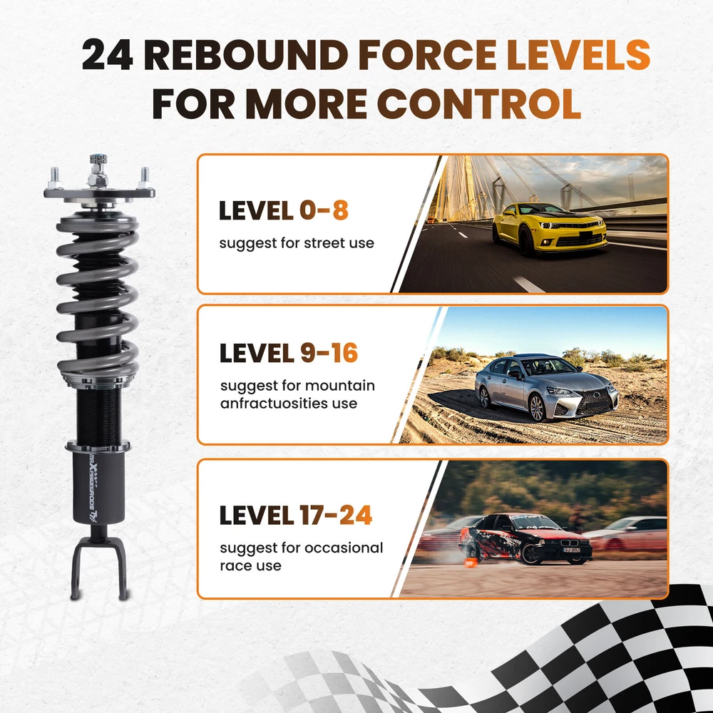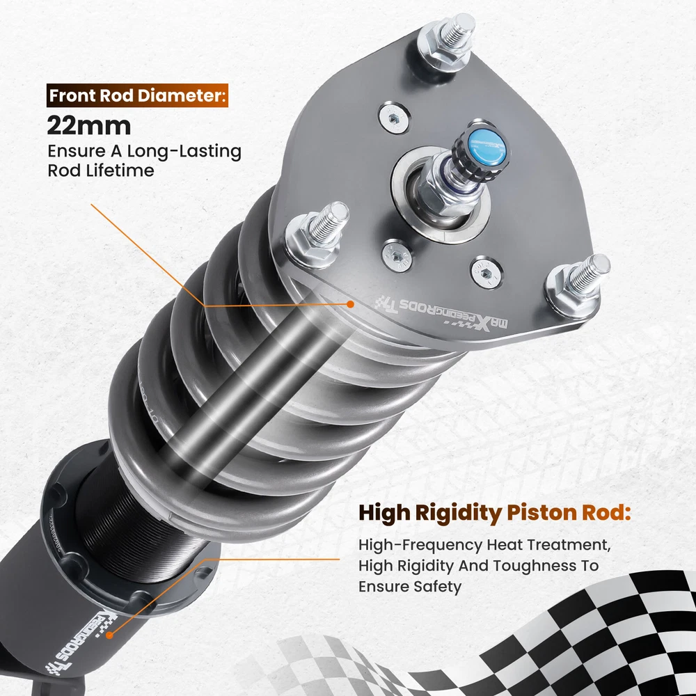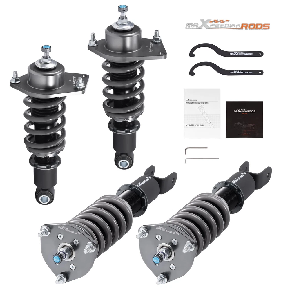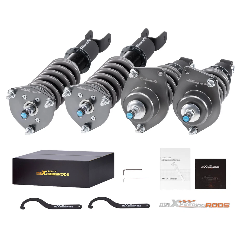 zjpss LOGO Home Contact us Promotion WHY CHOSE US Manufacturer We know our products Easy Return Quick, Simple Guaranteed Fitment Always the correct part PRODUCT DISPLAY MaXpeedingrods 24 Level Damper Coilovers Lowering Kit for Mazda RX-8 SE3P 04-11 Fast Shipping International Shipping 30 Days Return Policy Secure Shopping DESCRIPTION MaXpeedingrods T7 coil-overs are designed for daily street use and Junior track use. It features racing damping oil, an upgraded racing spring, height adjustable, and an adjustable camber plate( applicable for some vehicles), which offers you a lowered stance and enhanced handling. Features - Racing damping oil and spring rates set for occasional track use and daily street use. - Lowered height adjustment from 1" - 3" (depending on vehicle models) which adds a more aggressive stance and a lower center of gravity. - Adjustable pre-load spring tension reduces shaking motion. - 24 Clicks of Rebound Adjustments allow you to dial in your coil-overs system perfectly. - High Viscosity Index damper oil ---make damping more stable and smooth in wide temperature range. - High Rigidity 55CrSi Steel Cold-bent Coil Springs - CNC machined aluminum top mounts and lockers have excellent strength and save weight. - Highly durable and reliable heavy-duty steel lower mounts . - All inserts come with fitted long rubber boots to protect the damper and be durable. - Advanced Twin-Tube Technology provides excellent handling & control characteristics for most driving conditions - Anti-Corrosion finish anodized aluminum and powder-coated carbon steel parts with a matt-finished surface. - Every part was tested on our professional machine before being assembled and tested by our professional racers on the road. - Clean room assembled maintains a higher level of accuracy and reliability. Application For MAZDA RX-8 2003.04-2008.02 JPN SE3P BASE MODEL, TYPE E, TYPE S For MAZDA RX-8 2004-2008USA SE3P For MAZDA RX-8 2009-2011 USA SE3P Specification - Damping adjustable: Available, 24 levels of rebound damping force - Camber adjustable: Not available - Height adjustable: Yes, lowering 1-3 inches depending on the vehicle models - Spring Rate Front: 10kg/mm (560lbs/in) - Spring Rate Rear: 8kg/mm(448lbs/in) - Front spring inner diameter: 70.5mm - Rear spring inner diameter: 70.5mm - Spring length Front: 180mm - Spring length Rear: 140mm - Spring Preload advised: 7-10 mm - Color: Black body with grey spring Package included 2x front coil-overs 2x rear coil-overs 1x Allen wrench 2x C spanners ★ 30-day Money Back & 24-Month Replacement Guarantee. Please feel free to contact us if there is any question. Height Adjustable Lowering Kit; 24 Clicks of Rebound Damping Force Adjustment; Independent Ride Height And Spring Tension Settings; High Rigidity 55CrSi Steel Cold-bent Springs; Anodized Shock Body With Anti-Corrosion Coating; Top Pillow Ball Mount Provides More Precise Feel From Suspension And Steering; Full 2 Years Warranty From Date Of Purchase. SHIPPING US Domestic Shipping Notice - All items will be dispatched within 24hrs(Mon-Fri) Our carrier collects all the parcels at 4:30am PDT, any payment paid after 5:00am PDT will be shipped the next day at 4:30am PDT. If you paid Item Shipped On Est.Delivery Time Before Apr. 1st at 4:30am Apr. 1st at 5:00am Apr. 5th - Apr. 7th After Apr. 1st at 4:30am Apr. 2nd at 5:00am Apr. 6th - Apr. 8th If our estimated delivery time and eBay’s are contradictory,please refer to the standard delivery time of ours. Estimated Delivery Time From To Service Est.Delivery Time US US UPS or Fedex Ground 3-5 Business days Outside of US DHL FedEx 4-7 Business days Tracking number will be updated in 24 hours after shipment Please provide the following shipping information for your order Full physical address Telephone number Otherwise your shipment will be deferred. We are not responsible for any shipping lost caused by wrong shipping information Shipping rate If our ebay item listing doesn't show the shipping cost to your place. Please contact us to calculate the shipping fee for you. International Shipment For international shipment, we do not cover any import taxes or duties. Import tax is charged by the government, not us. Our item price and shipping cost do not include any import tax which will be charged by the shipping company when you got the parcel. Please be noted that is not the extra shipping fee. ` NO hidden charge!!! WARRANTY Free 2 Year Warranty: All AutoModPlanet products have 2 year warranty (unless otherwise stated). In the very unlikely event that you have a problem with our product, please contact us via eBay messages. Easy Return: If you are unhappy with your purchase for any reason, you can return it to us in an un-used condition in the original packaging within 30 days of purchase and we'll give you a refund or exchange. The refund/Exchange will not include postage/eBay costs. Please note you MUST contact us to obtain a Return Authorization Number before returning any part. Any parcel without the Return Authorization Number will be rejected. If your item is faulty or was incorrect, you must contact our sales representative before returning the parcel and we will endeavour to solve the problem effectively. Video or picture is required to show the item condition before we issue the Return Authorization Number. Important notice: 1. Any returned item(s) without Return authorization number will be rejected. 2. Please return your item(s) in original packaging and ensure that all packages are securely wrapped 3. We will not accept responsibility for loss or damage of goods during transit, please ensure that the insurance cover option is taken where possible 4. Upon receipt, all products will be inspected at our discretion in 3-5 business days. Then, the updated result will be informed. If you have made a mistake on purchase and wish to cancel the order before it is dispatched please contact us by ebay massages or email as quickly as possible. Note: All parc