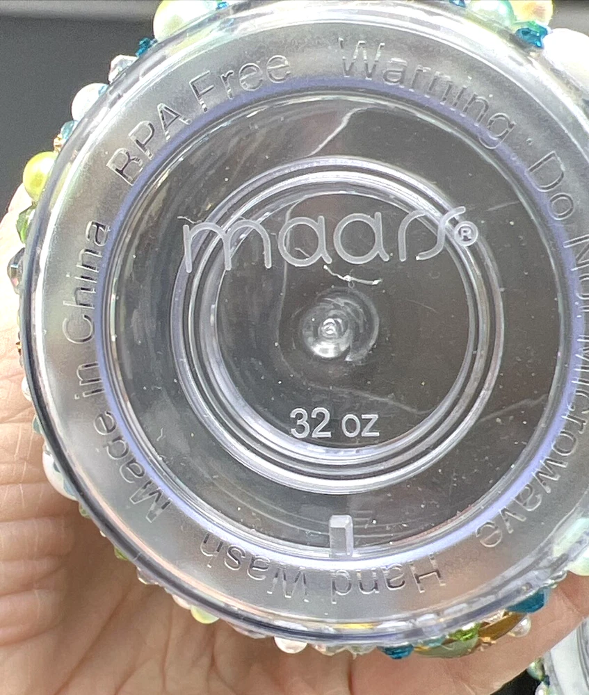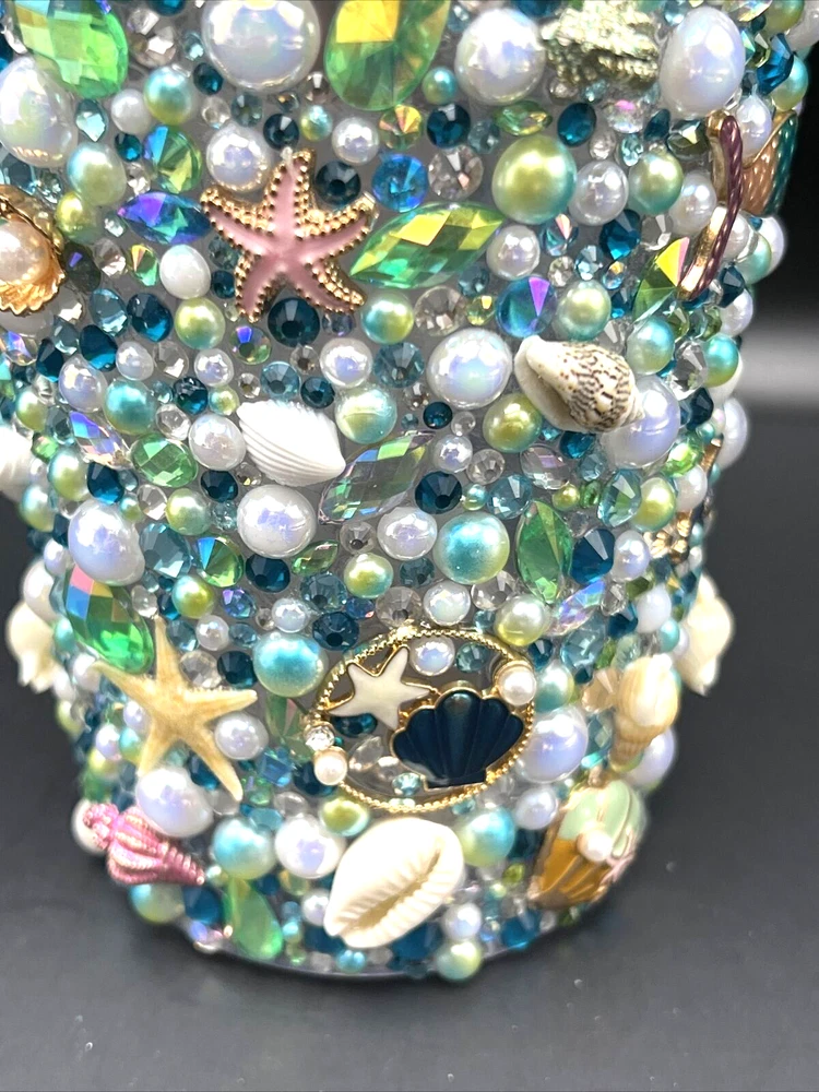 This 32 oz. Maars Drinkware Insulated Travel Tumbler is perfect for people on the go who want to take their favorite hot or cold beverage with them. The tumbler comes with a twist lid that helps keep the drink safe and secure. The sea things pearls and rhinestones pattern is perfect for those who love underwater sea characters. Measuring approximately 9 inches in height and about 5 inches wide, this tumbler is made of acrylic material that is durable and long-lasting. This tumbler is perfect for people who love to travel and want to stay hydrated while on the go. Each piece was hand placed on this Tumbler and is stunning to look at . Would make a great gift for a sea lover . The Octopus is a stand out on this piece . I will pack with care and get it to you ASAP Thanks for looking !