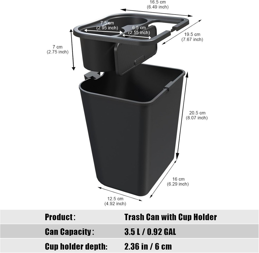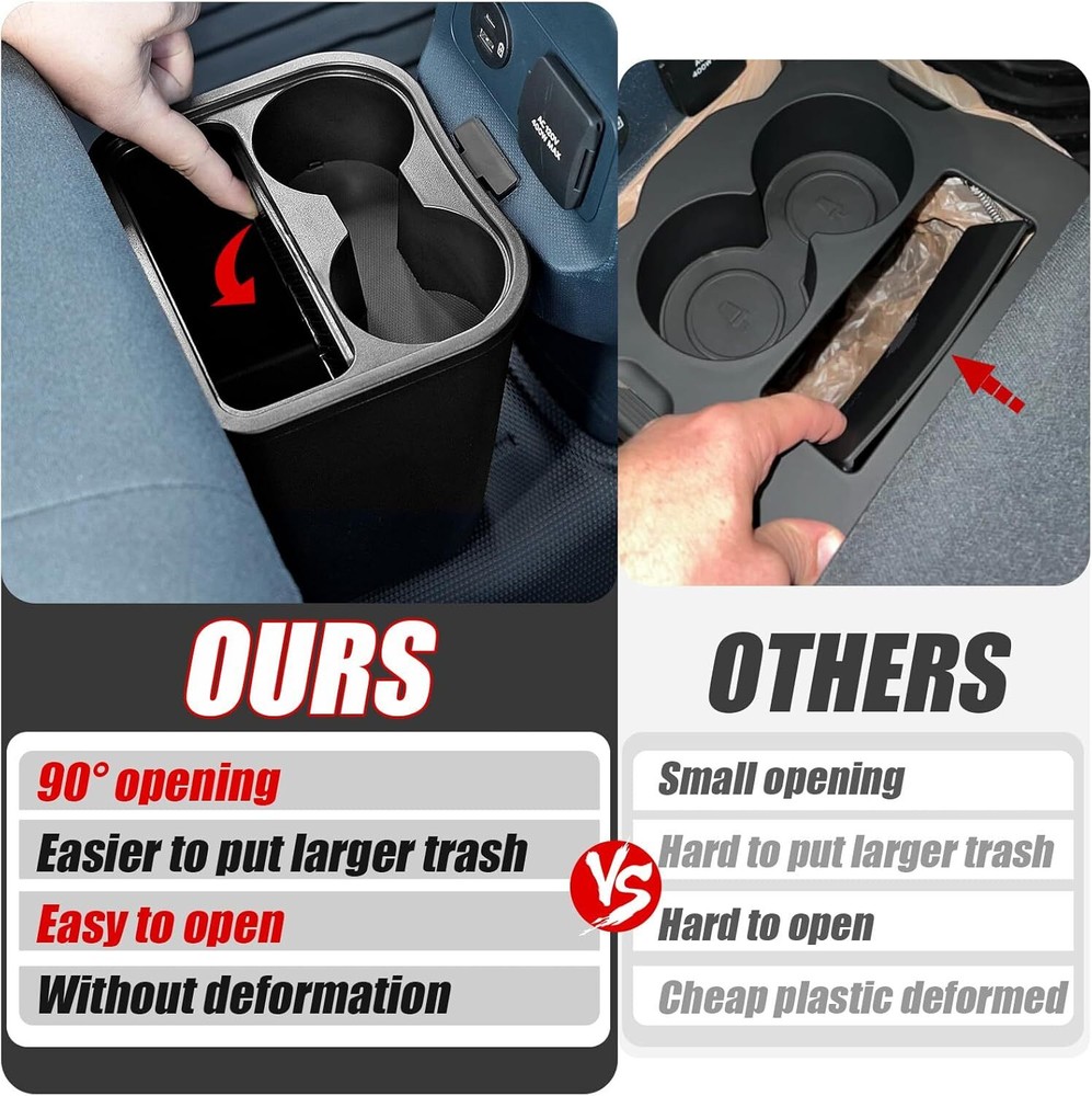 Mabett Trash Can for Ford Maverick 2025 2024 2023 2022, Multi-Function Maverick Accessories, Trash Bin with Cup Holder, Extra Rear Storage Box About this item Fitment: For 2022-2025 Maverick owners, it is an accessory that meets the daily needs of the family, can't have too many cup holders Consider More: Considering the actual needs, Mabett trash bin opening can be fully opened, easier to put larger trash. With an automatic rebound flip lid that insulates against odors and avoids spills Practical Design: There is a gap between two holders, allowing two large-diameter cups used at the same time Sleek Appearance: Crafted from ABS material, seamlessly blends with the overall Maverick interior, looks stock and not like something that was just thrown into the truck Easy Installation: Use ingenious buckles snap in and out, fixed on the back of the armrest box, ensuring the bin's stability. Proper fit prevents scrap wear on the console and seat, no need to worry about dumping or flopping around.