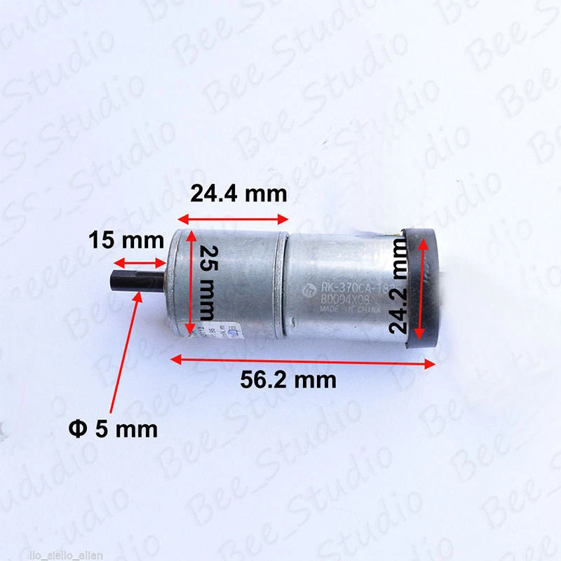 Welcome to Motorhouse You may also like, welcome use "add to cart to buy" Description Specification: The surface of the motor has been oxidized,but don't affect its operation. WIK25GA370 gear motor,the reduction motor torque is large, the motor is from Mabuchi, the product is the metal structure with the wire.the motor appearance is not very good but the performance is excellent. Parameter: Rated Voltage: DC12V No-load speed: 92rpm Reduction ratio: 1:86 No-load Current: about 100mA Stall Current: about 1.5A Torque: 300mN.m Overall length: 56.2mm (Gear box 24.4mm) Gear box Diameter: 25mm Motor diameter: 24.2mm Shaft length: about 13mm Cable length: about 107mm(not include the Black head) Shaft diameter: 5mm(shaft cutting edge about 3.9mm) Motor weight: about 100g Package Include: Motor x 1 Payment We only accept payment via Paypal. The buyer is responsible for any applicable import duties and local taxes. Usually there's no any charges for small parcel. But please verify with your customs before making your purchase. Delivery details The items will be shipped within 1~2 working days after your payment is received and cleared.(excluding Saturday, Sunday & Holiday) All items will be shipped to your Paypal address, so please make sure to provide us with the correct, precise, detailed shipping address. The Delivered time to USA buyer is about 7~20 days, other country about 15~35 days delivered. Notes: pls contact us if you need need trackable or express shipping service. Terms of sales All the items will be tested before shipping. Buy them with the confidence! We maintain the excellent service standards and strive for 100% customer satisfaction and Positive feedback. If you have any problem, please do feel free to contact us before leave Neutral or Negative feedback, so that we can satisfactorily address your concerns. Return We afford all cost if it's our fault. Exchange or refund. If not our problem, the buyer should be responsible for the shipping fee. Contact us We strive to provide you with the best service, reply your question within 24 hours. Business time: 9:30~21:30 (GMT+8) exclude the weekend and holidays. Contact us