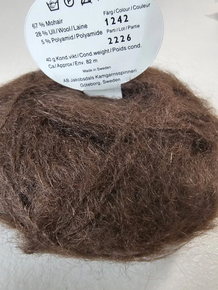 One 40 g brown Mac Mohair yarn made in Italy. Approximately 82 M. 67% Mohair 28% Wool 5% Polyamid Returns accepted within 30 days in same condition as purchased. Buyer pays return shipping. Shipping USPS ground