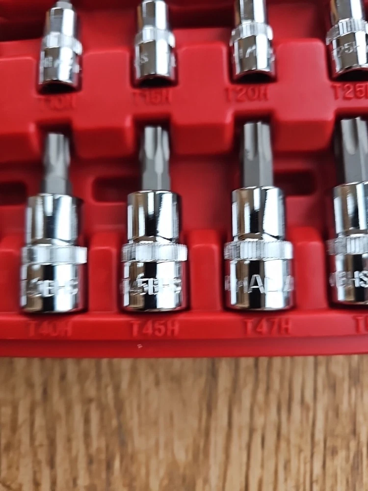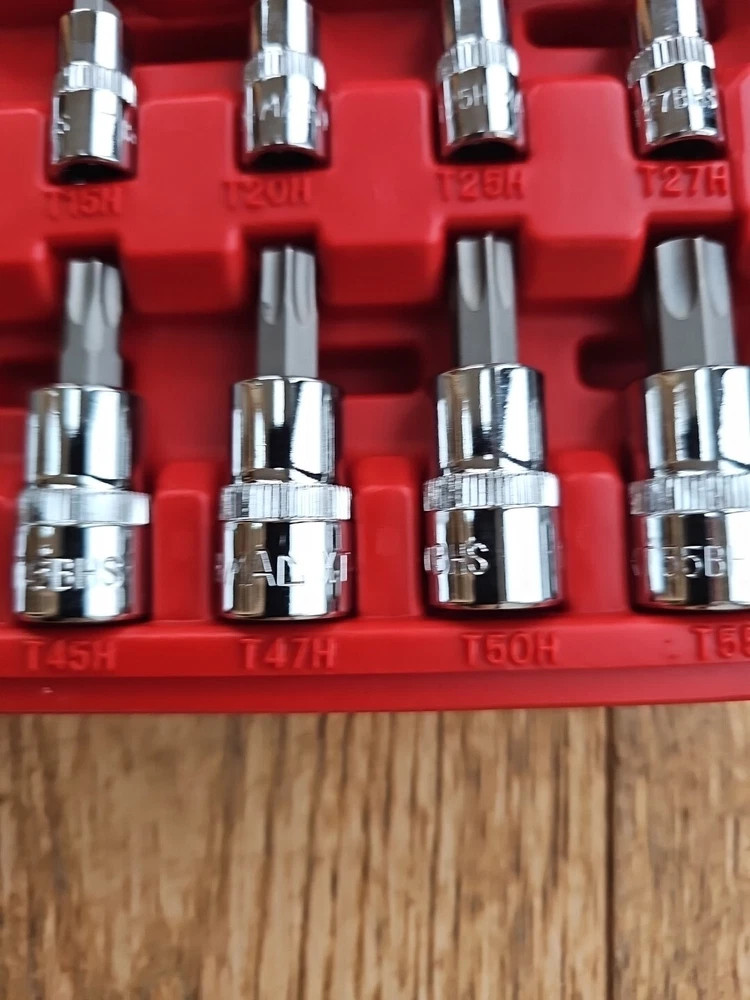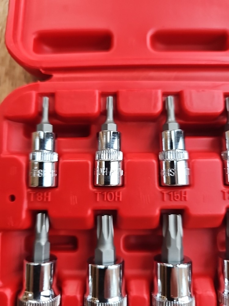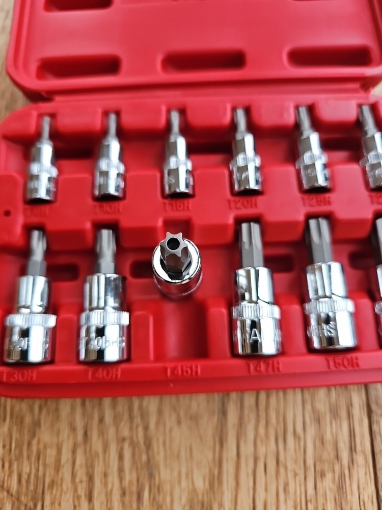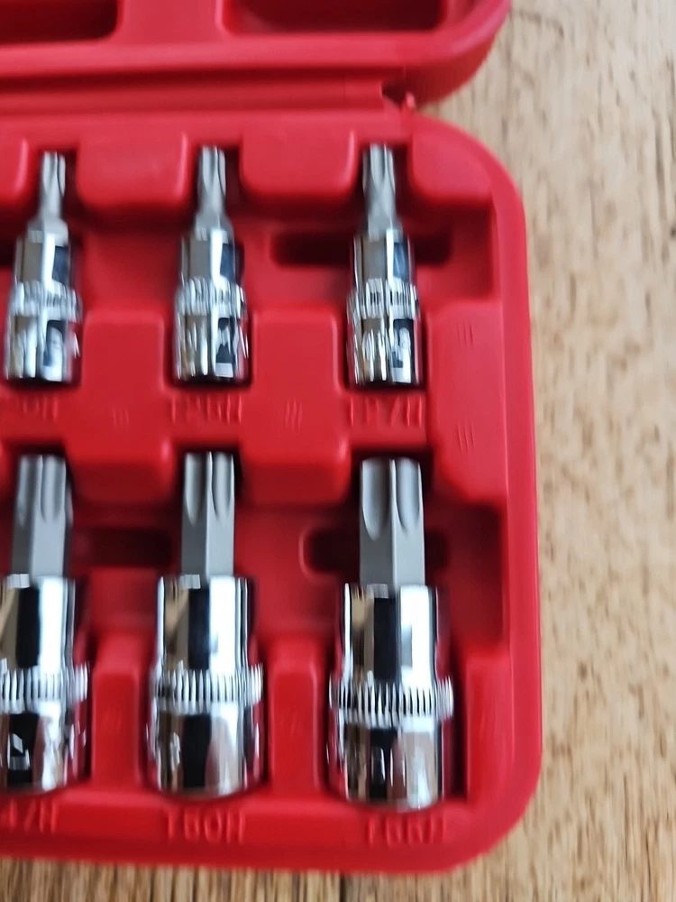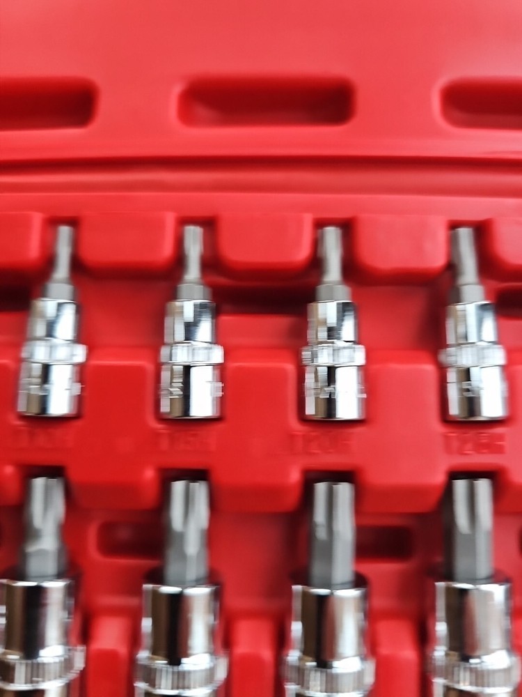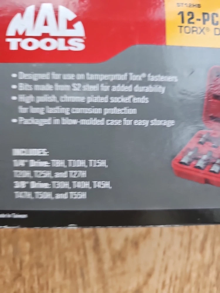This Mac Tools 12-piece socket set is perfect for any mechanic or DIY enthusiast. The set includes sockets of various sizes, including 1/4" and 3/8", with the hole in torx and is made with a durable chrome finish. The set is tamperproof and comes with a specialty system of measurement, of being used for tamperproof torx making it easy to use and store. The set is manufactured in Taiwan and includes a Torx drive type. It is a great addition to any garage equipment and tools collection. This set is perfect for those who need a reliable and efficient socket set for their automotive needs.