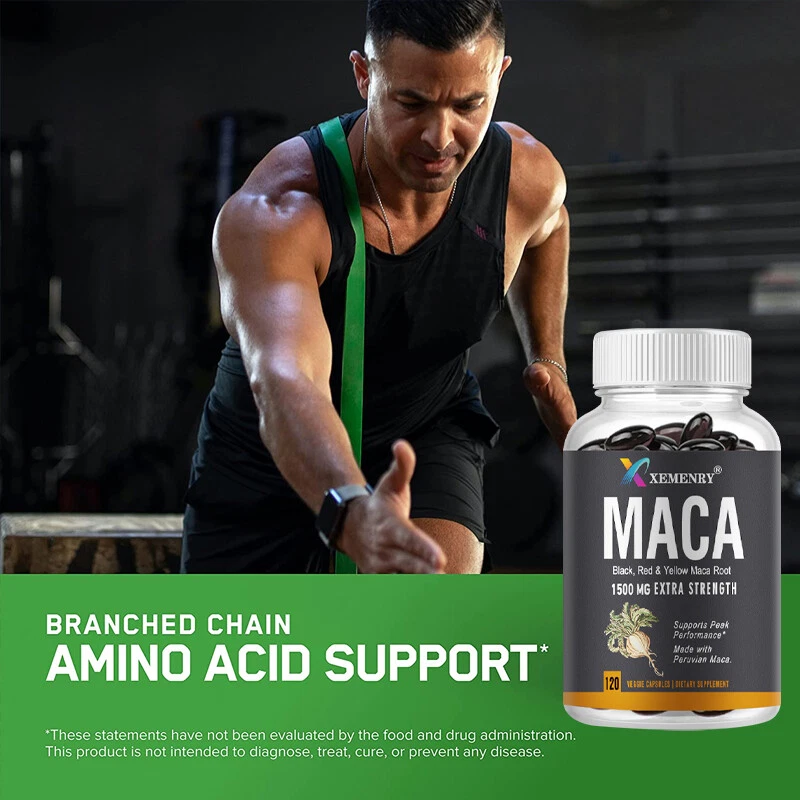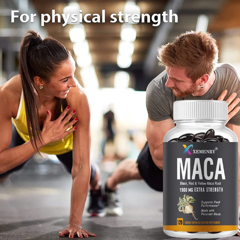 Effects: Energy & Endurance, Men's Health Ingredients: Maca Root, Black Pepper Directions: Take 2 capsules once daily after a meal. Shipping: Ships within 48 hours on working days. Shelf life: 2 years Description: PREMIUM QUALITY MACA ROOT SUPPLEMENT - Our Triple Strength 1500 mg Maca Root Capsules provide a pure, potent dose. Made from red, yellow, and black maca roots from the Peruvian Andes, they are traditionally used to support peak performance, strength, and endurance. SUPERFOOD - Maca root is a plant-based superfood that helps balance hormone levels, boost energy, and promote overall well-being. Perfect for athletes, weekend warriors, and anyone who wants to stay physically active. HIGH QUALITY - Our maca is made from organic maca root that goes through a process called gelatinization, which utilizes heat and water to make our maca easier to digest. Our maca capsules do not contain gluten, milk, soy, tree nuts, peanuts, or wheat. Document
