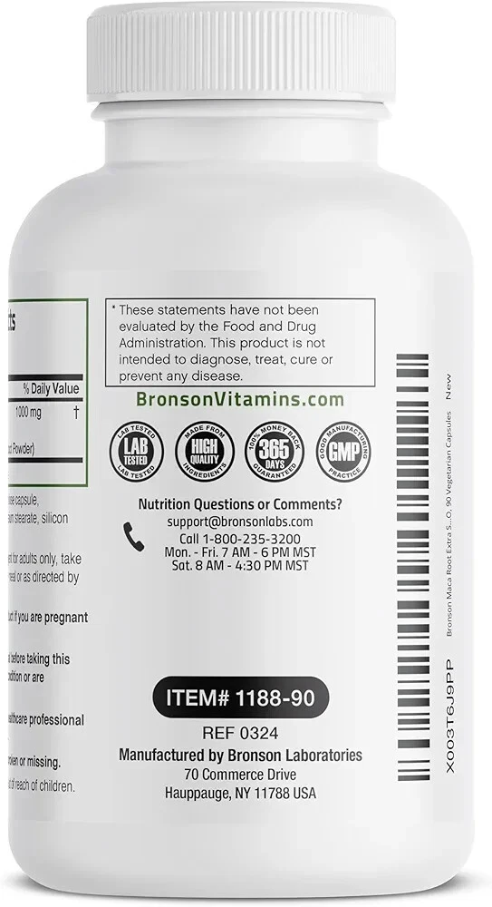 Item Weight:3.06ozIngredients:Black MacaBrand:UnbrandedMPN:N/AFlavor:NeturalType of Diet:VeganSupply:1 Month and LongerActive Ingredients:Black Maca, Selenium, Black PepperWhen to Take:AfternoonUPC:Does not applyShelf Life:2 yearsNumber of Pills:30/60/120Formulation:CapsuleMain Purpose:Men's Health, Energy & Endurance, Testosteron Boostergtin13:Does not applyProduction Date:02/2024Volume:N/AStorage:Keep in a cool, dry place and please sealingFDA Registration Number:12397111146Features:All Natural, Gluten-Free, Organic, Non-GMOCountry/Region of Manufacture:UnknownType:SupplementExpiration Date:02/2026Dosage:1000 mgDepartment:Men