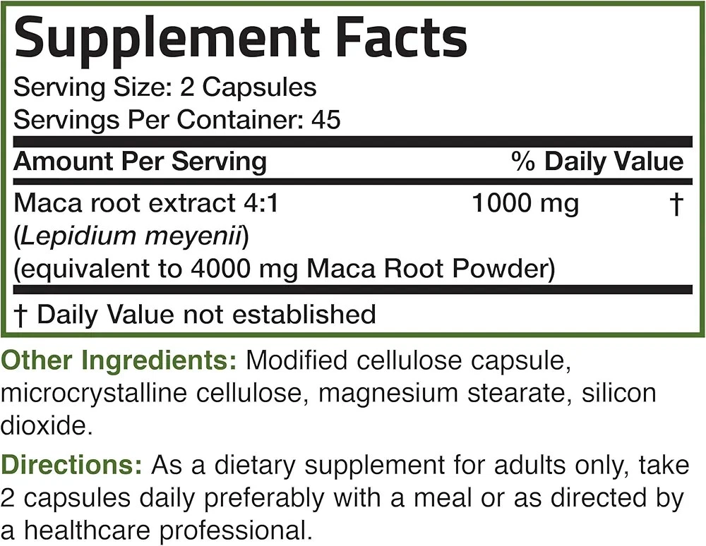 Maca Root Veg Capsules, Peruvian Maca for Men & Women 90 Caps