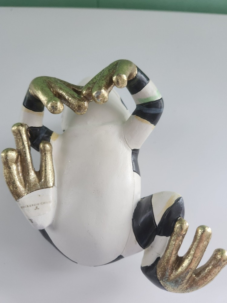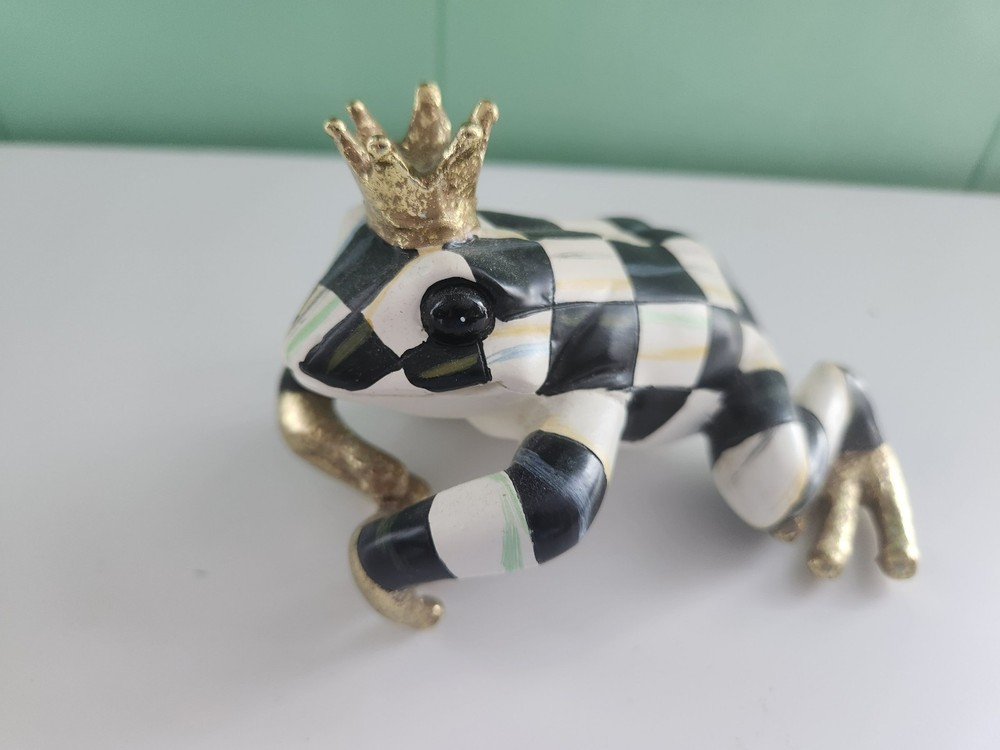 Mackenzie Childs Pot Climber Frog Crown Prince Croaker Courtly Check Design. A great addition to your Mackenzie Childs collection. Shipping via USPS Ground Advantage or Priority Mail - buyers choice. Purchases made Sunday through Thursday will be shipped next day. Friday and Saturday purchases ship on Monday.