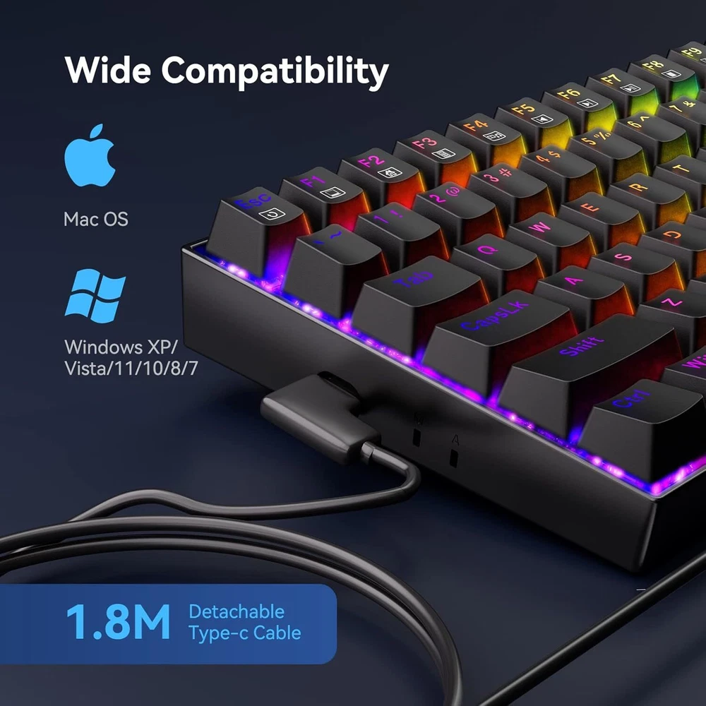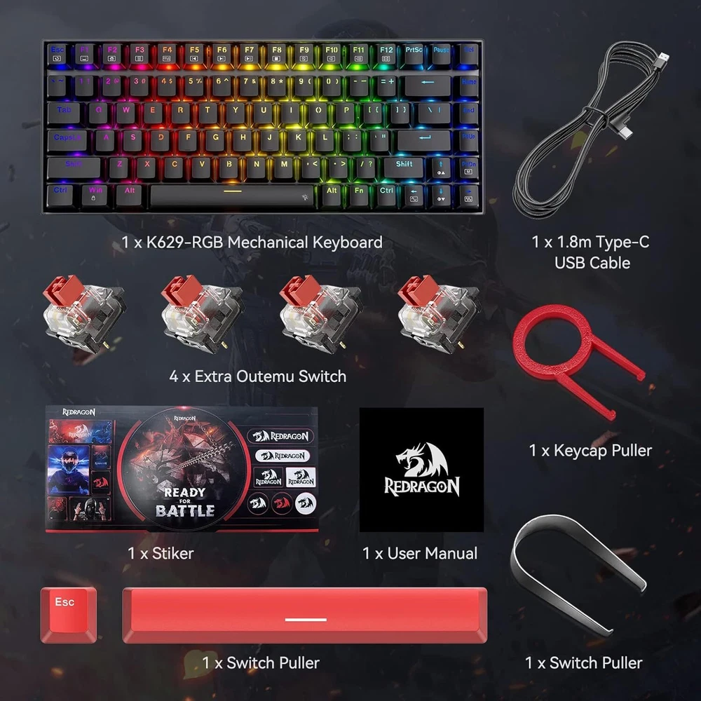 Product Description Mechanical Keyboard, Full RGB 75% Gaming Keyboard with Red Switches, Macro Editor Wired Keyboard 84 Keys for Windows Mac PC Laptop Tablet, K629-RGB đă84 KEY GAMING KEYBOARDăRedefine TKL, The innovative 75 percent keyboard unique layout, cuts more clumsy space off, support practical arrow, multimedia, and control keys.Classic red Switch offering linear feedback, quiet click sound fast action, require less force to press down and the keys feel smoother. It's best choose for gaming and typing đăFULL RGB KEYBOARDăPC gaming keyboards has 20 different RGB lighting effects, 5 self-define backlight group, 4 backlight brightness levels, breathing speed, and 16.8 million colors to light up your gaming world. You can also turn off the lights. âĄăFULLY PROGRAMMABLEă This Hot-swappable mechanical keyboard supports DIY Software, macro editing, Customizable key assignment, keybinding and backlight setting, Hot-swappable allows you to replace 3 pins switches freely without soldering issue. Enjoy the fun of making your own unique keyboard. â¨ăTECLADO MECANICO K629-RGB ă 75% Compact Ergonomic Designed Computer Keyboard for ultimate Gaming performance. 12 Multimedia keys, arrow keys, Double-shot keycaps are able to retain their texture even after heavy use. The upper cover adopts a metal panel that is splashproof, anti-rust and anti-corrosion. đăCOMPATABILITYăThe Keyboard is compatible with Windows 2000/ME/XP/03/XP/VISTA/7/8/10/11 and Mac OS system, the software for Windows systems only. Works well with all major computers brandsătablets and gaming pc . will spare no effort to provide the best service to every customer within 24 hours to help you. About Us We are a reputable seller with many years of experience selling on eBay. Our goal is to provide high-quality products and excellent customer service. Shipping Items will be shipped within 1-3 business days when we received payment. (Orders are not processed on weekends & holidays) Tracking information will be sent once item is shipped. Delivery time depends on destination and other factors Item is shipped to ebay address. Leaving correct address can minimize delay. For international shipping and shipping to Guam, Hawaii and Alaska, Please contact us before placing the order. International buyers please note: Import duties, taxes and charges are not included in the item price or shipping charges. These charges are buyerâs responsibility. We will try our best to reduce the risk of the custom duties. Local pick-up is unavailable at the moment. Contact Us We reply any email messages within 1 business / working days(off-duty at weekend). If you do not get a response from us, then please check your junk or spam mailbox. Our Business hours: Mon-Fri 9:00-18:00, UTC/GMT +8 hours. Please contact us either by clicking "contact seller" in the "purchase history" section or simply click "ask a question" at the bottom of this page. If you are unsatisfied with our item or service, please contact us before leaving any feedback. We are committed to resolve all issues in a friendly and satisfactory manner.