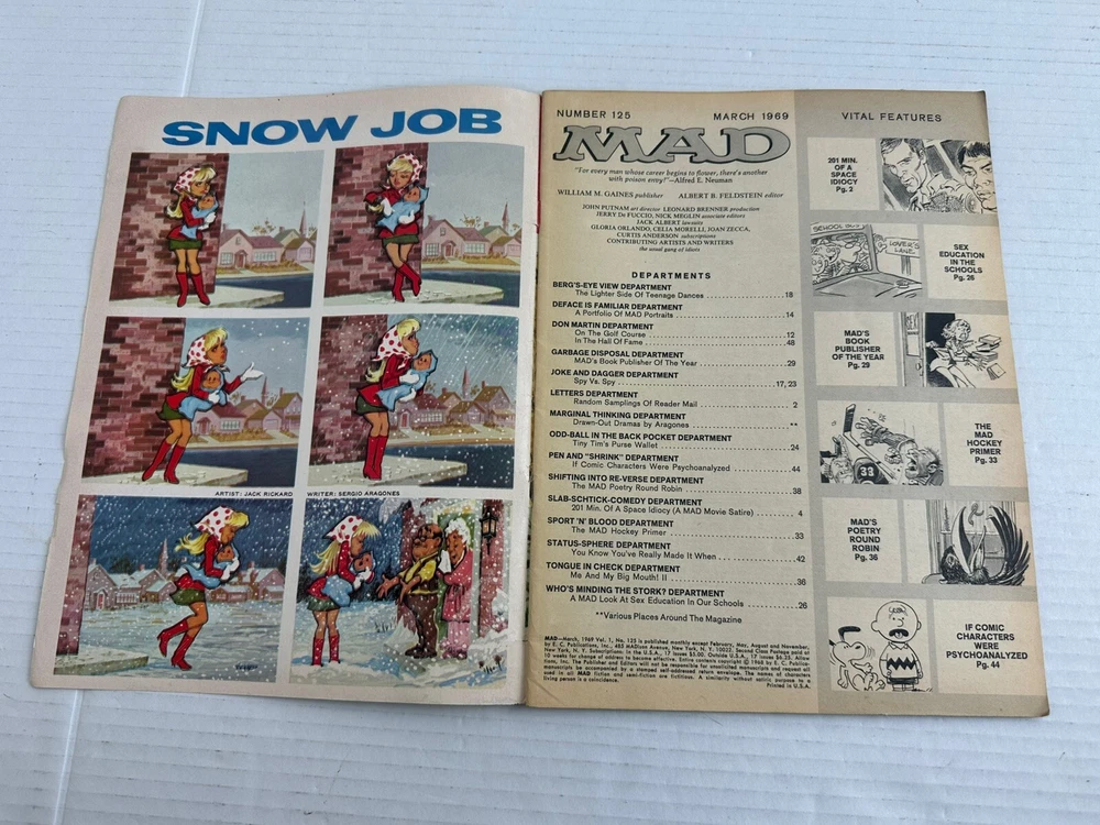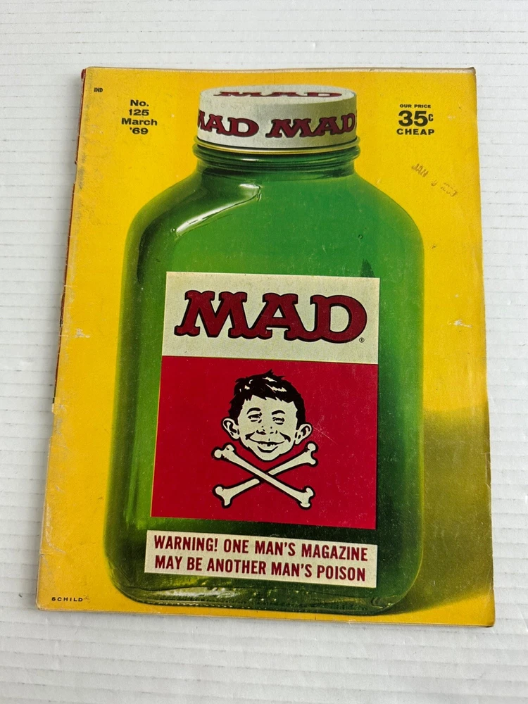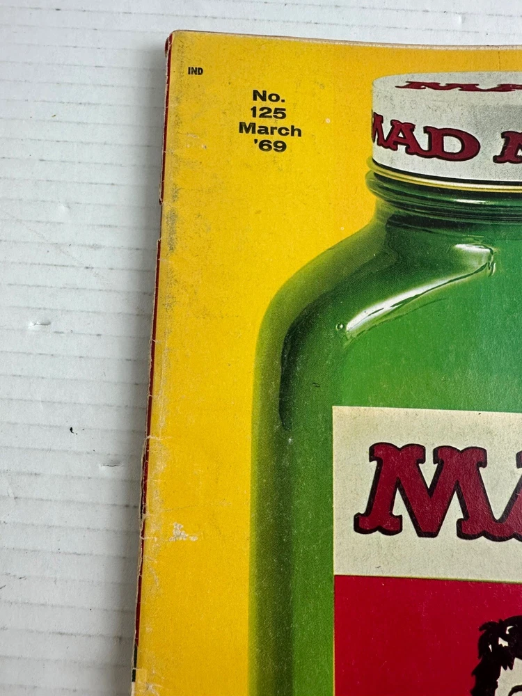 This vintage mad magazine has wear due to age, especially on the corners. There is a tear in the top binding. This is a Mad Magazine No.125 March 1969 **Some Wear Due To Age** Please see pictures for condition since there is where due to age.