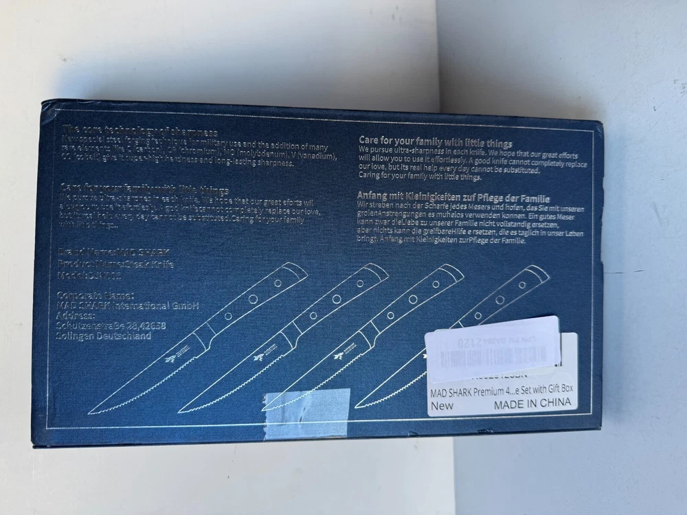 Mad Shark Entry Lux Series Ergonomic Handle Stainless Steel Chef's Knife (4-Set) Description Mad Shark Entry Lux Series Ergonomic Handle Stainless Steel Chef's Knife (4-Set). Product Detail • Brand : Mad Shark • Material : Stainless Steel • Blade Color : Silver • Type : Chef's Knife Please message me if you have any questions.